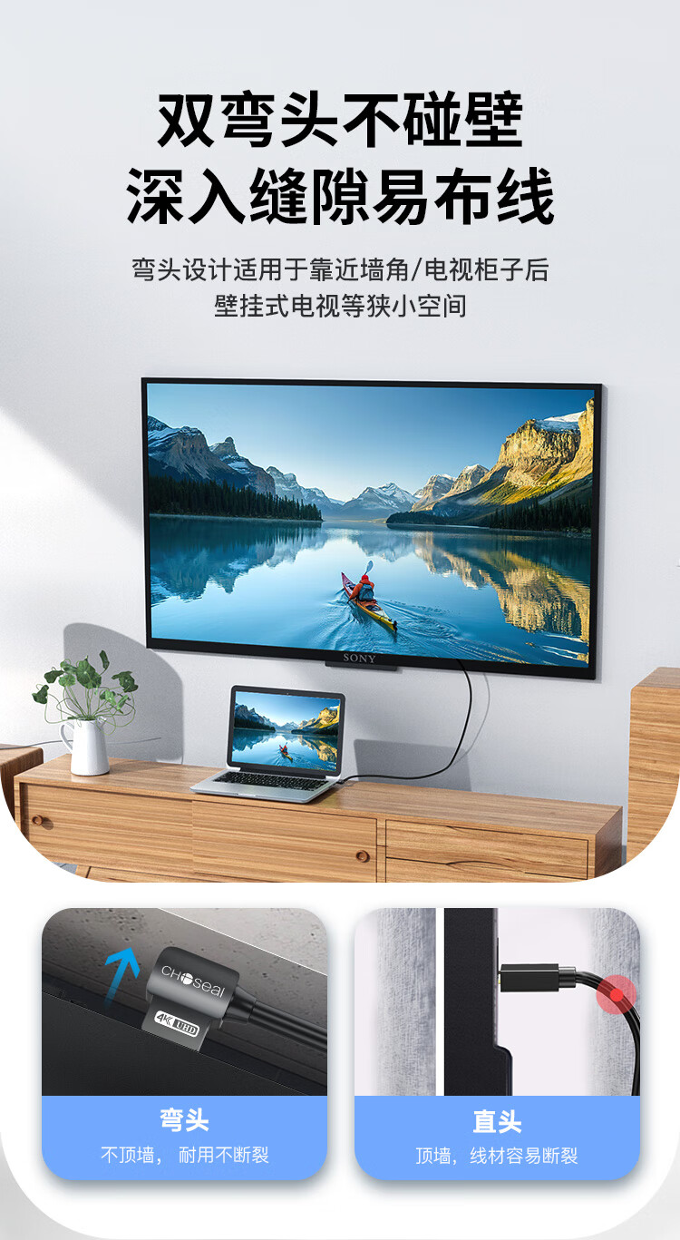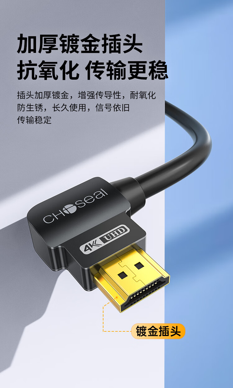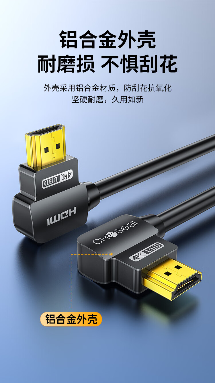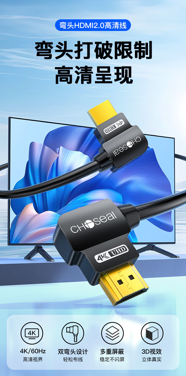 秋叶原(CHOSEAL)HDMI线2.0版弯头 4K/60HZ高清线 3D视频工程线 笔记本电脑电视机顶盒投影仪连接线 3米 QS8221