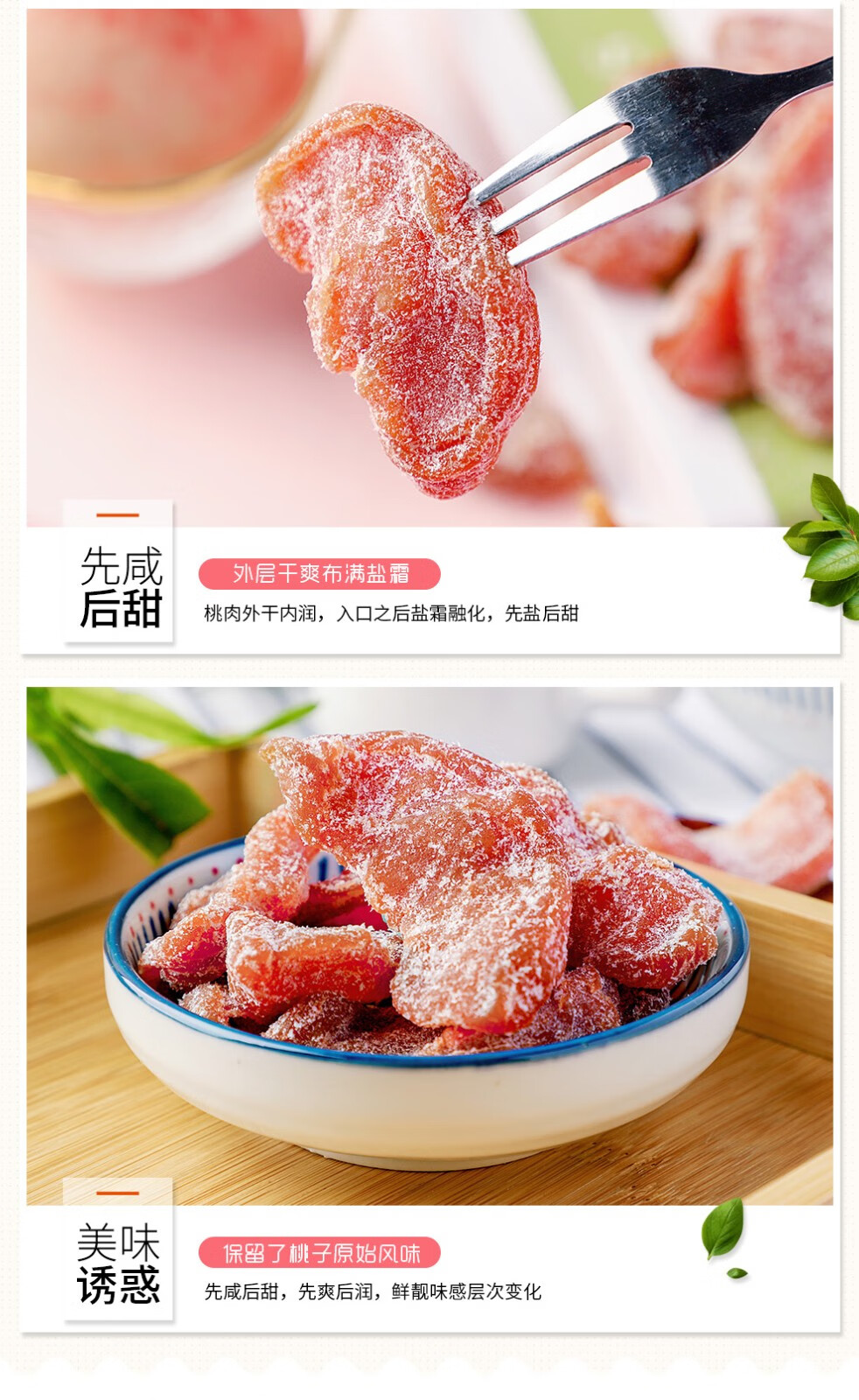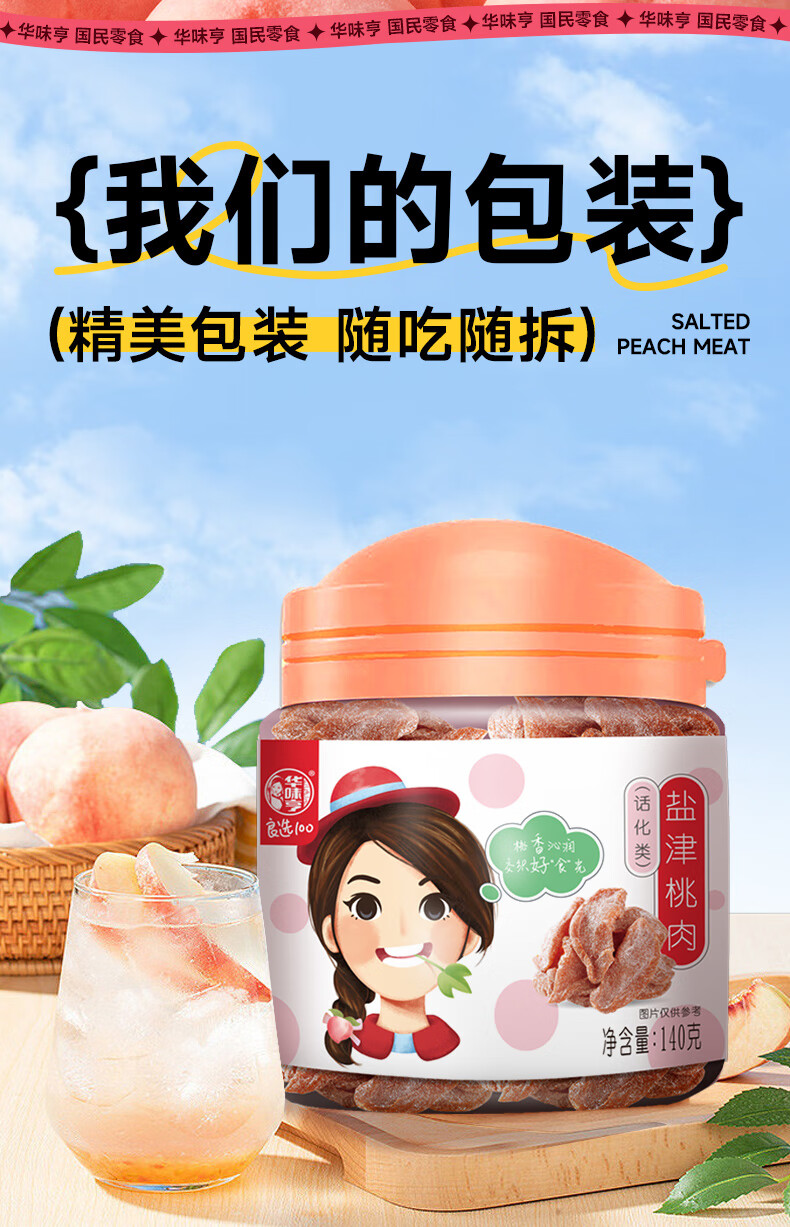 华味亨 140g盐津桃肉 桃干水果干 休闲零食小吃桃条 140g盐津桃肉*2罐