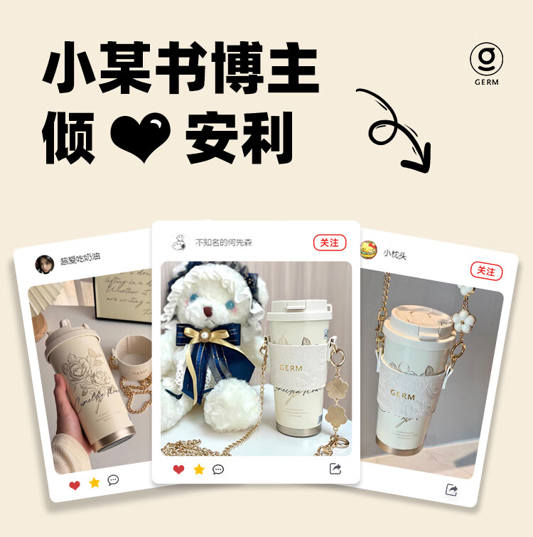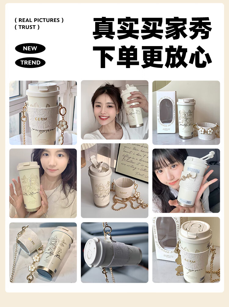 格米(germ)山茶花保温杯女士礼物咖啡杯高颜值316不锈钢大容量水杯吸管杯子 雪境山茶【山茶花系列】500ml