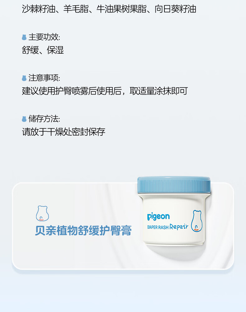 贝亲护臀膏 婴儿护臀膏 护臀霜 护臀油 屁屁膏 全绿成分 先净后护 护臀膏45g
