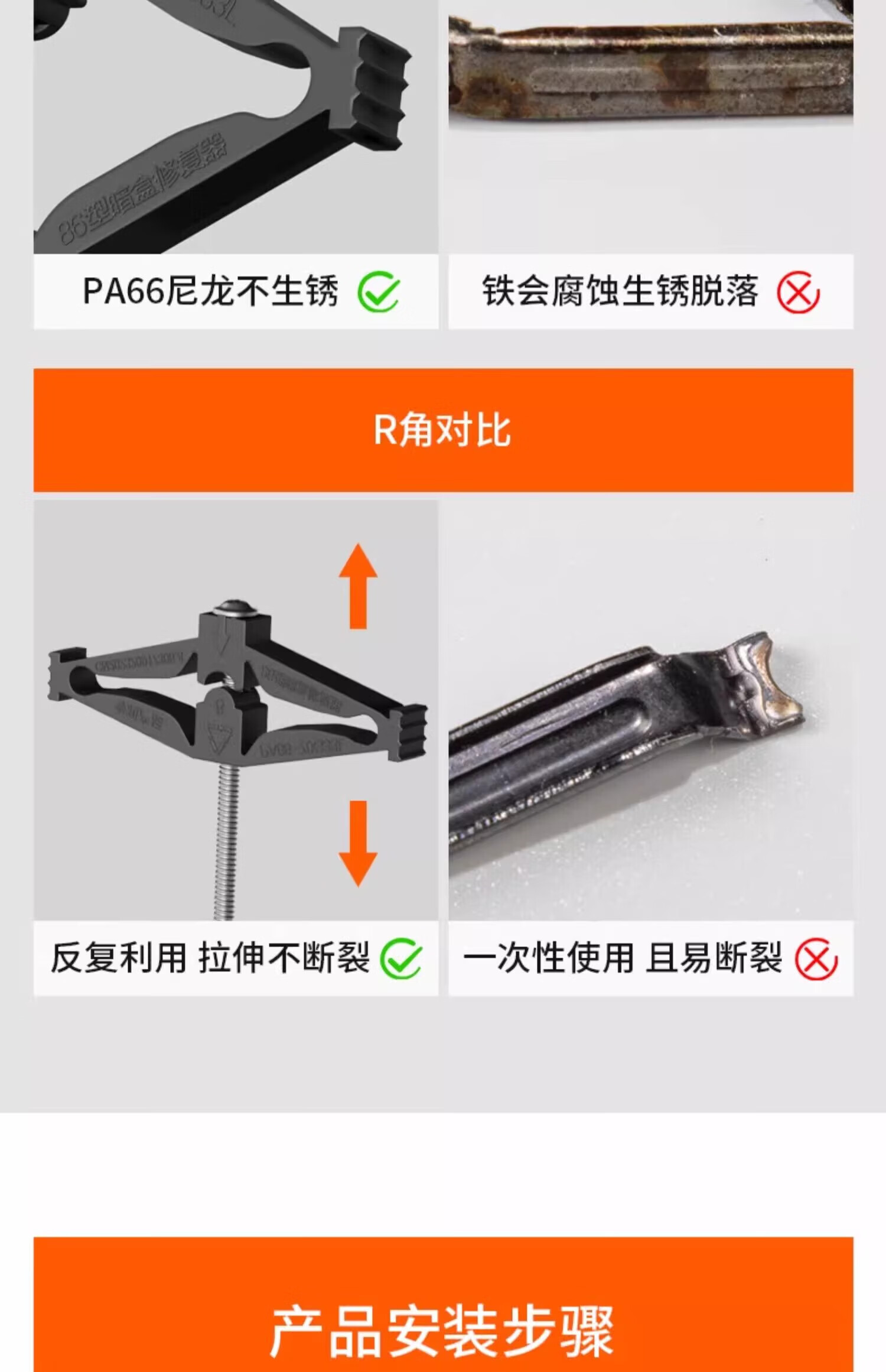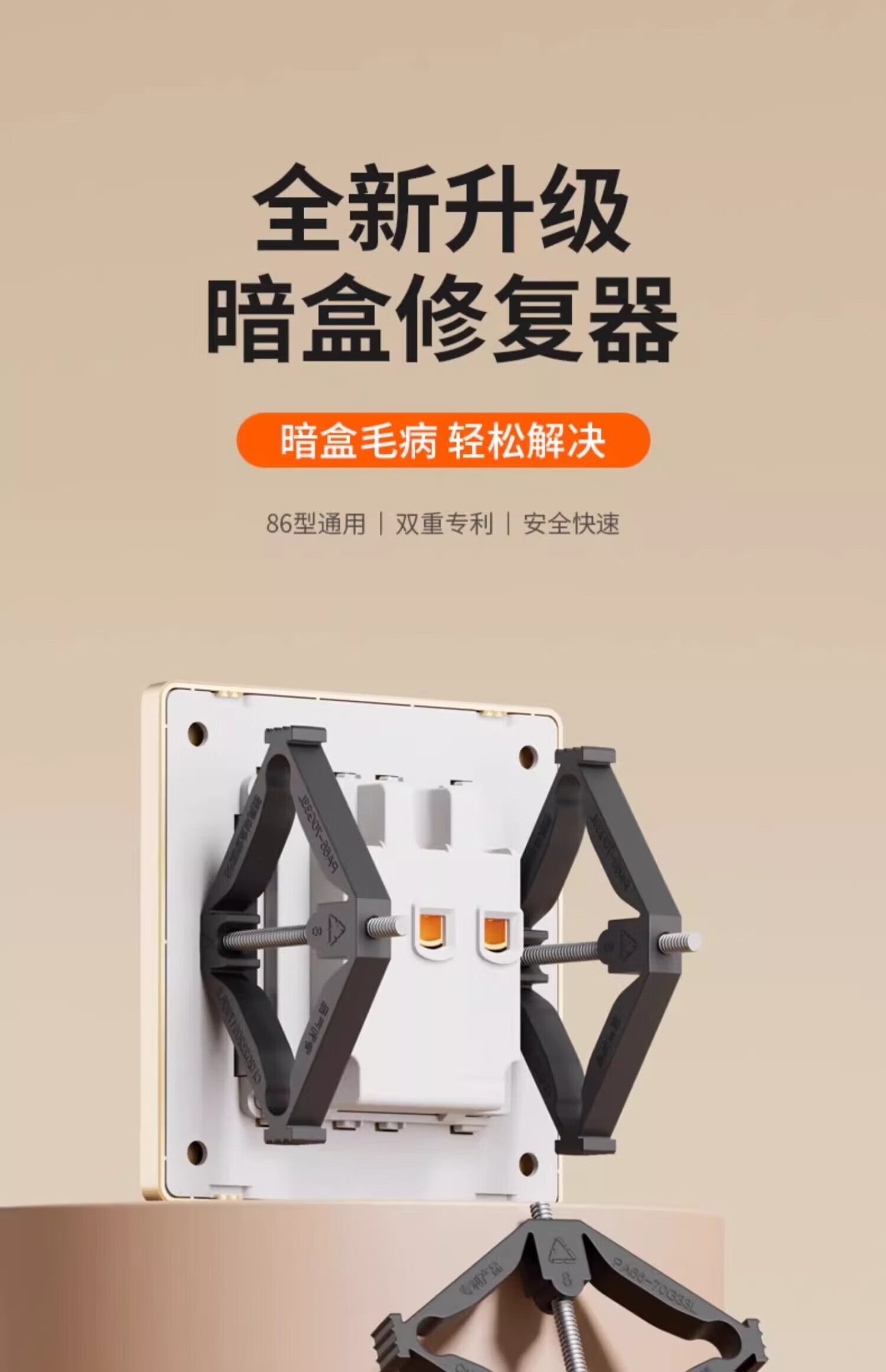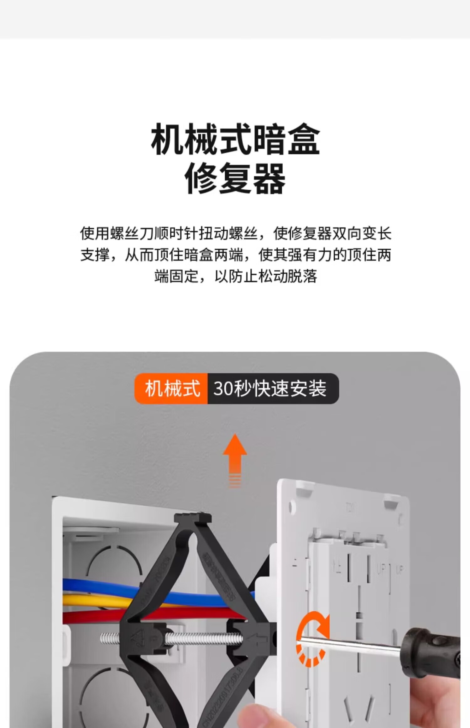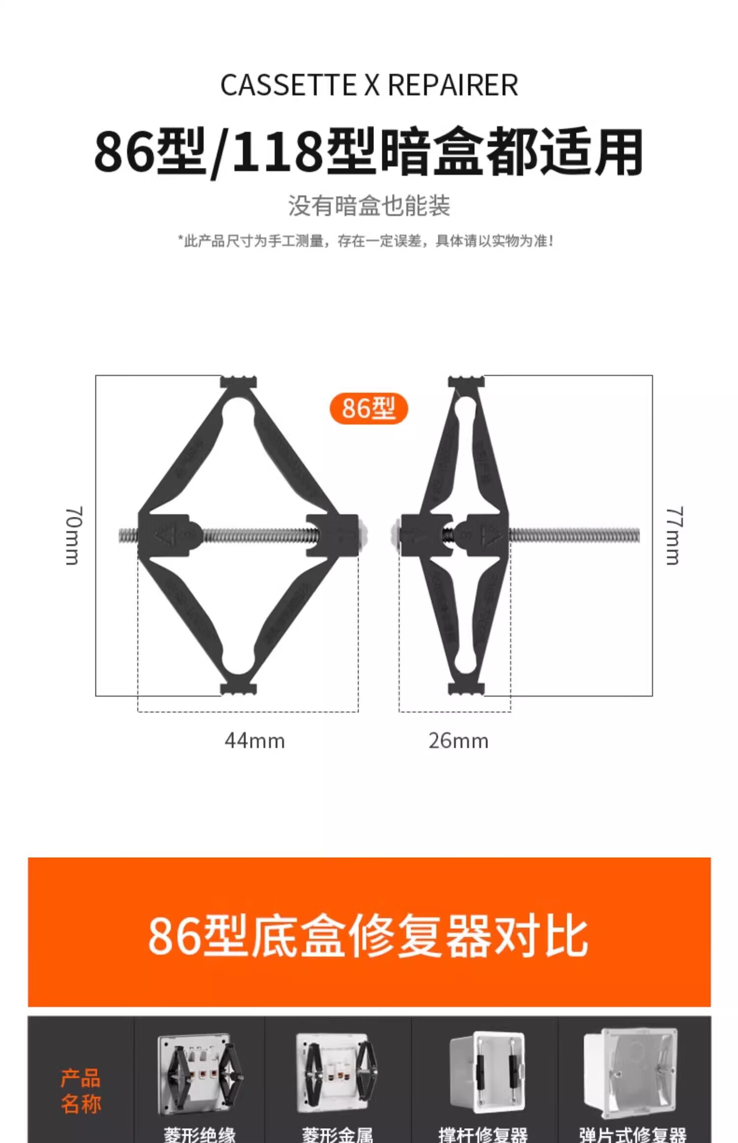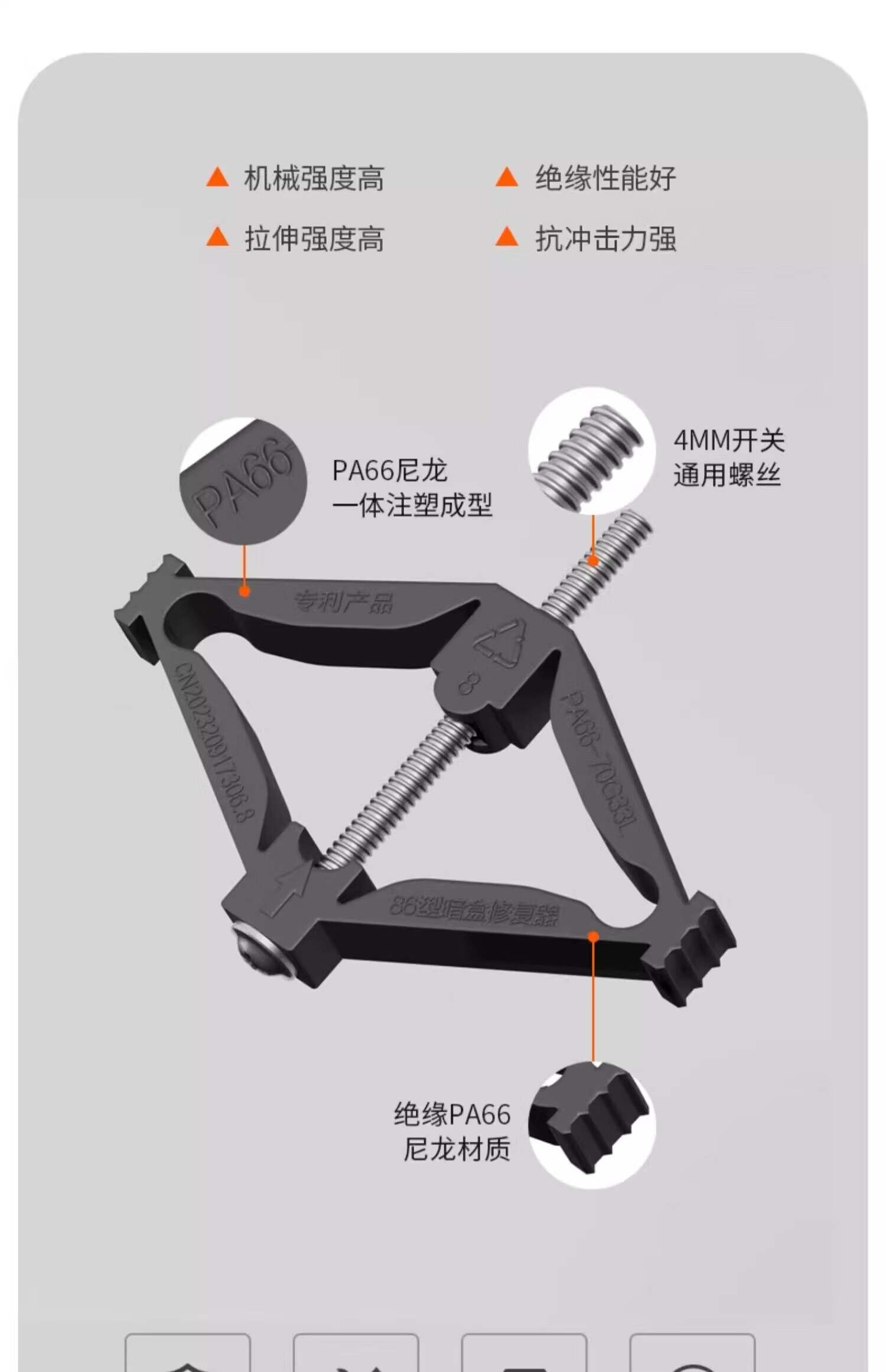FDD国际电工86型通用底盒修复器支撑杆暗盒开关插座补救118型防滑锯齿修补器 尼龙机械式86型-4只装