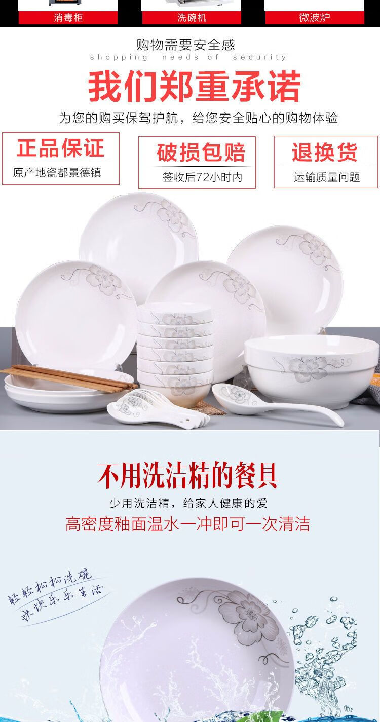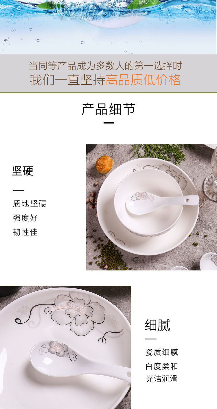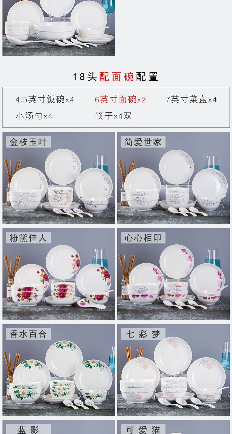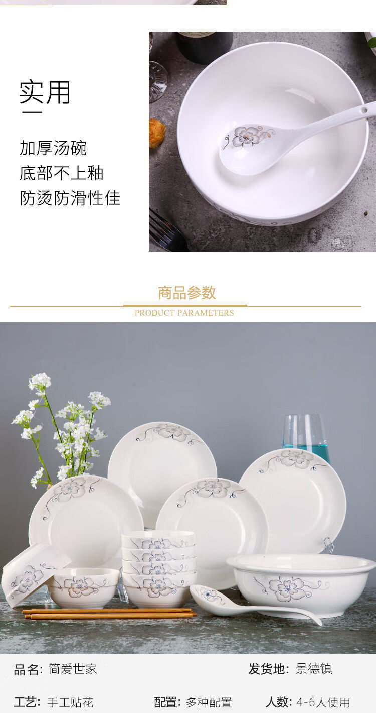 LZJV人家庭碗筷套装碗碟碗盘景德镇陶瓷餐具一套菜盘子碗套装家用1-6 简爱世家 1碗+1小勺