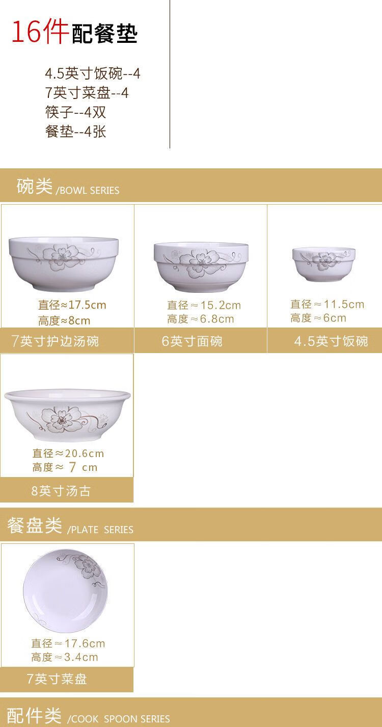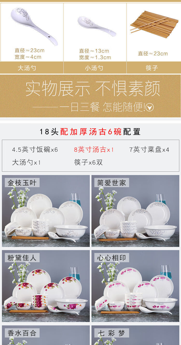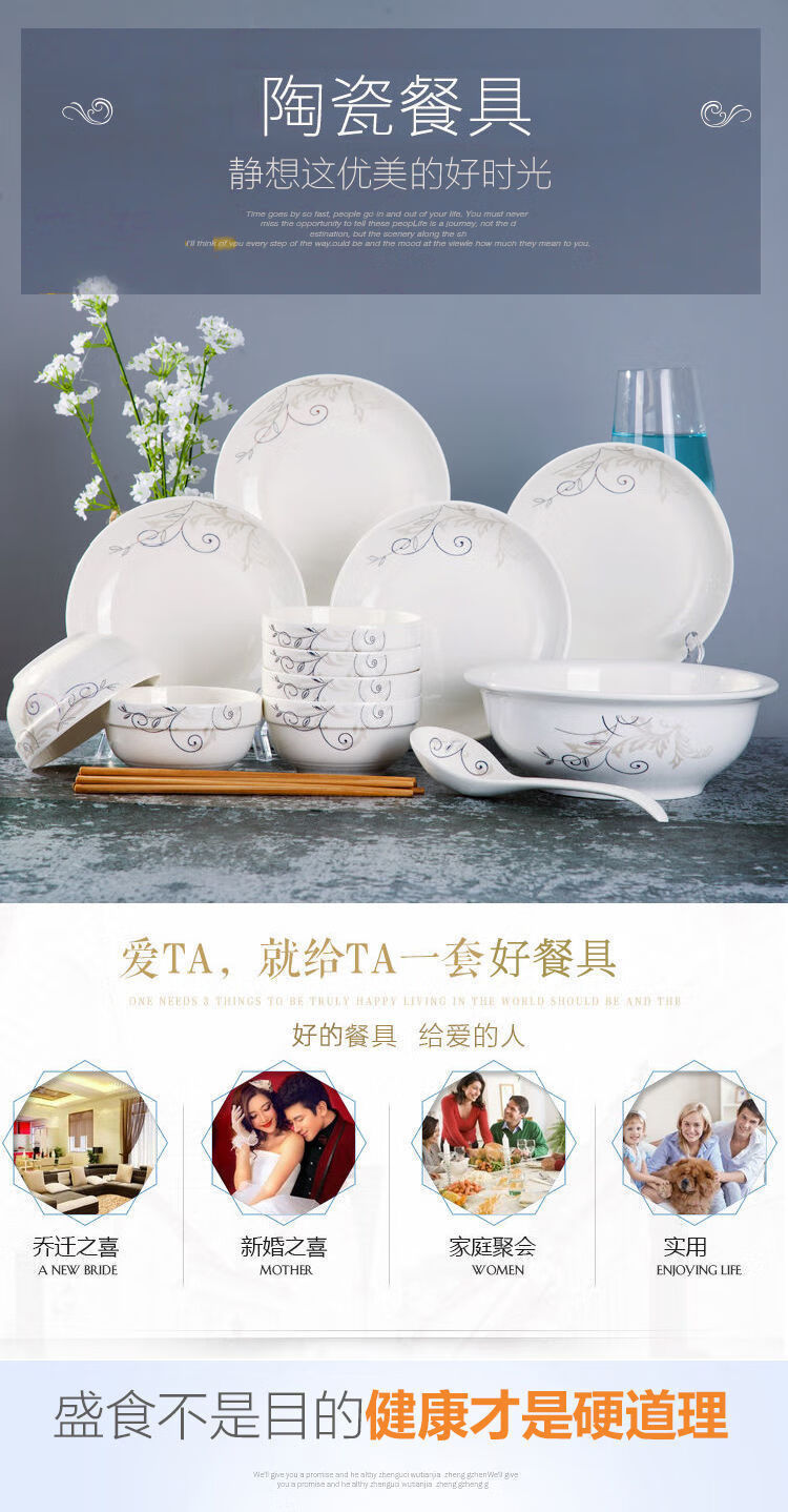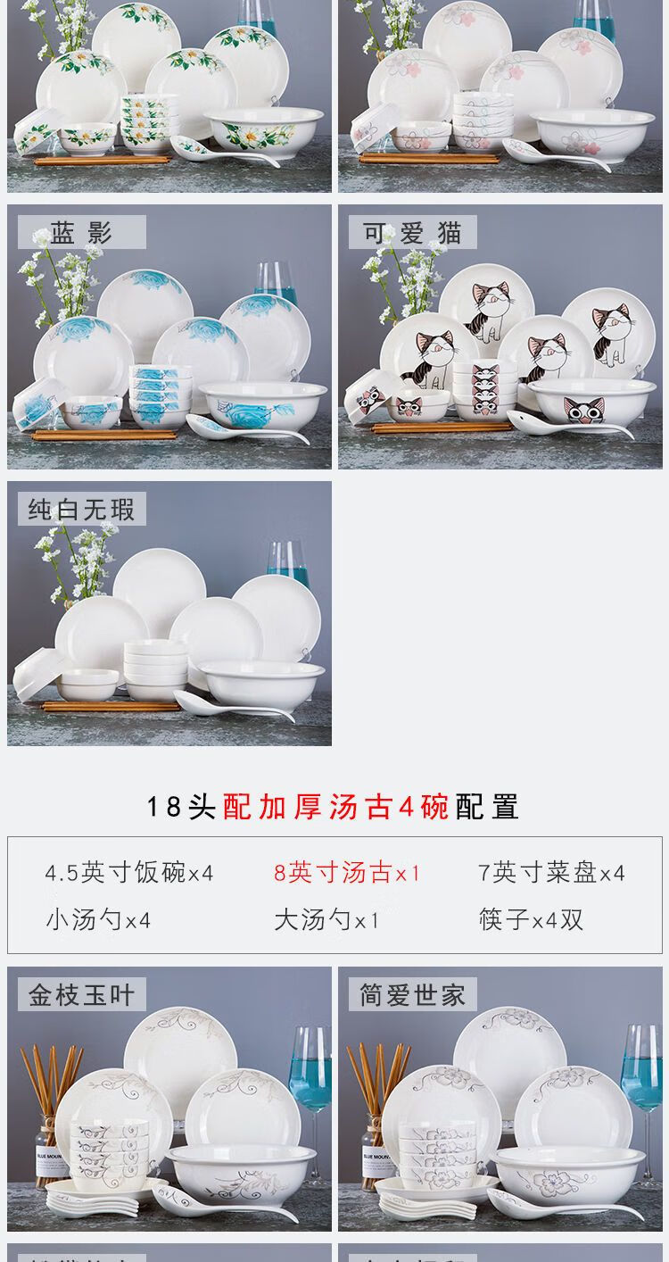 LZJV人家庭碗筷套装碗碟碗盘景德镇陶瓷餐具一套菜盘子碗套装家用1-6 简爱世家 1碗+1小勺