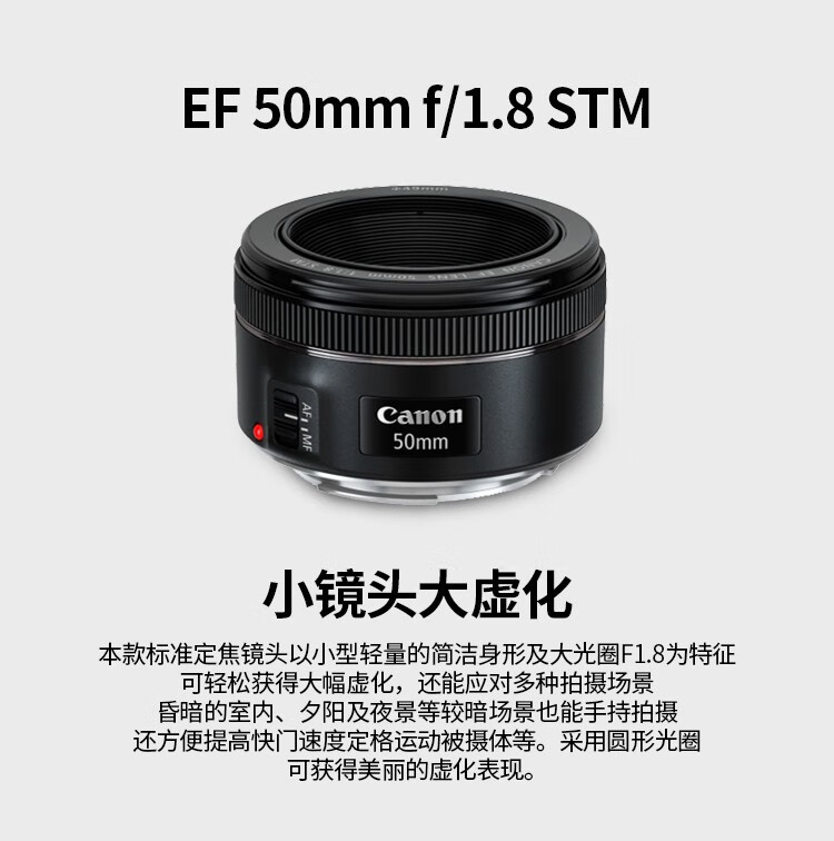 佳能(Canon) 单反相机镜头 标准定焦镜头 人像定焦 大光圈定焦全画幅相机镜头 EF 50mm 1.8 STM小痰盂三代人像定焦 官方标配【赠送UV滤镜+保修延保礼包】
