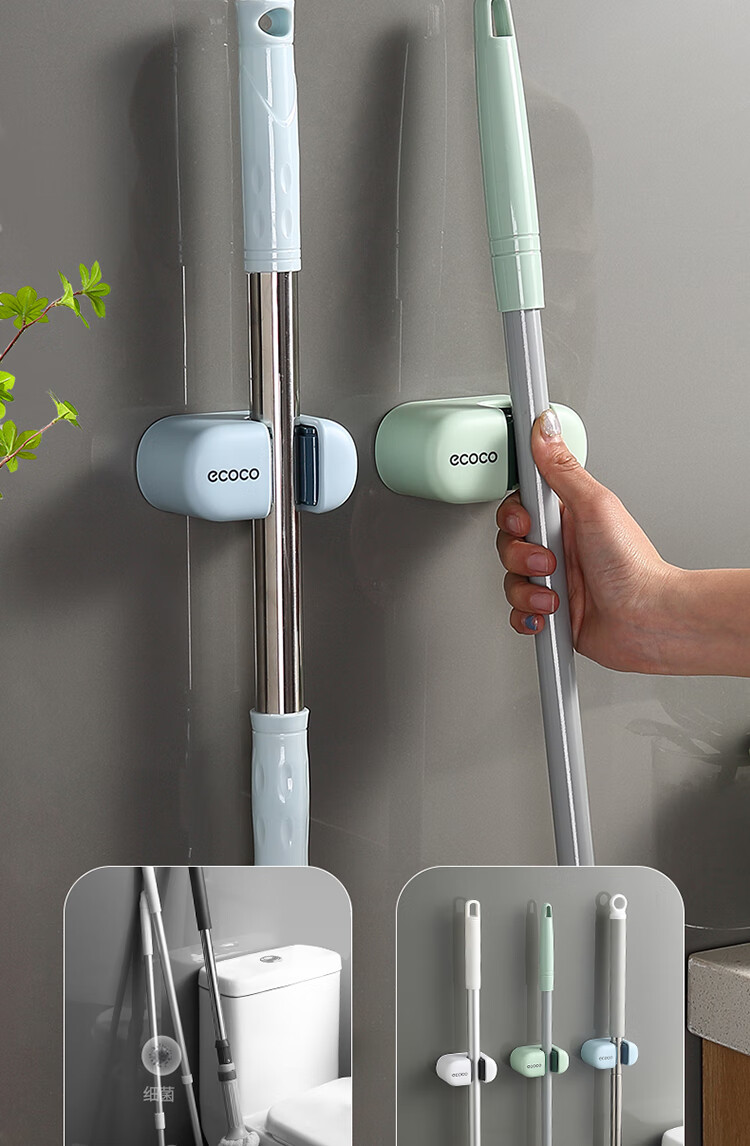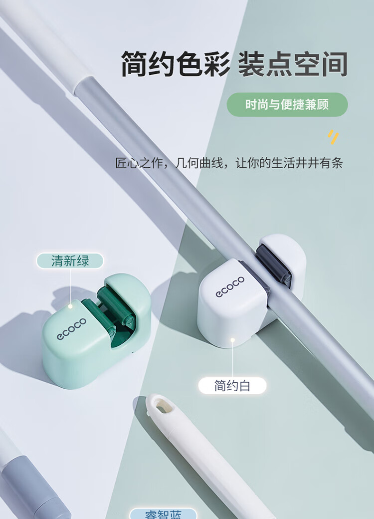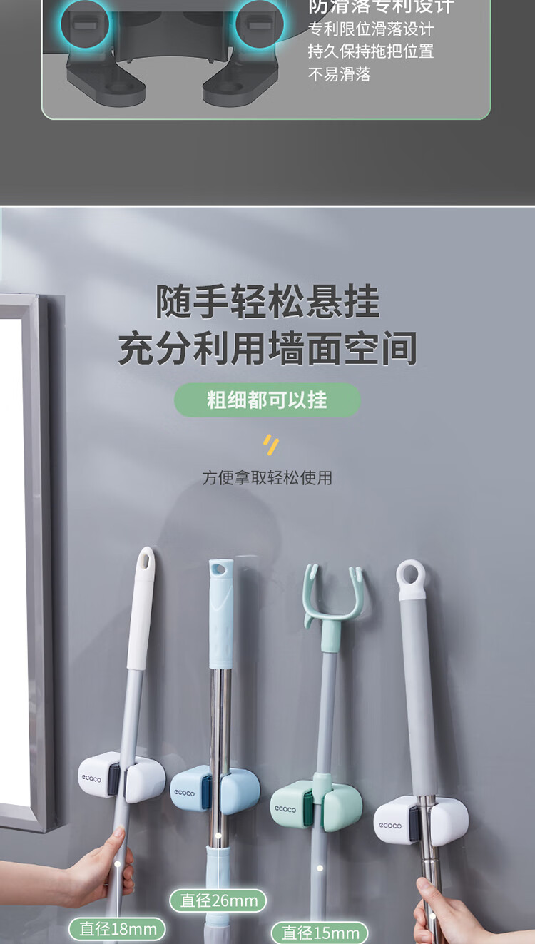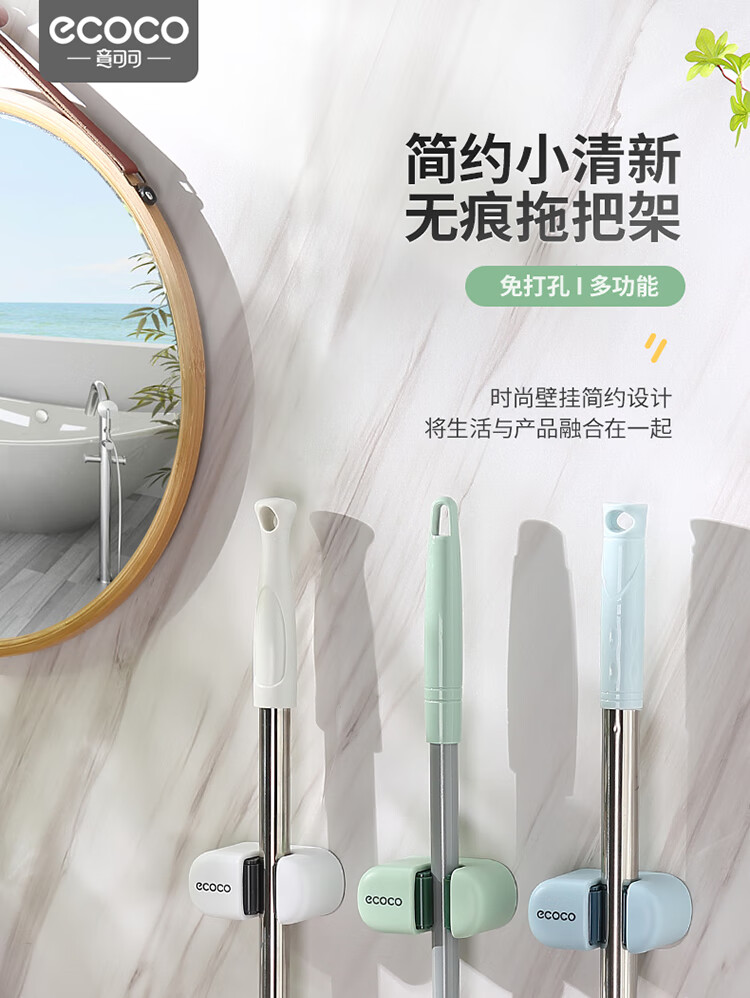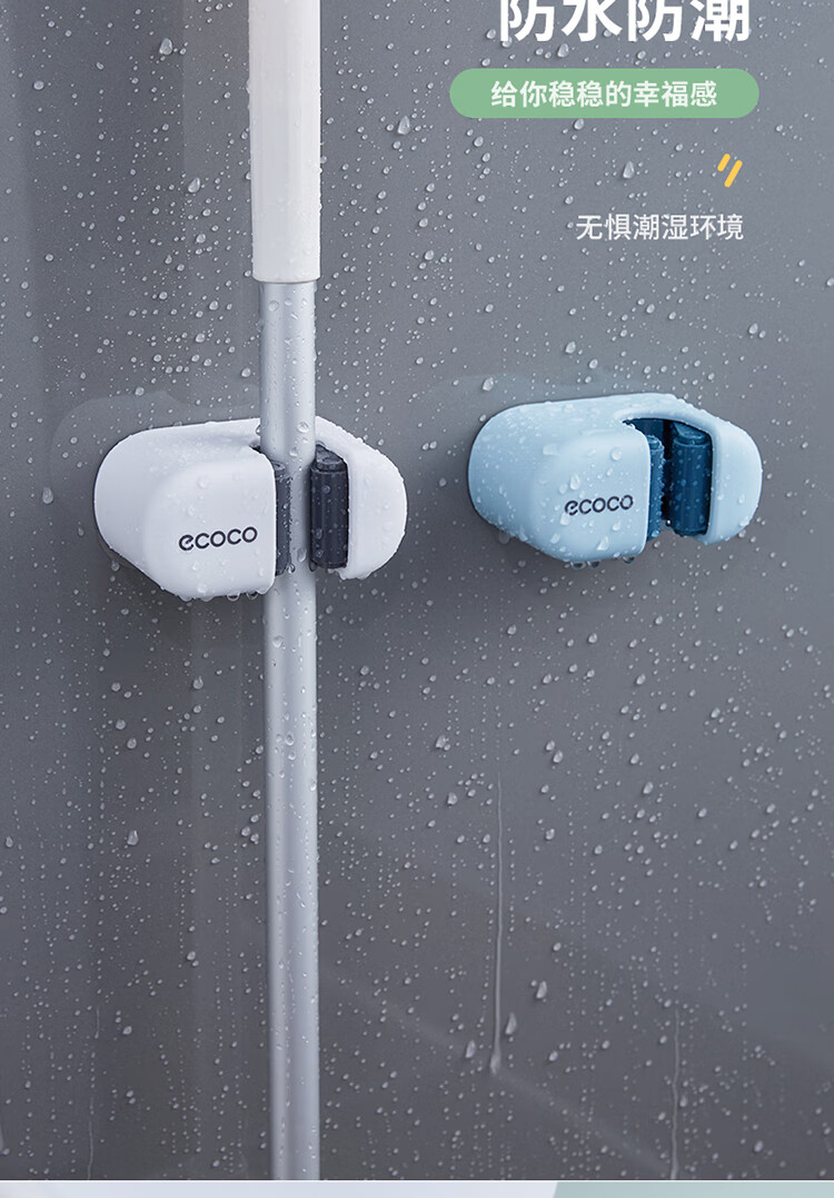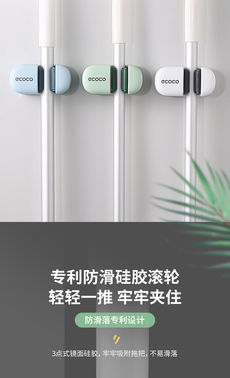 ecoco意可可拖把挂钩 拖把架免打孔拖把夹壁挂厕所卫生间拖把卡扣 E2201白*2