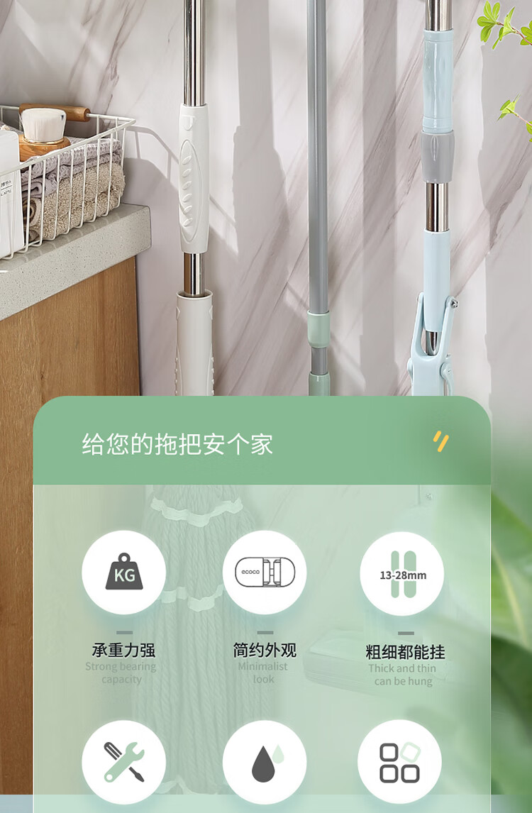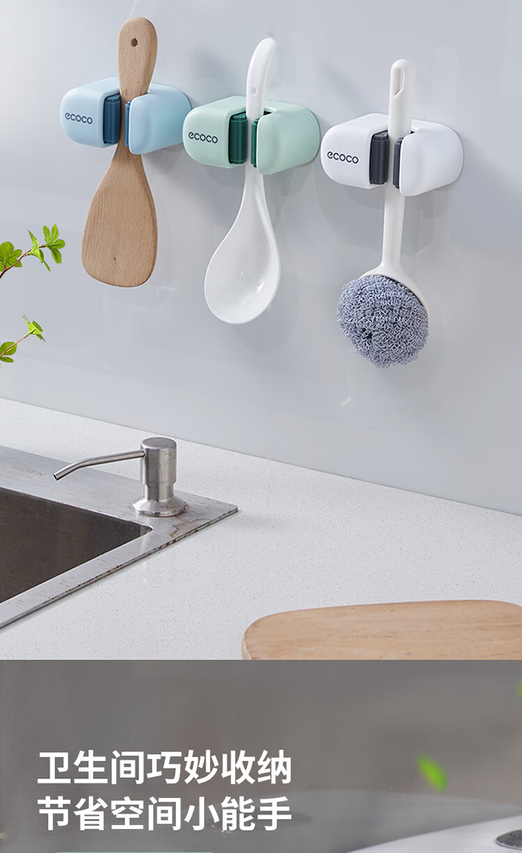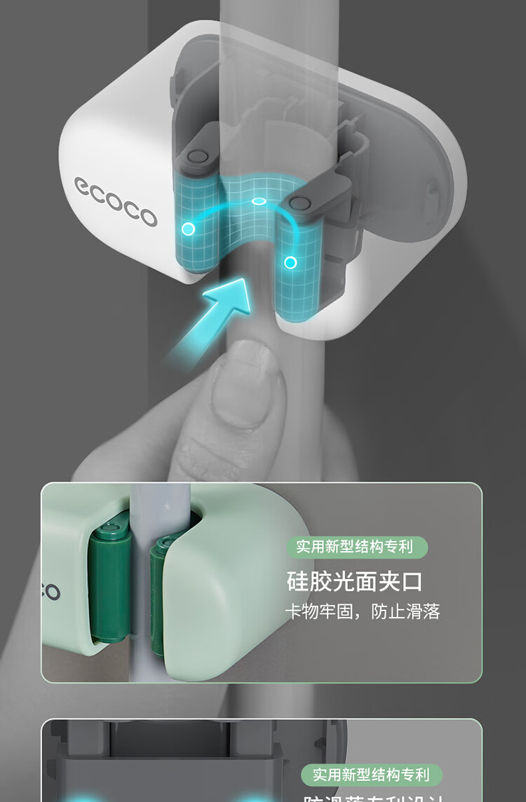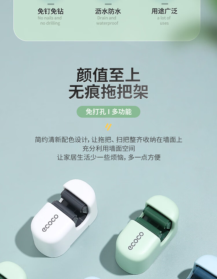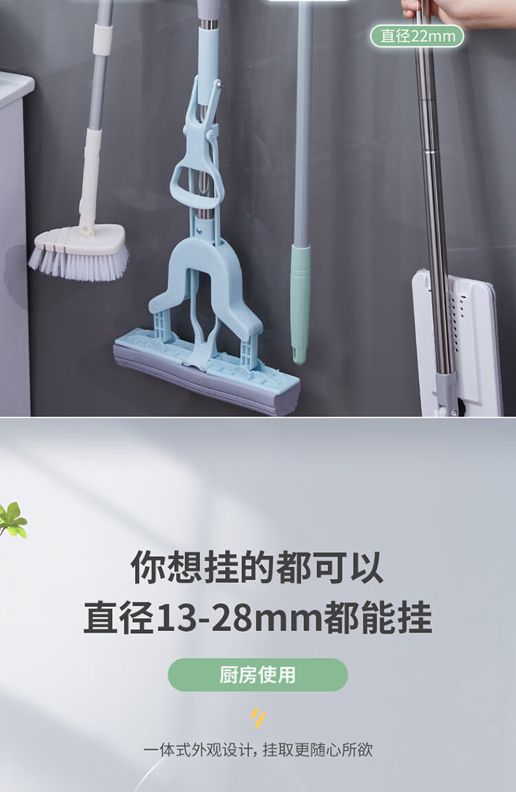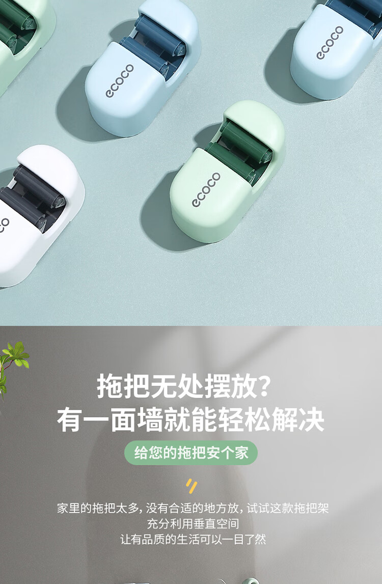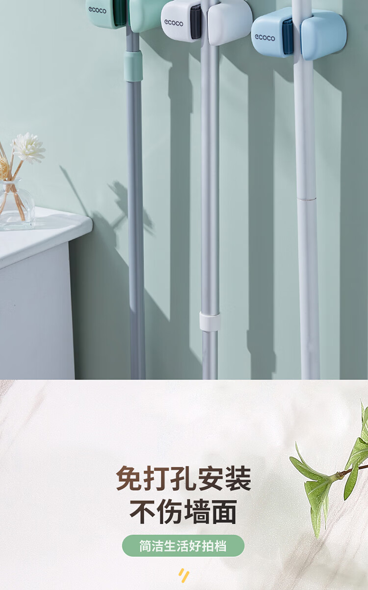 ecoco意可可拖把挂钩 拖把架免打孔拖把夹壁挂厕所卫生间拖把卡扣 E2201白*2