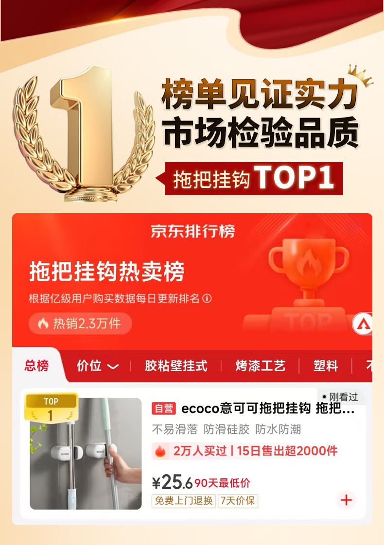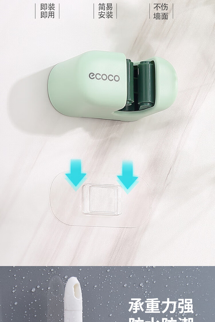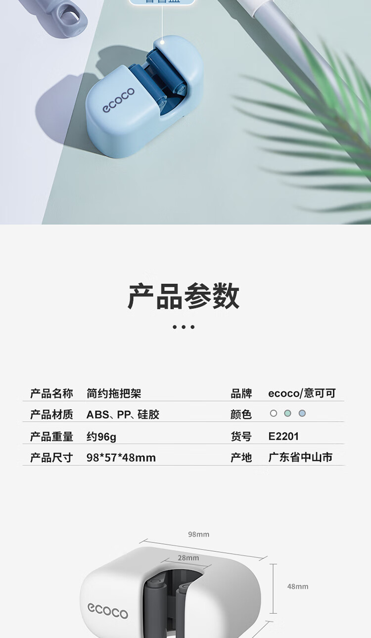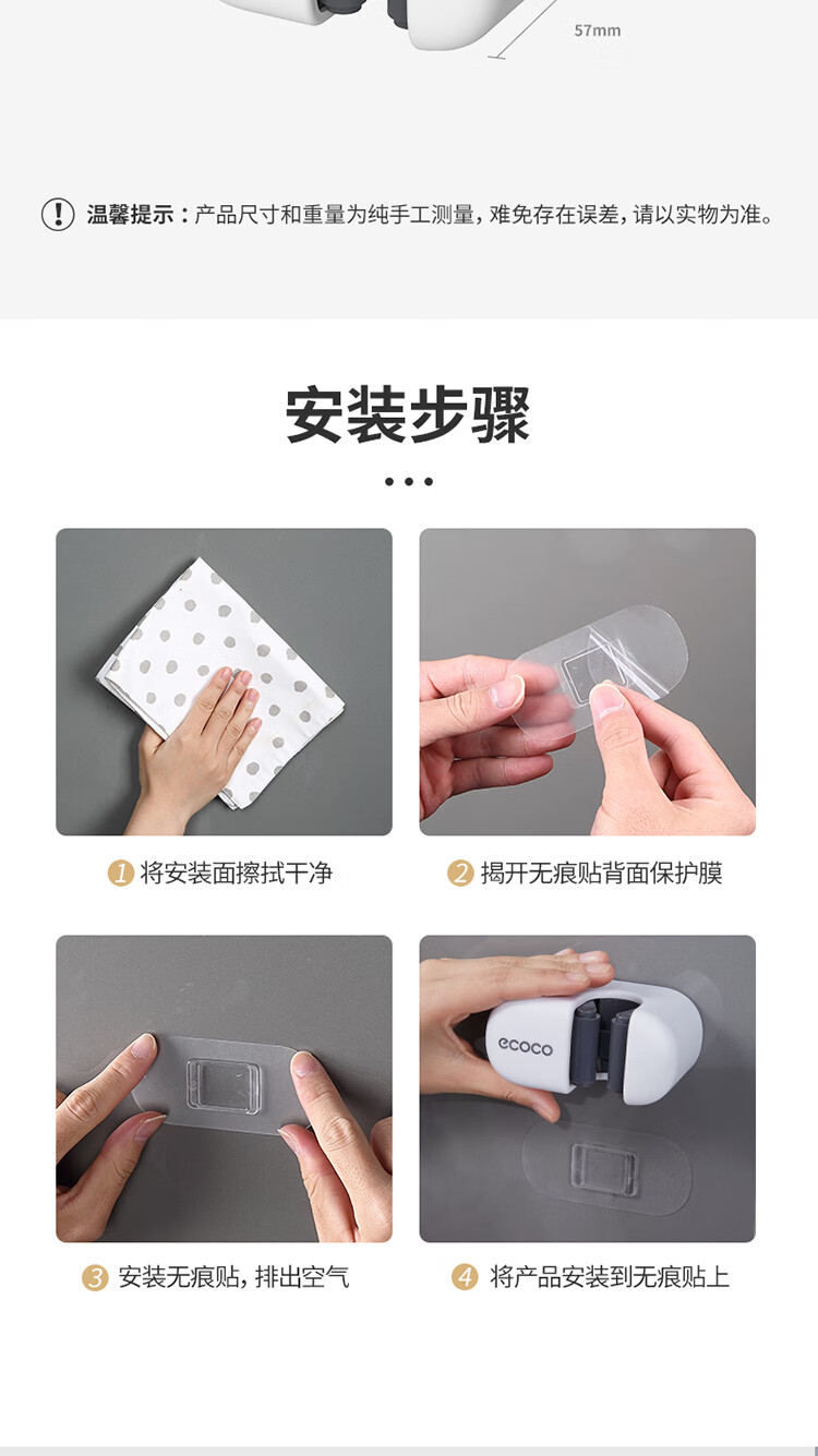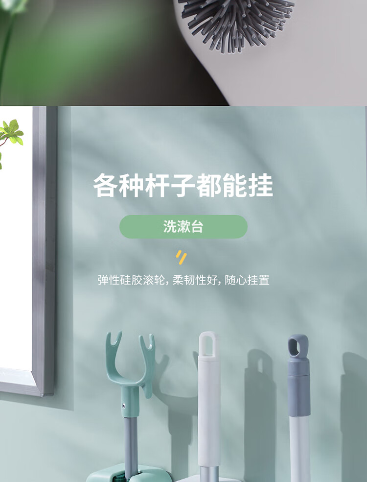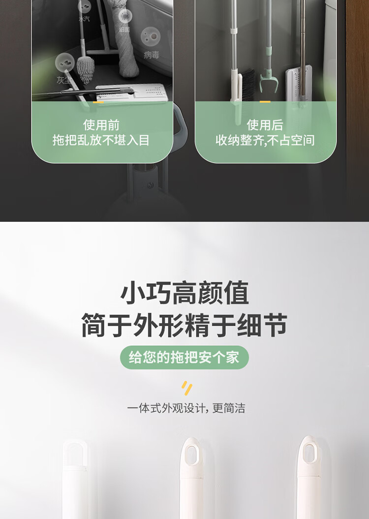 ecoco意可可拖把挂钩 拖把架免打孔拖把夹壁挂厕所卫生间拖把卡扣 E2201白*2