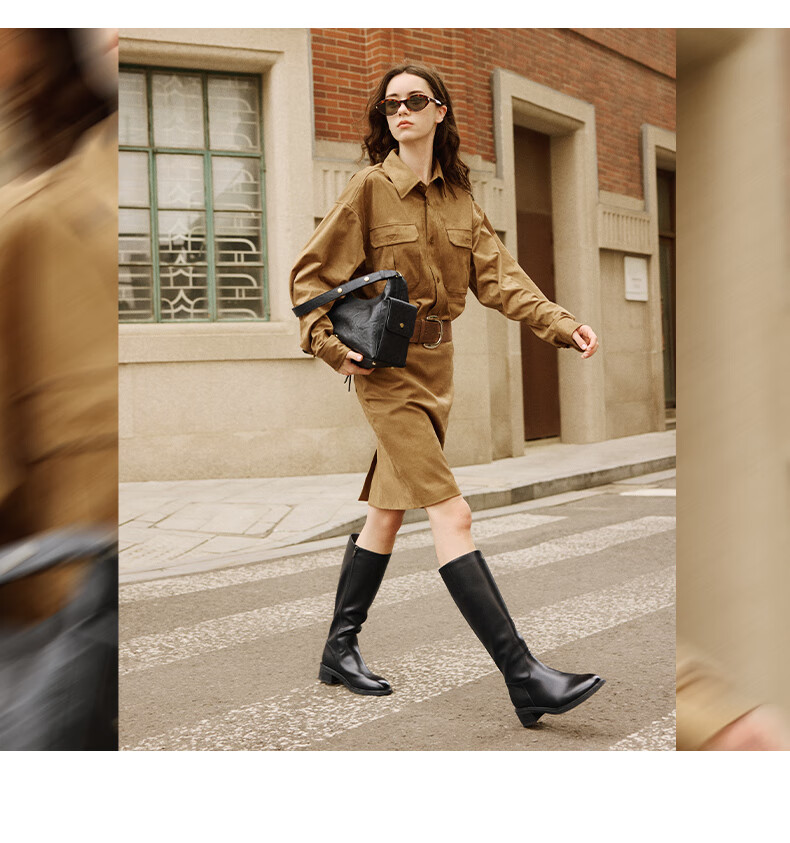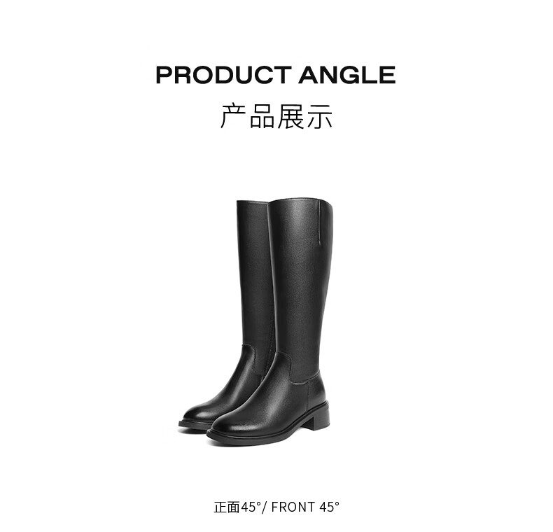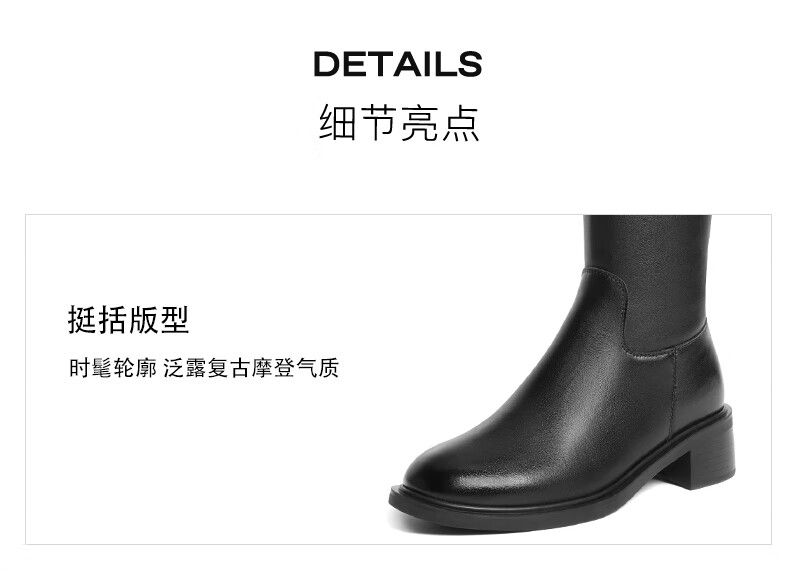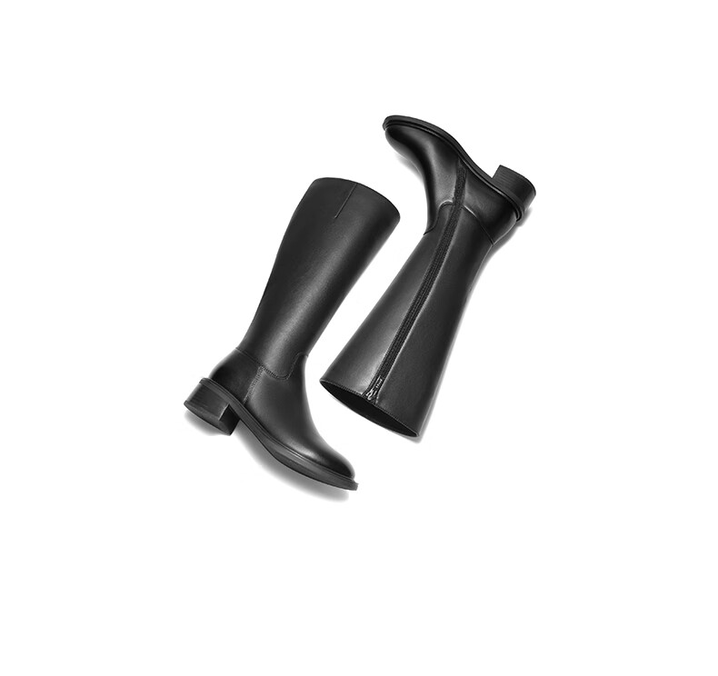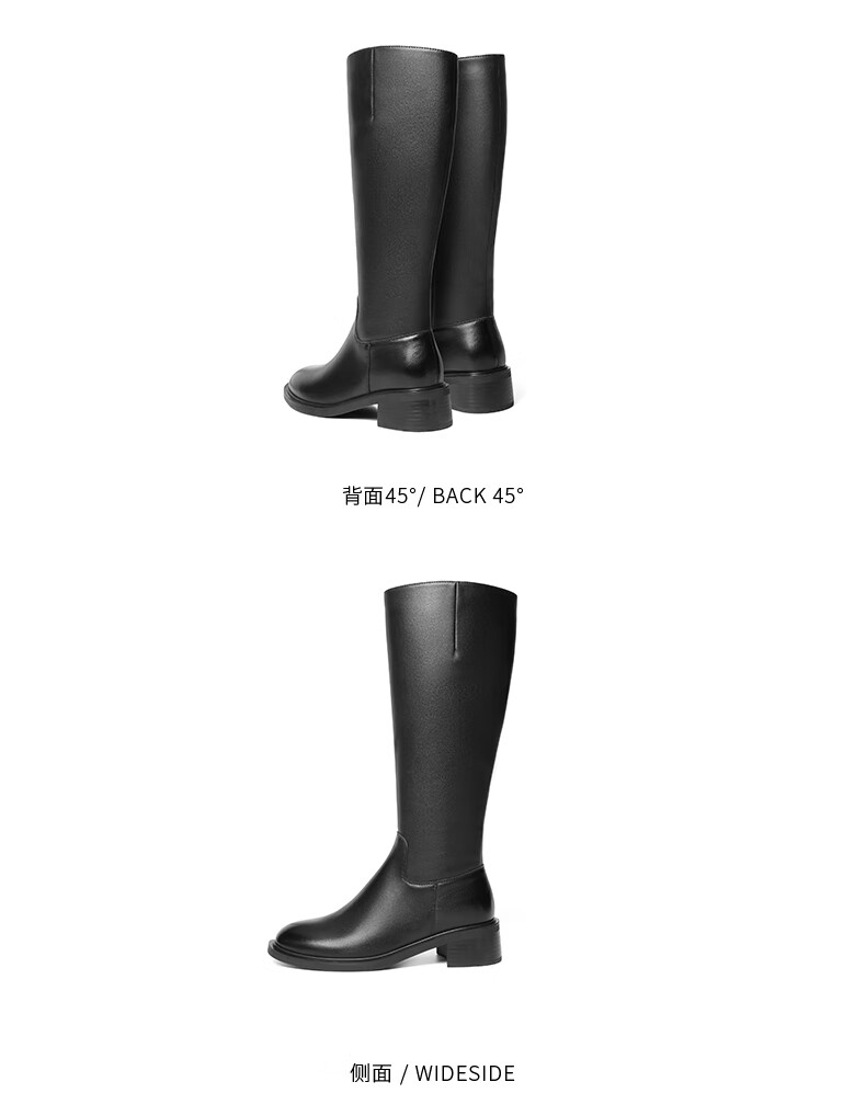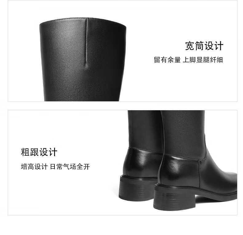 百丽(Belle)简约百搭骑士靴女2025冬新方跟质感显瘦长筒靴B2861DG5预售 黑色 36