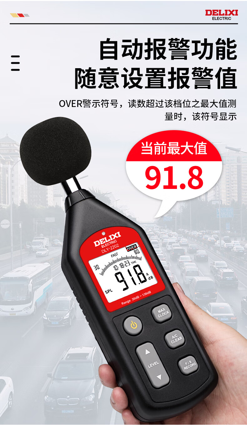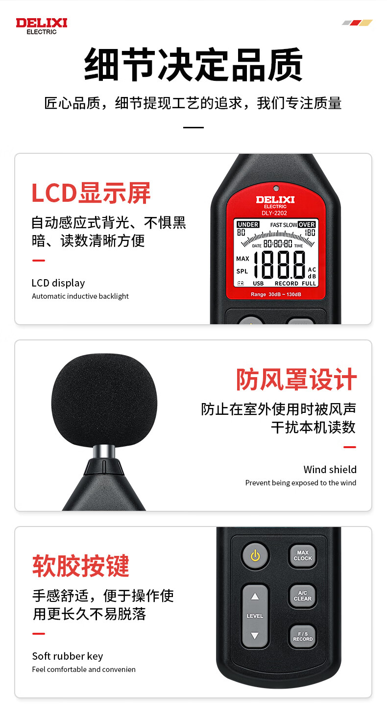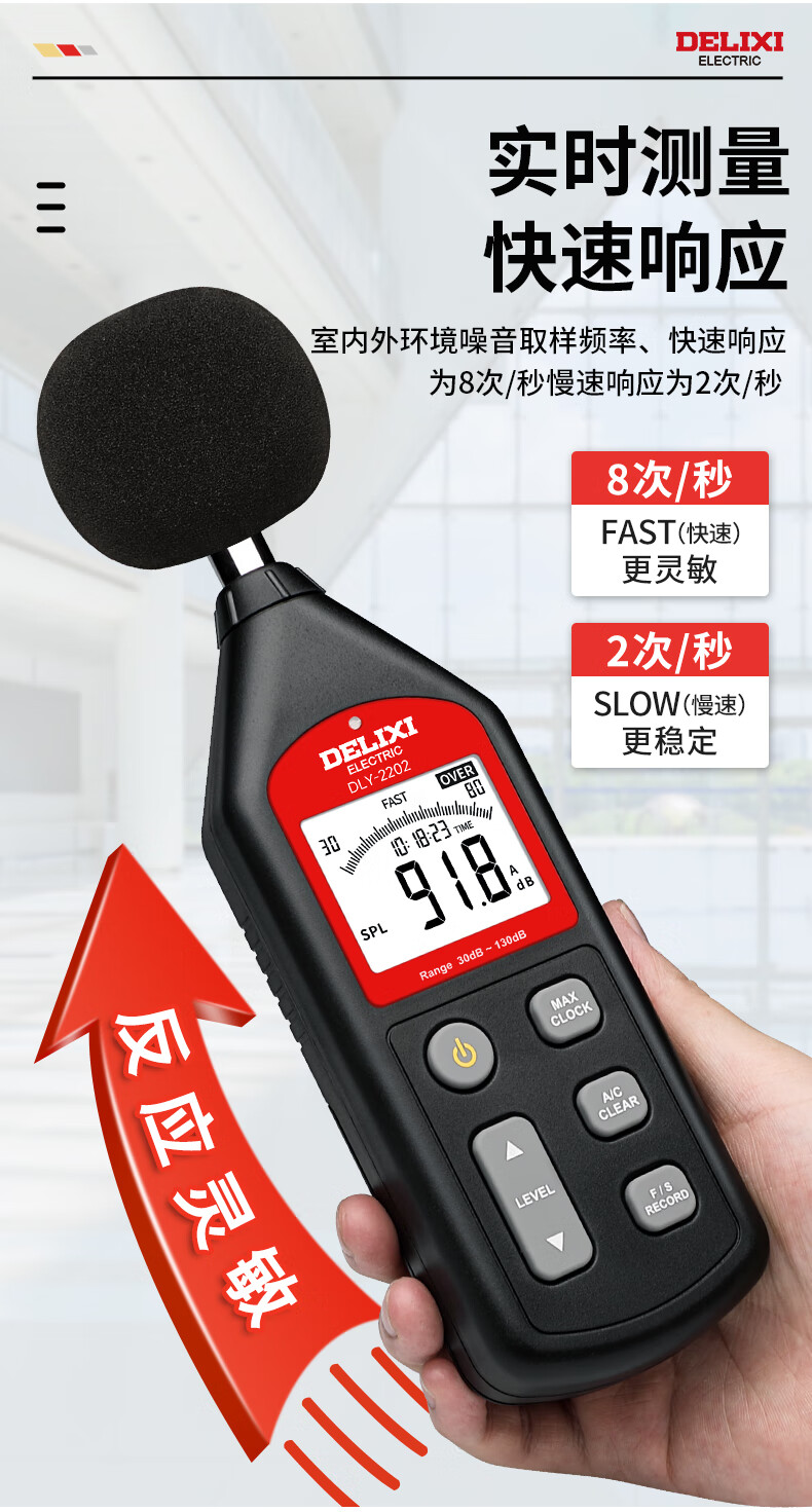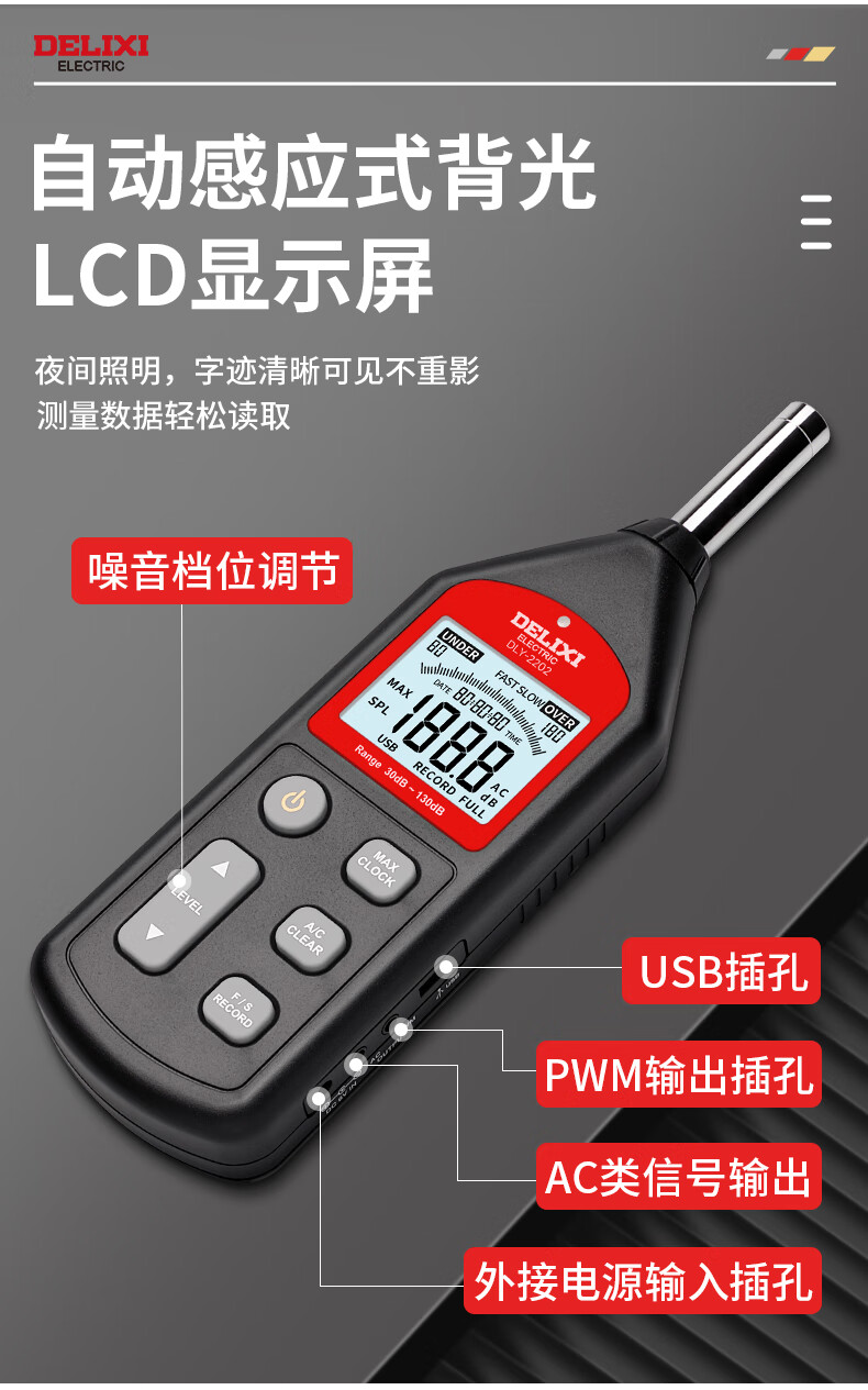 德力西电气噪音计高精度音量环境噪音检测仪迷你声音仪分贝仪手持噪声计 【旗舰款-2202】4700组数据