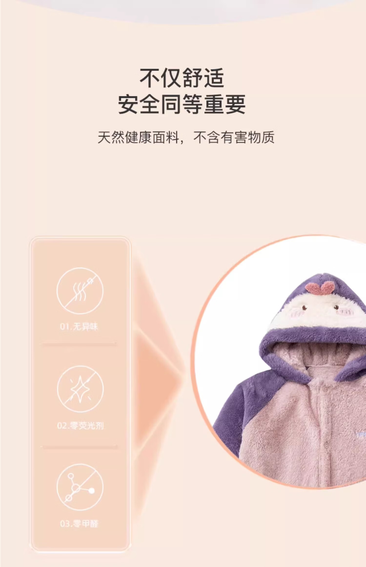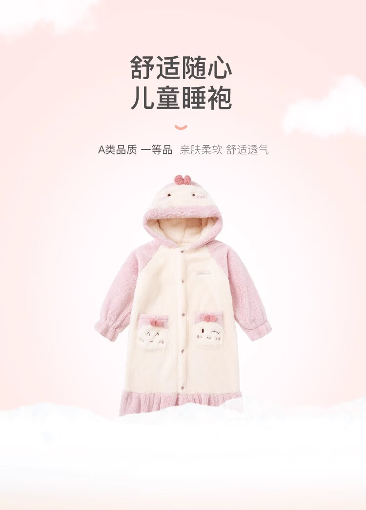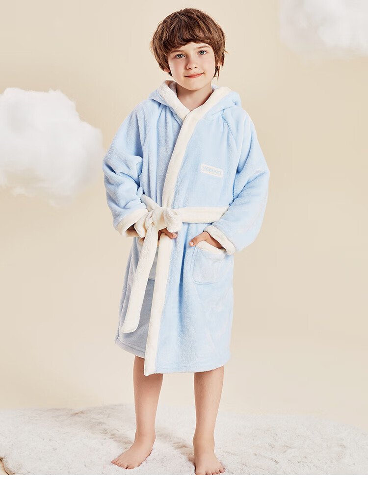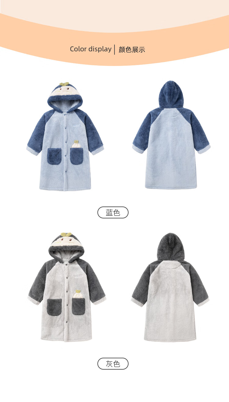 英氏儿童睡衣家居服男童女童睡袍冬季加绒加厚浴袍A类保暖连帽睡衣 企鹅蓝色 110