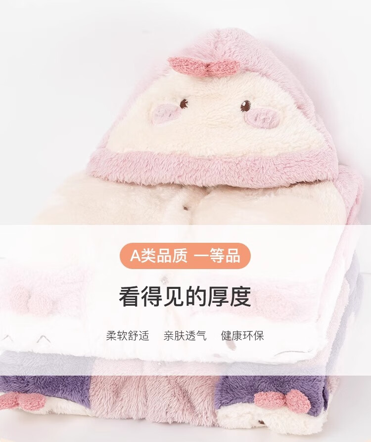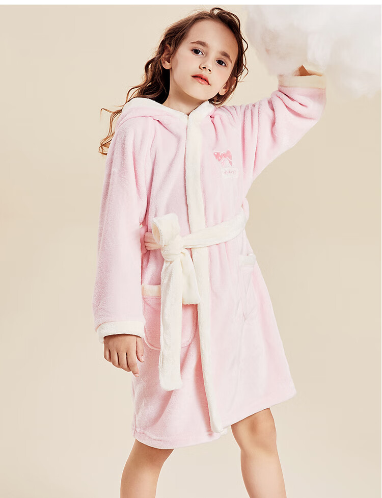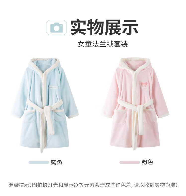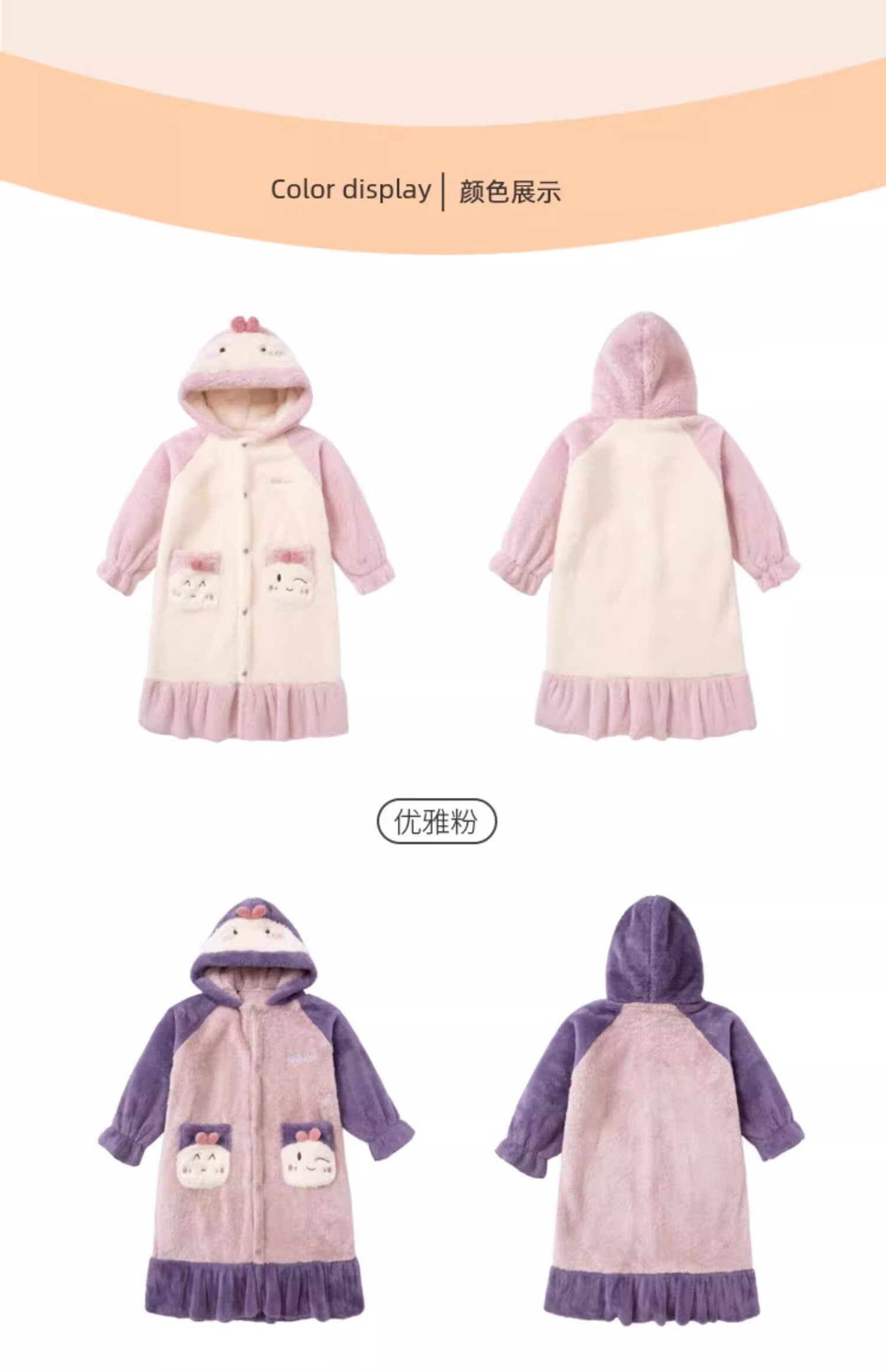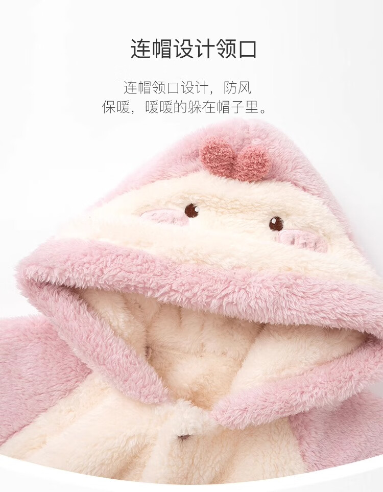 英氏儿童睡衣家居服男童女童睡袍冬季加绒加厚浴袍A类保暖连帽睡衣 企鹅蓝色 110