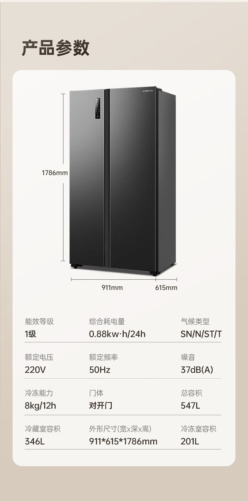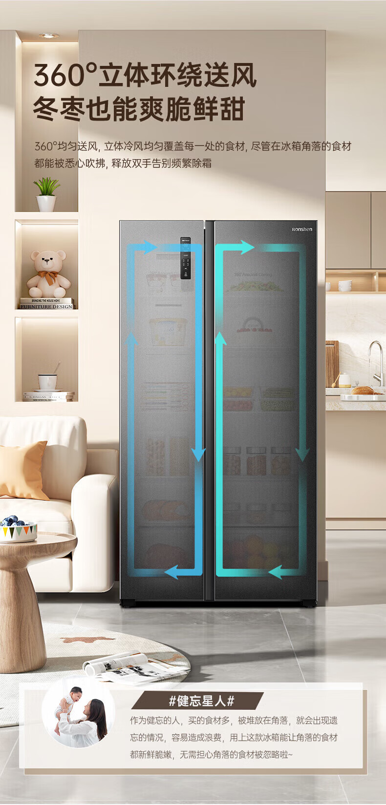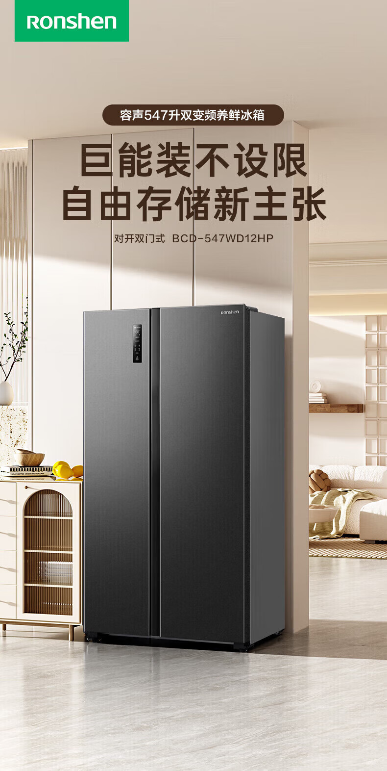 容声【国家补贴】547升双开对开门家用电冰箱一级能效节能变频风冷无霜超薄大容量-31度以旧换新20% 大容量对开门 BCD-547WD12HP灰