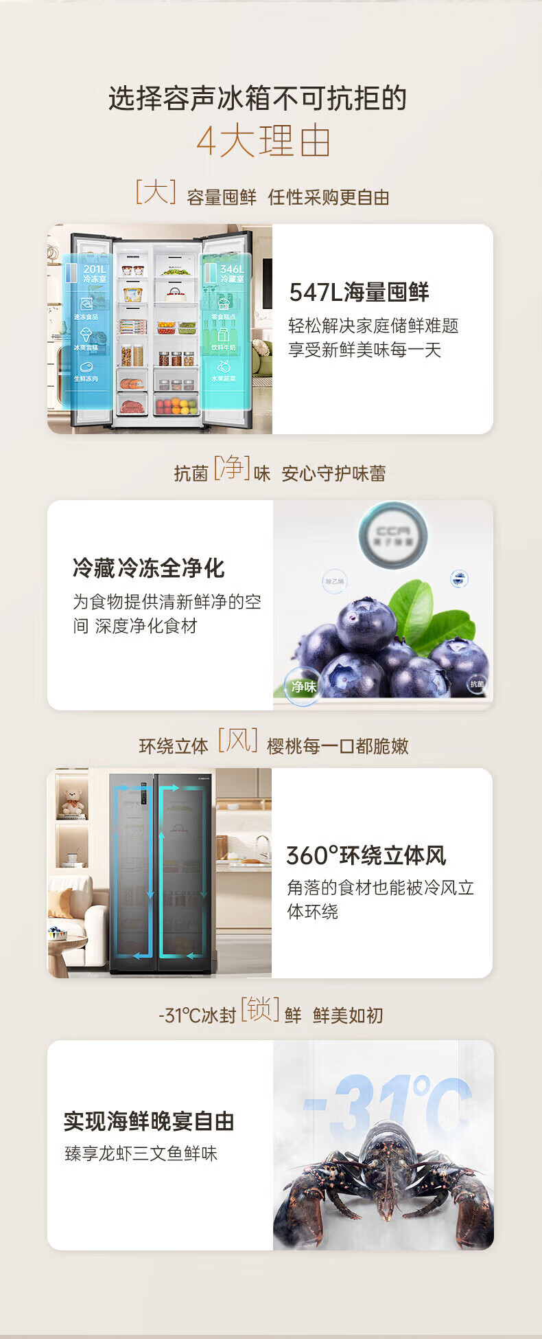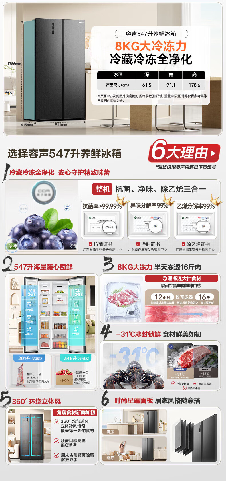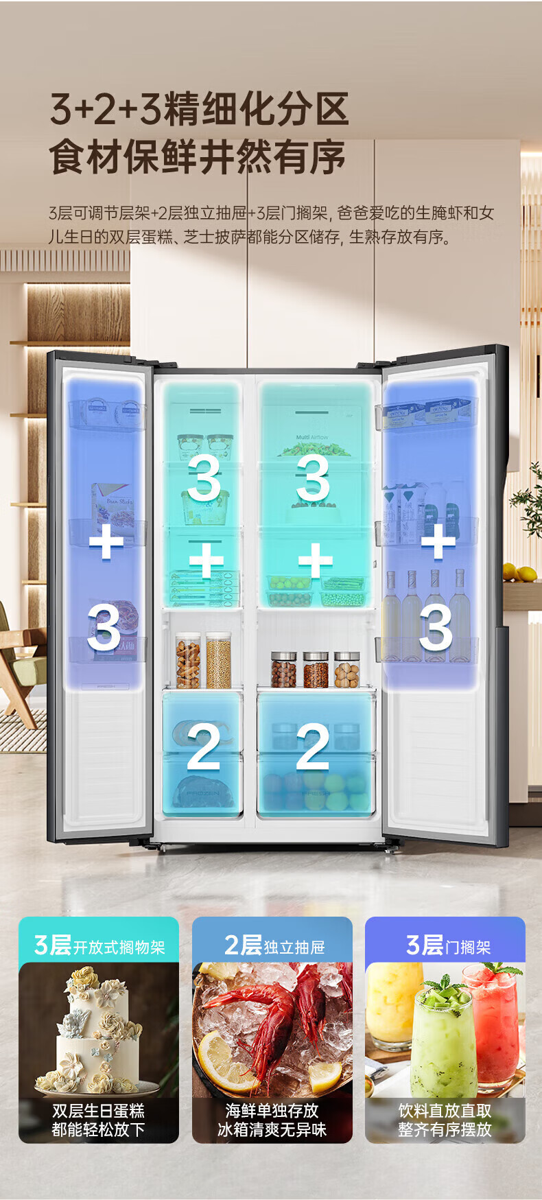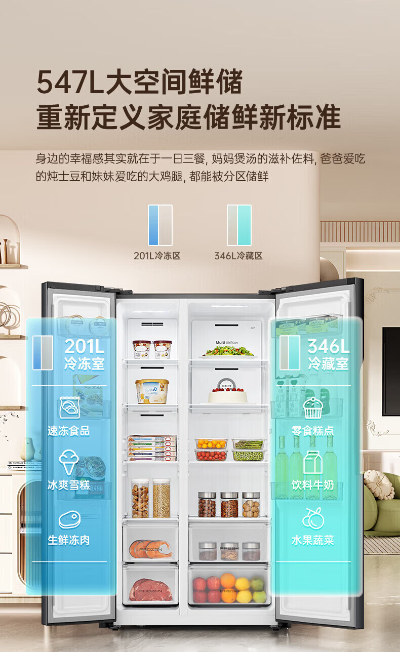 容声【国家补贴】547升双开对开门家用电冰箱一级能效节能变频风冷无霜超薄大容量-31度以旧换新20% 大容量对开门 BCD-547WD12HP灰