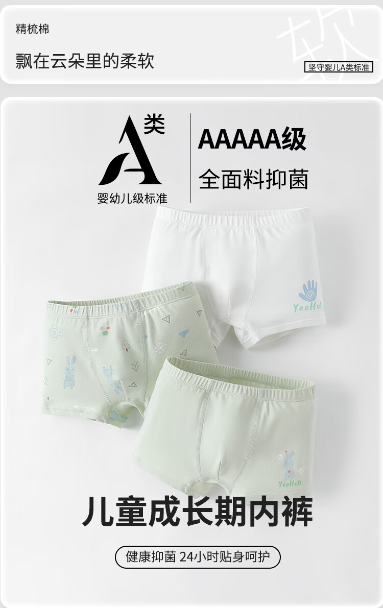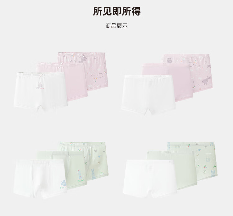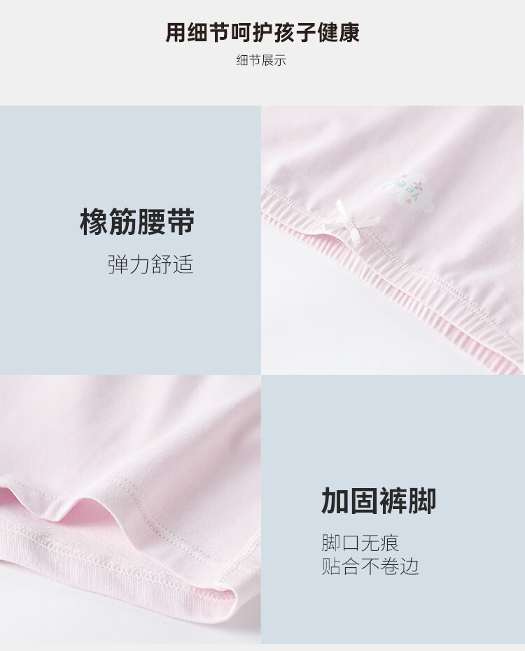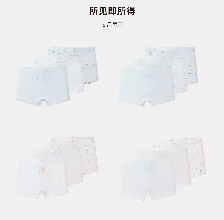 英氏3条装儿童内裤男女童棉质平角裤不夹PP四角短裤女孩安全短裤 紫色女童款 N2304GR 3条 110