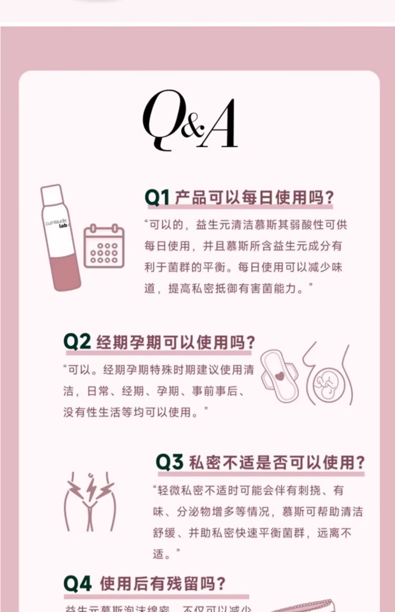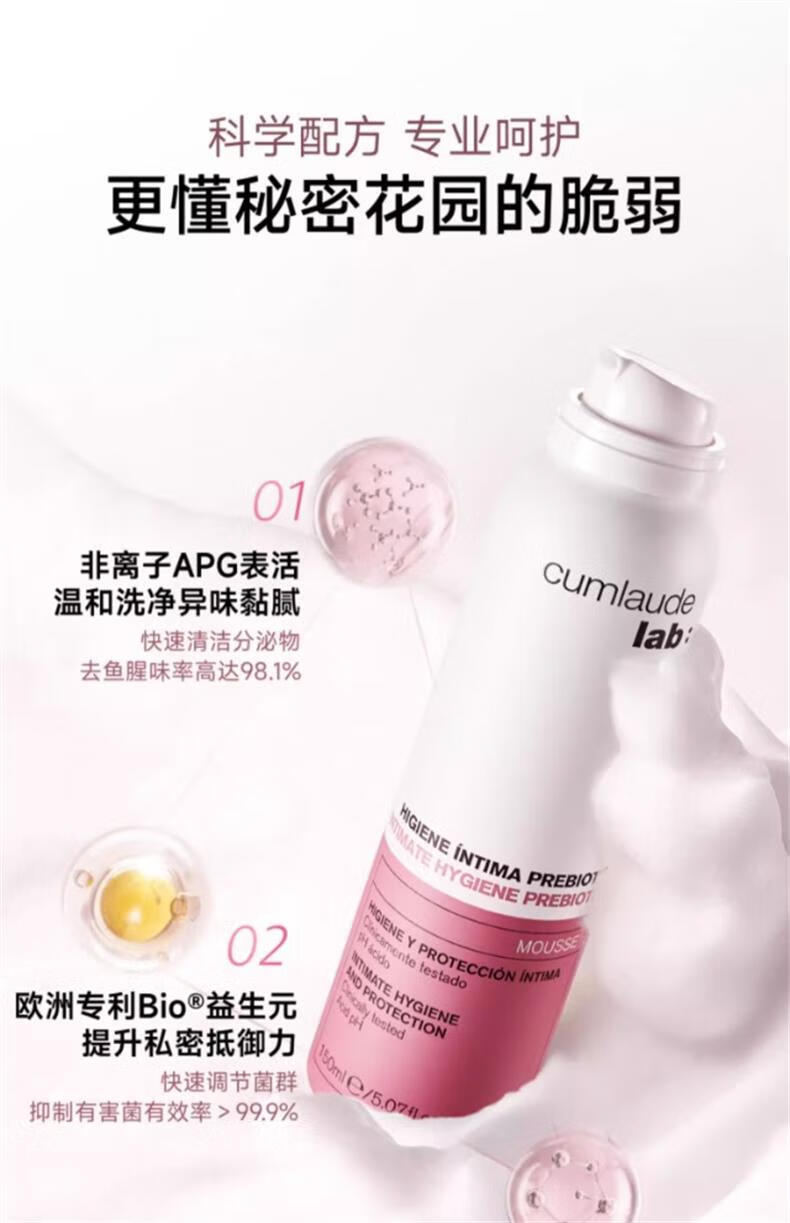 CUMLAUDE LAB:珂蔓朵私密益生元清洁慕斯洗护理液男女止痒祛味泡沫慕斯平衡菌群