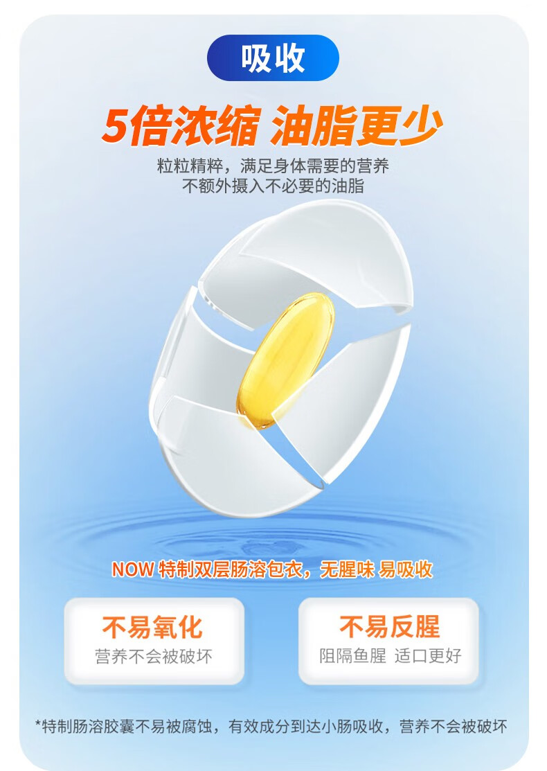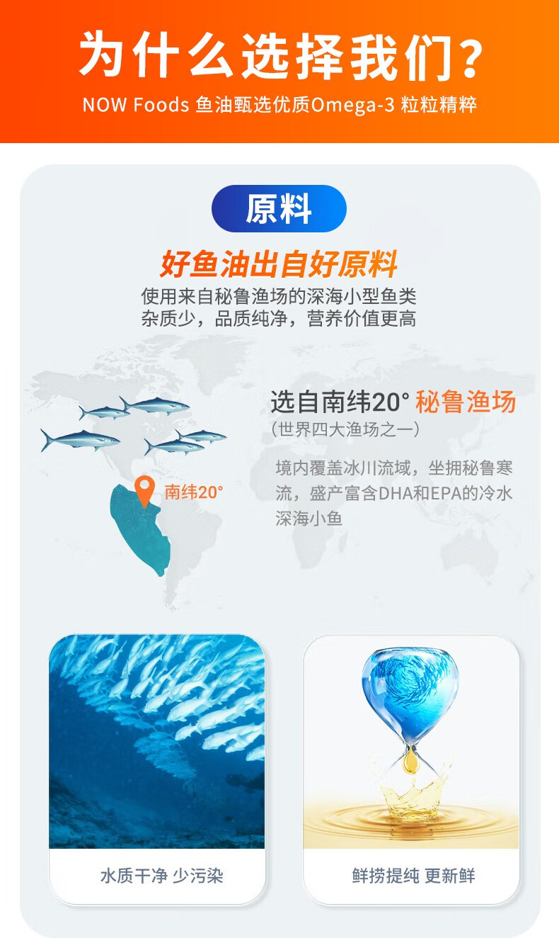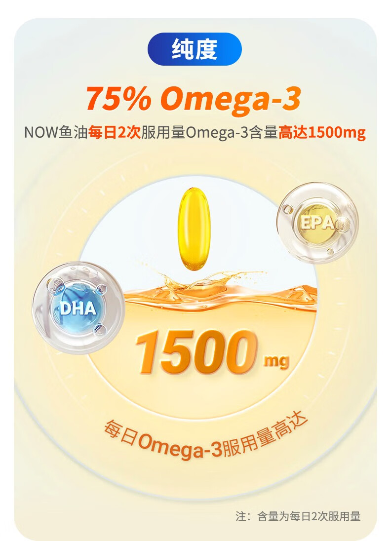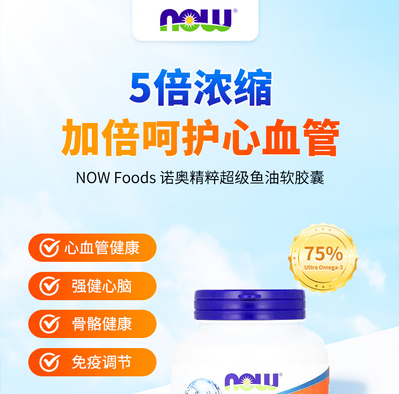 NOW FOODSUltraOmega-3鱼油软凝胶 护心健脑助眠降脂易于吞咽 180粒