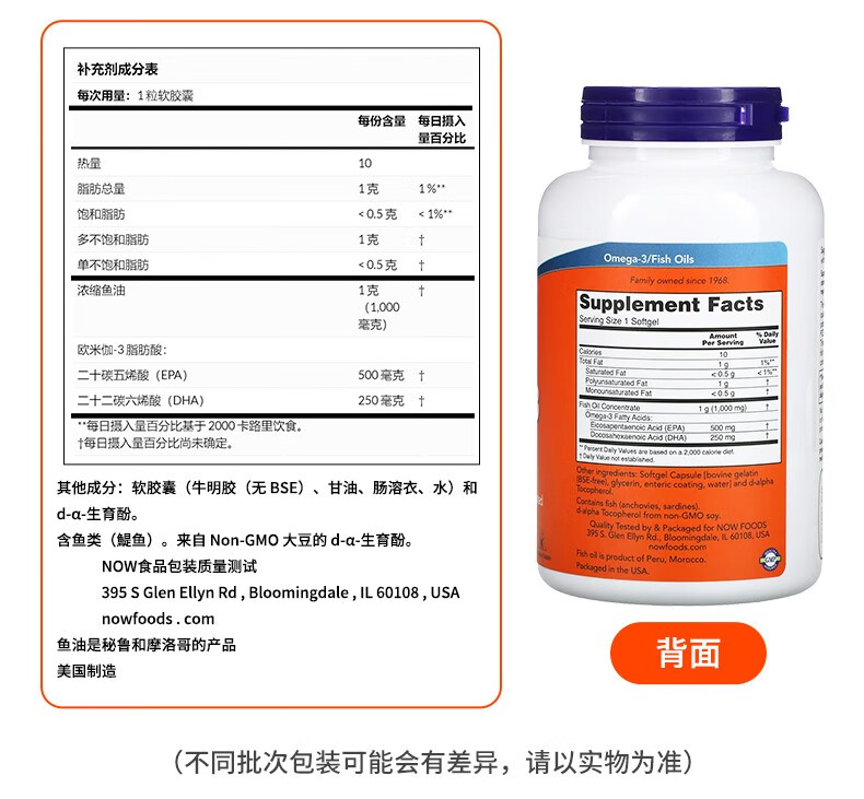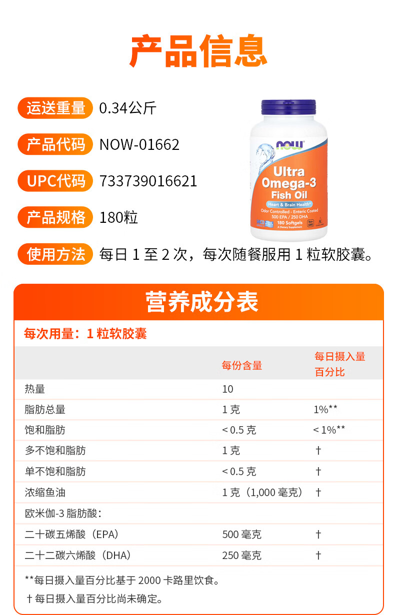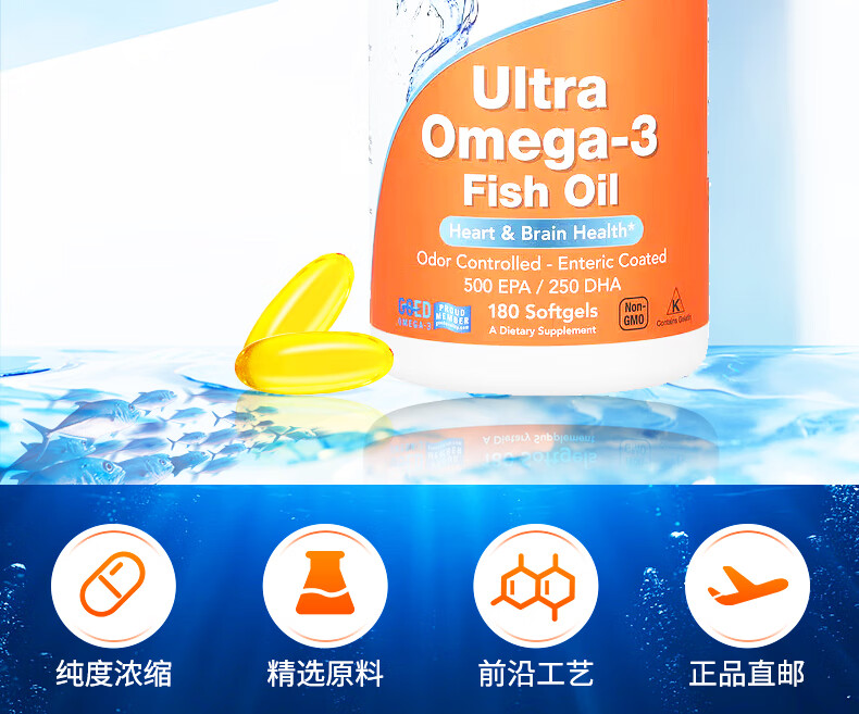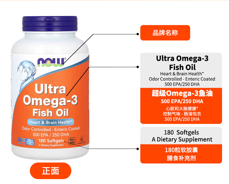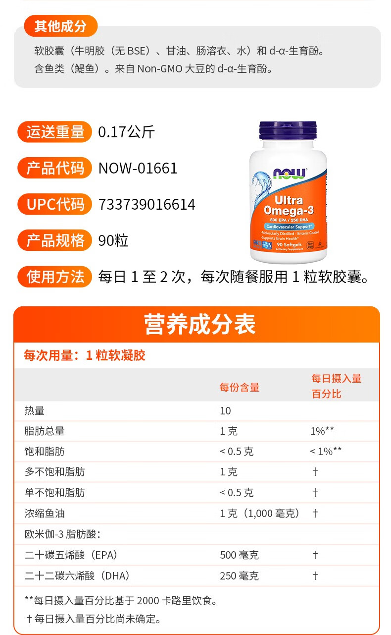 NOW FOODSUltraOmega-3鱼油软凝胶 护心健脑助眠降脂易于吞咽 180粒