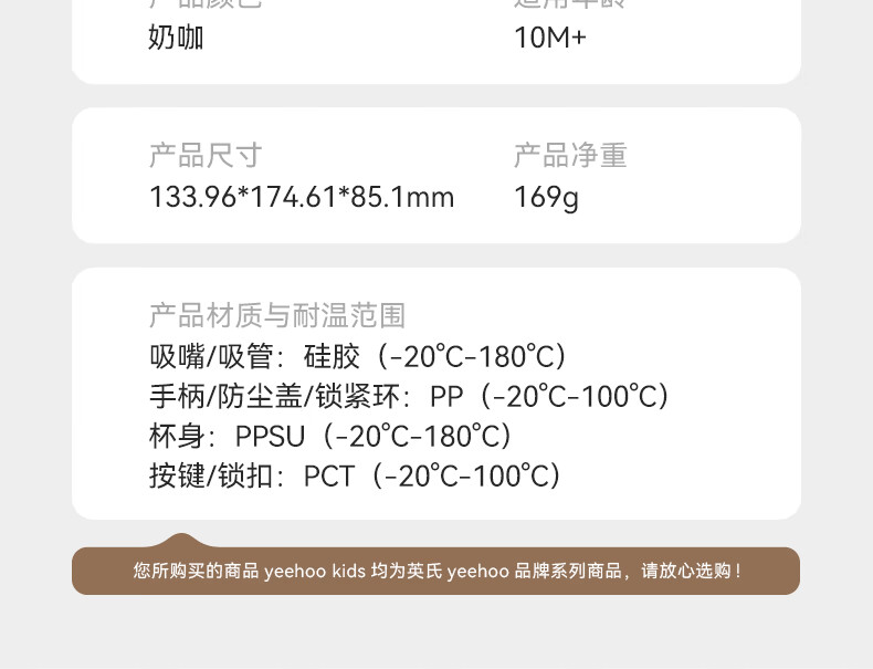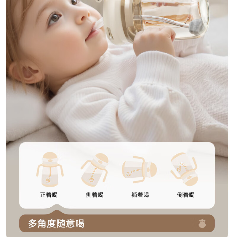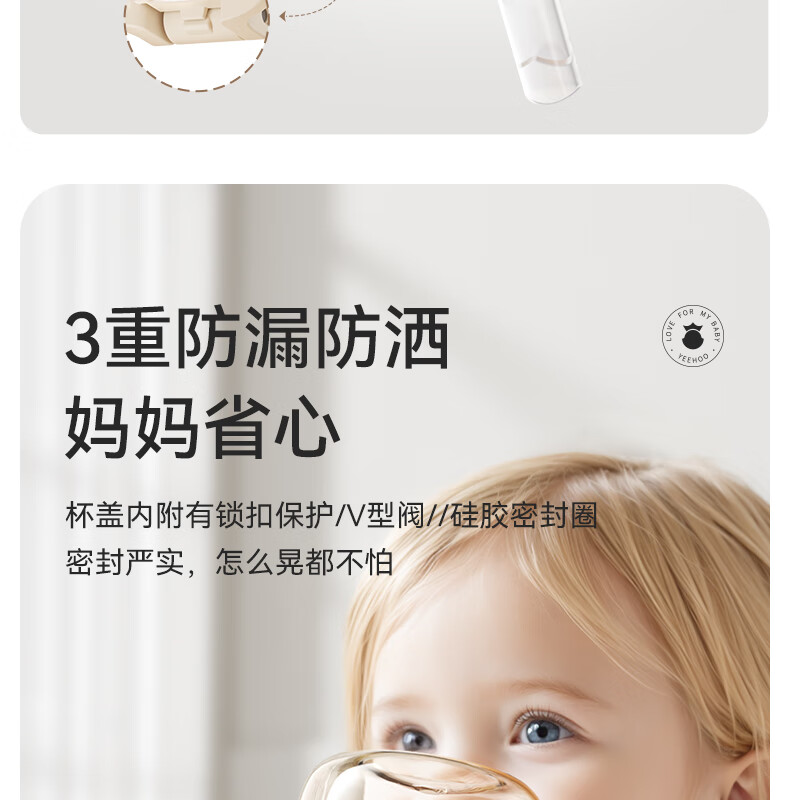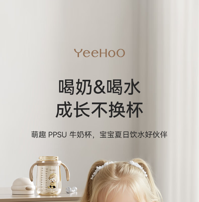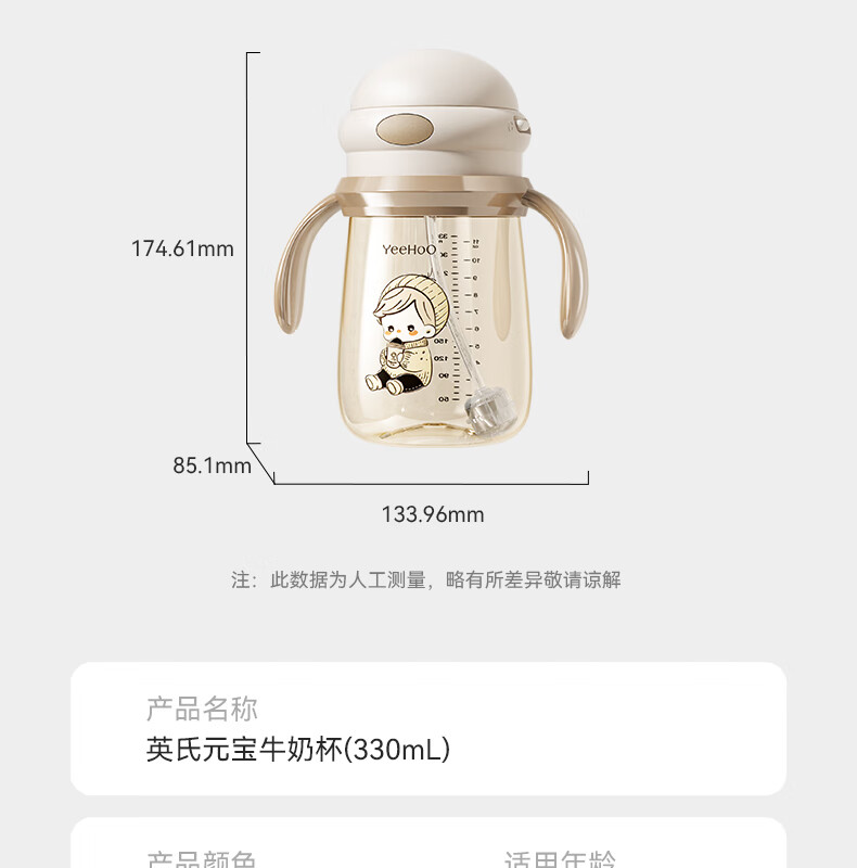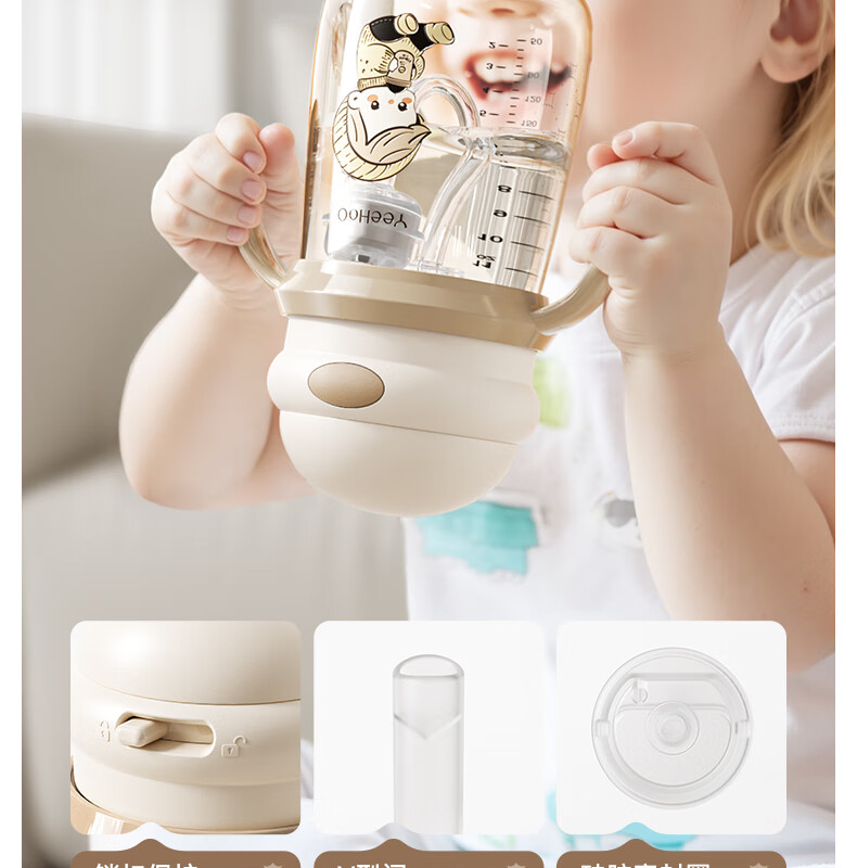 英氏(YEEHOO)儿童水杯吸管杯幼儿园水杯夏天大容量户外婴儿牛奶杯学饮杯