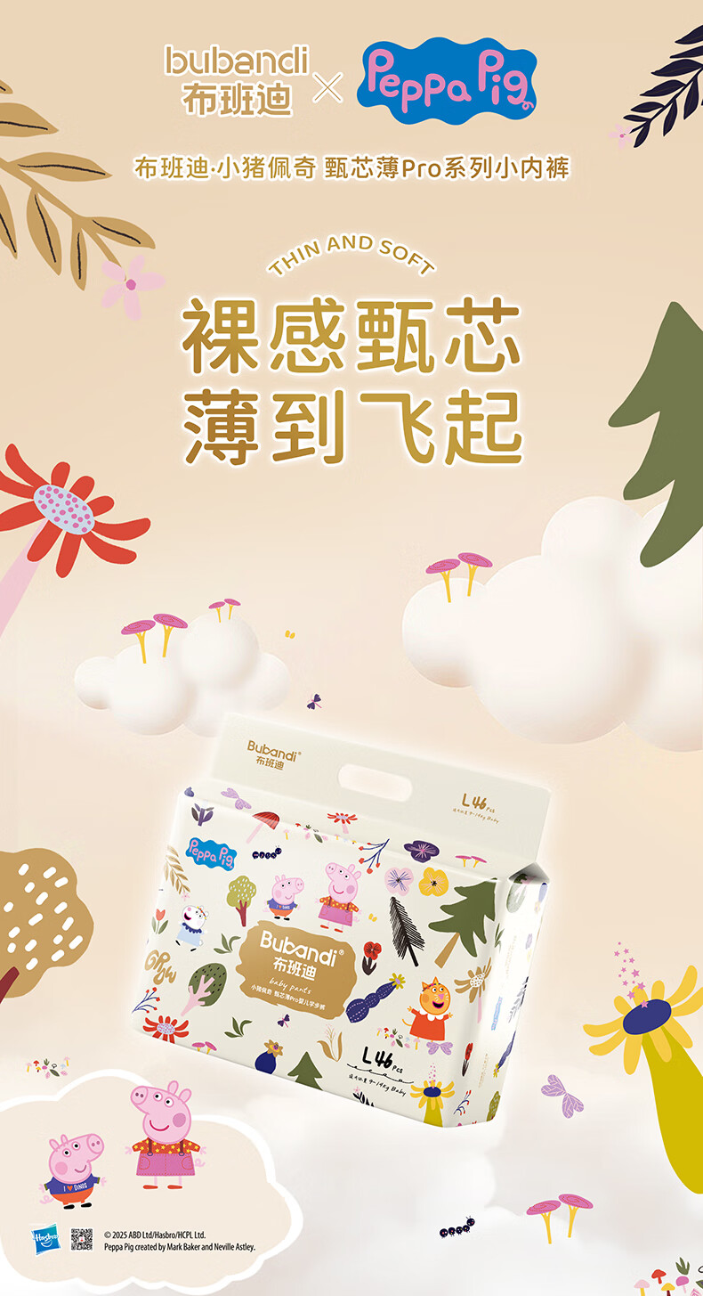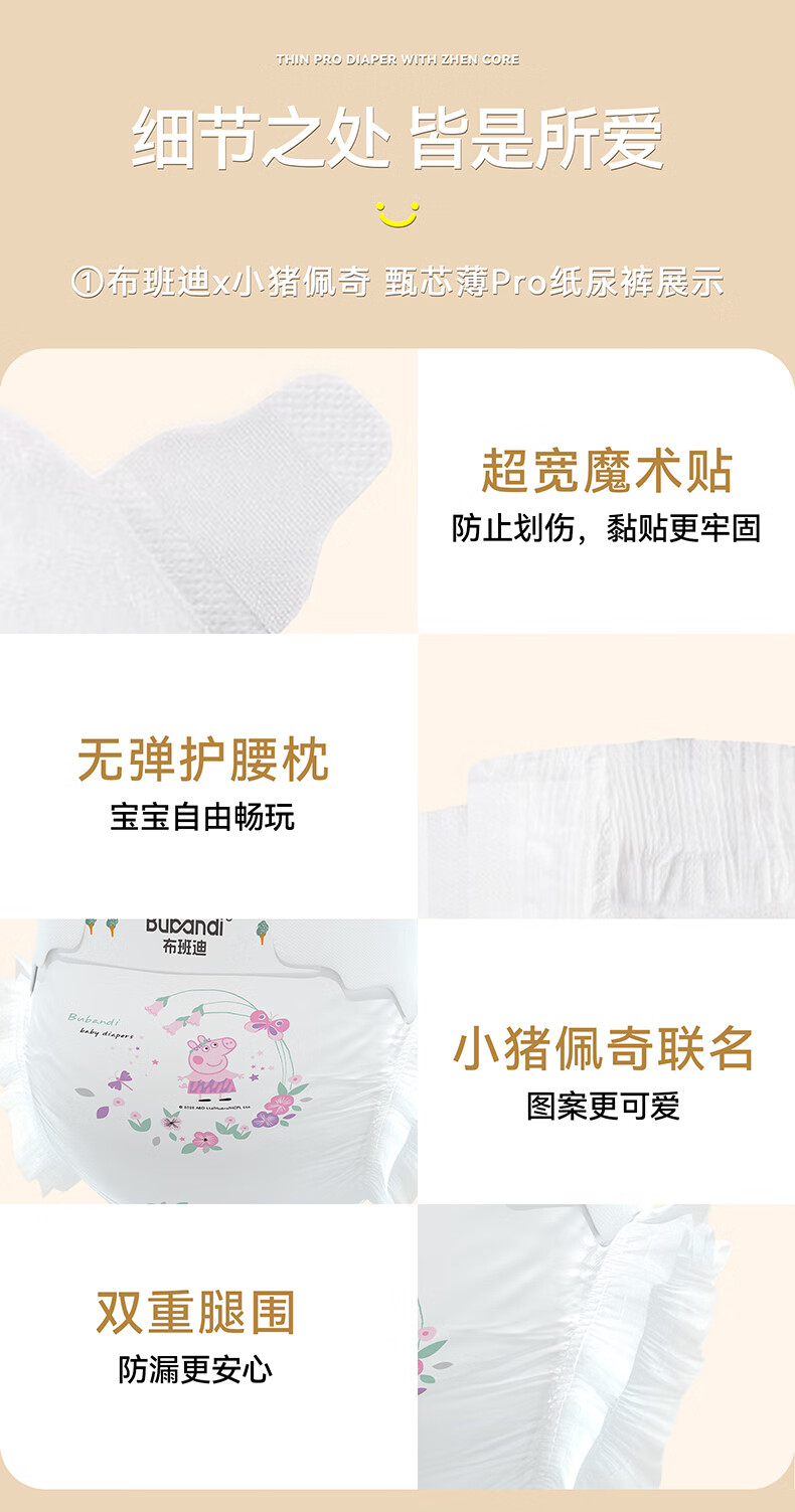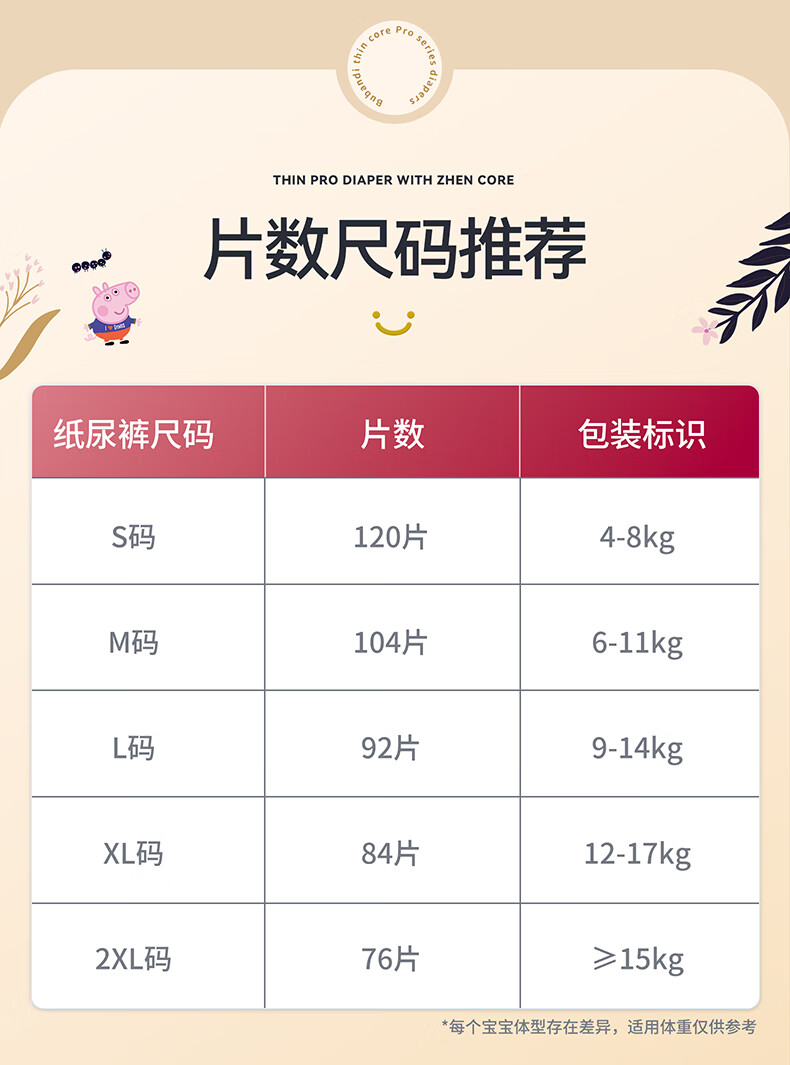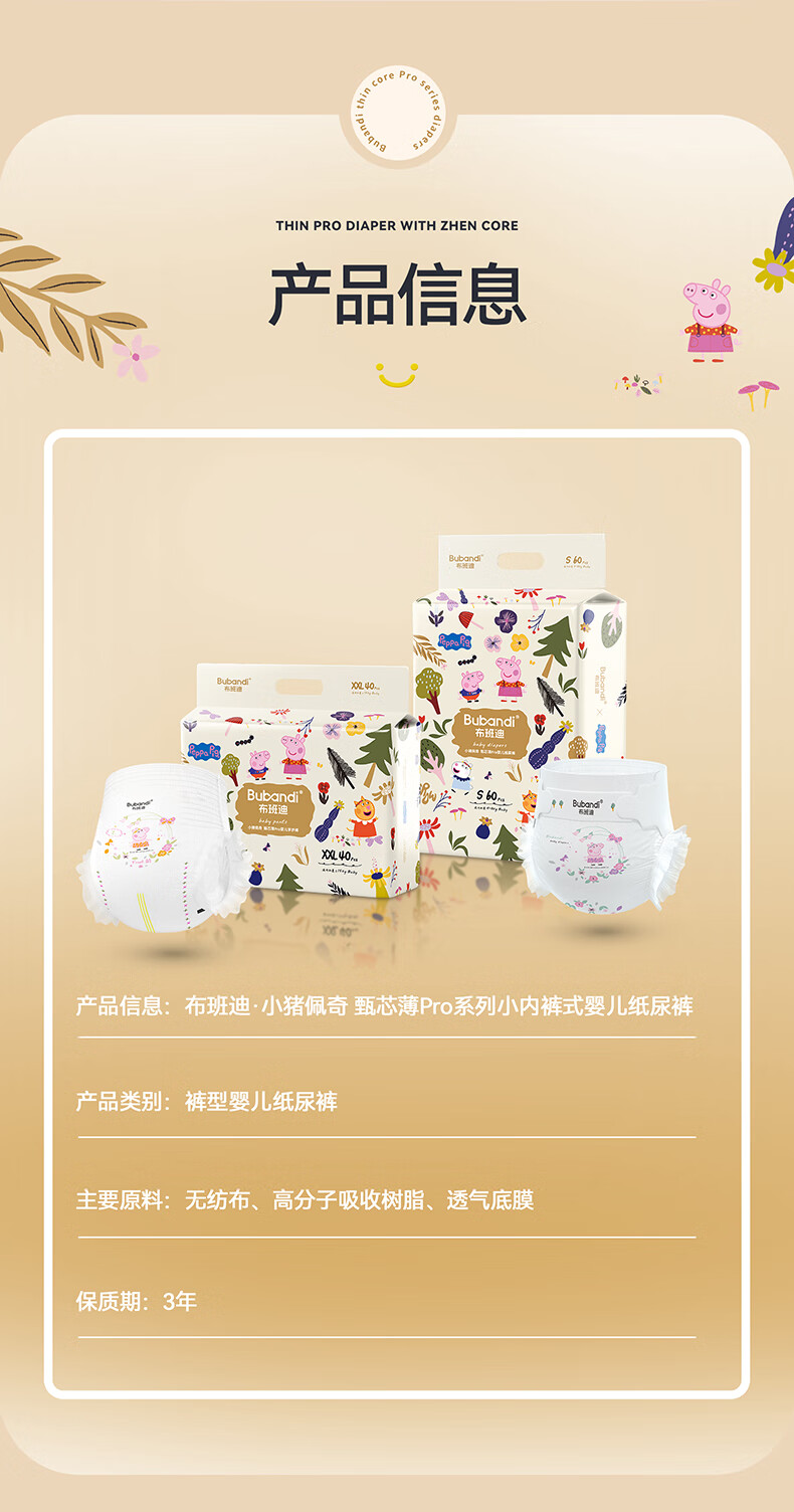 布班迪小猪佩奇甄芯薄Pro医护级全包臀拉拉裤新生婴儿超薄透气尿不湿 【全包臀】拉拉裤L码92片