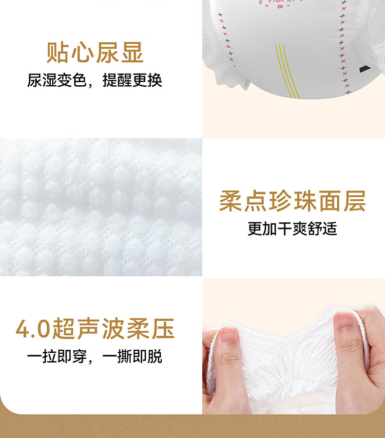帮宝适【透气顶配】黑金帮婴儿拉拉裤尿不湿尿片尿布添加真蚕丝4XL40