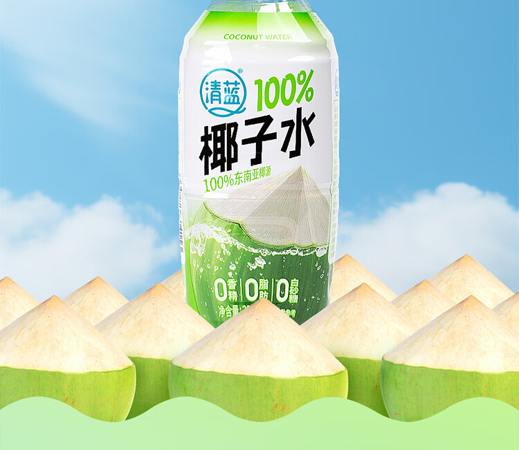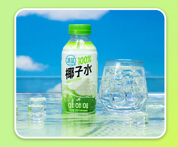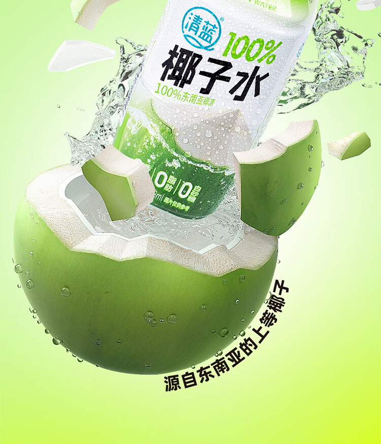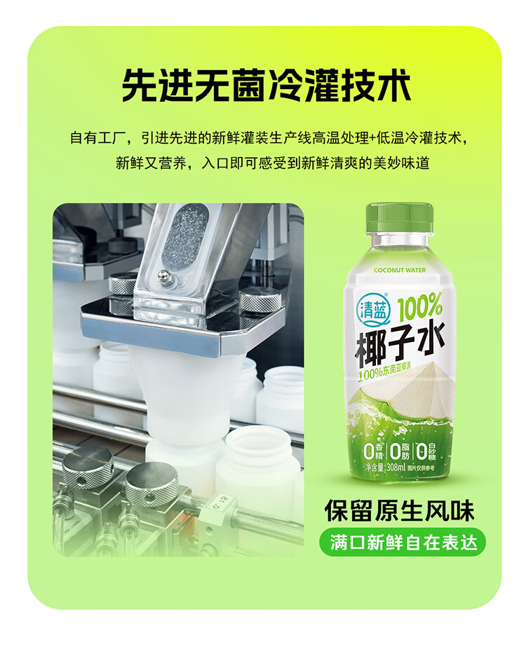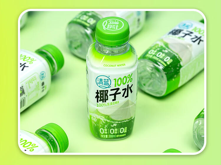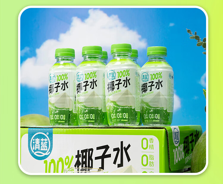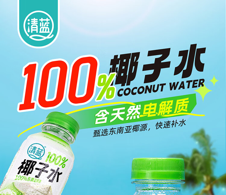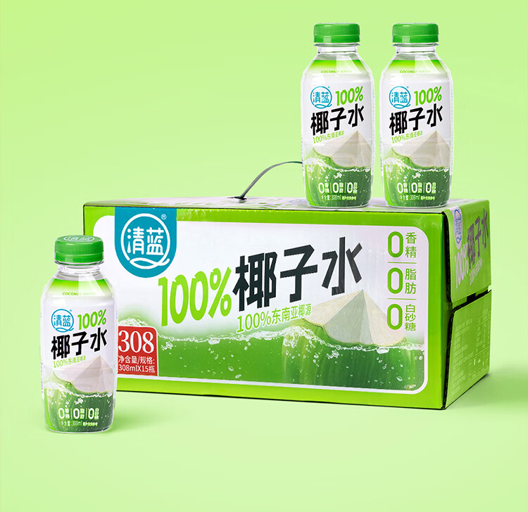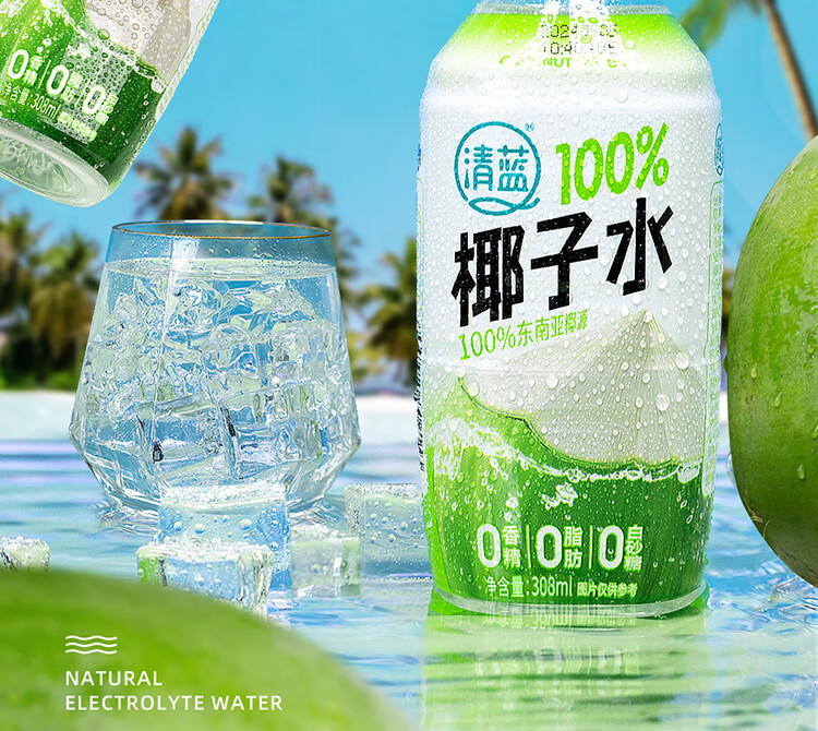 清蓝100%纯椰子水308ml天然东南亚椰青椰汁网红健身电解质0脂果汁饮品 308ml*8瓶装-1箱【共8瓶】