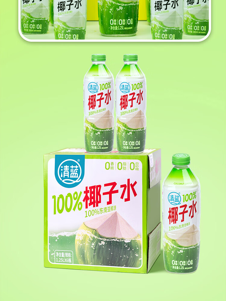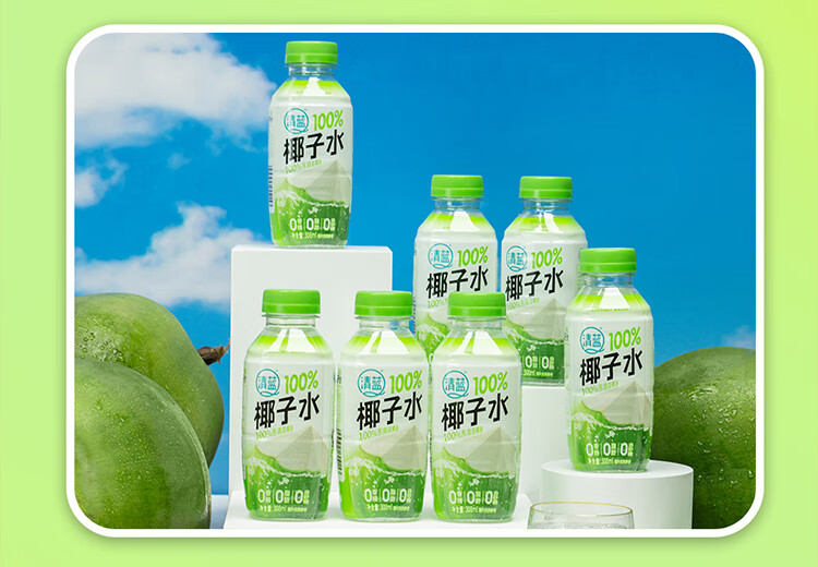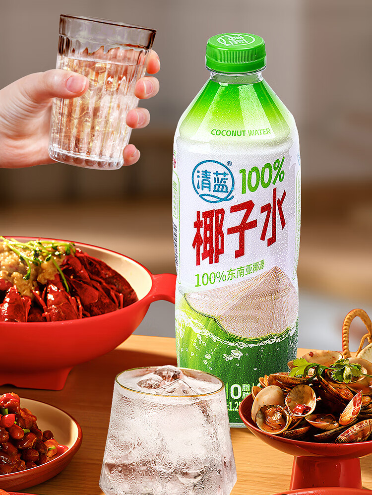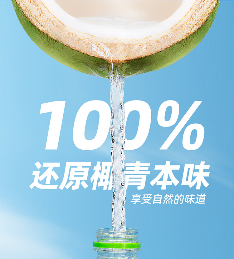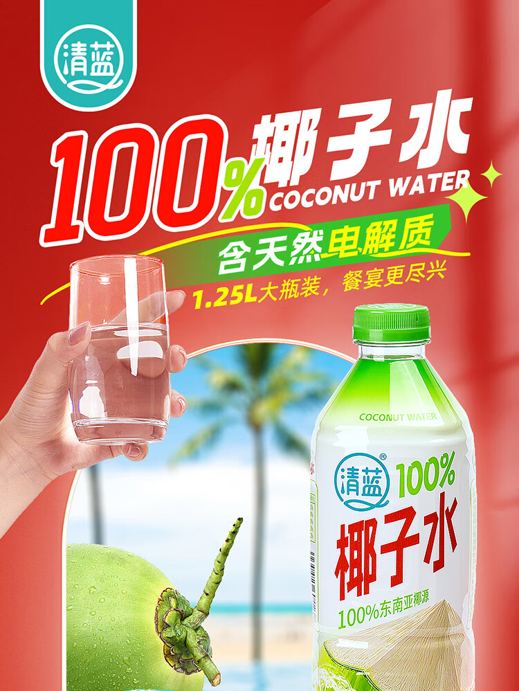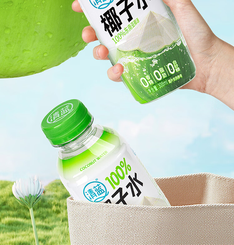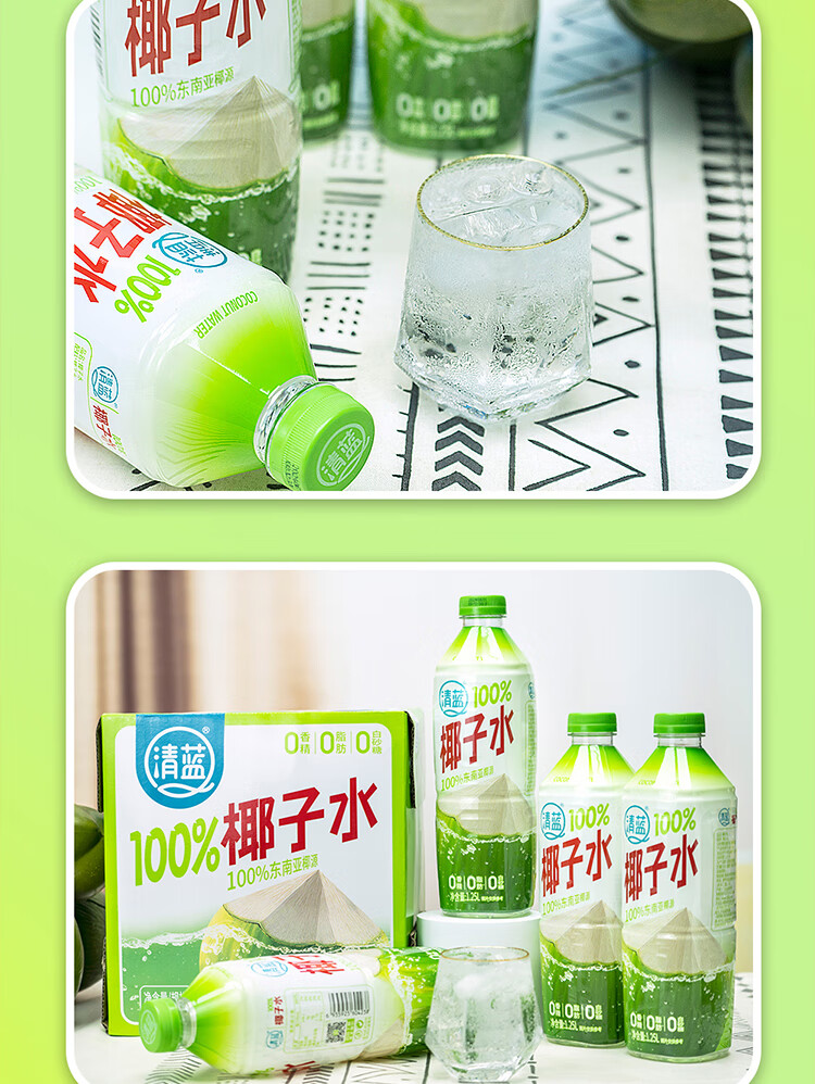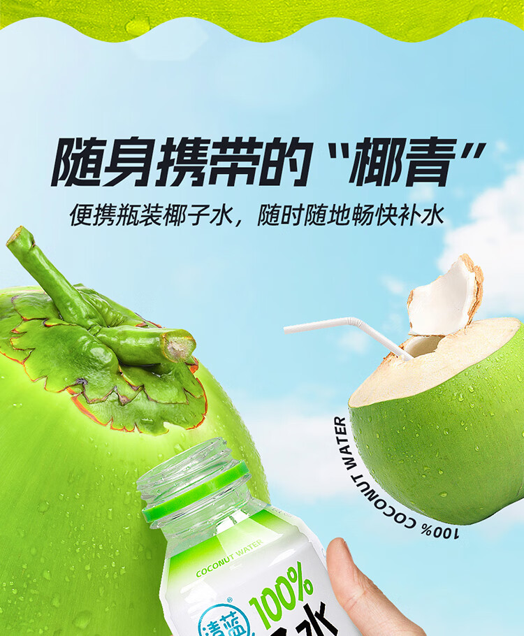 清蓝100%纯椰子水308ml天然东南亚椰青椰汁网红健身电解质0脂果汁饮品 308ml*8瓶装-1箱【共8瓶】