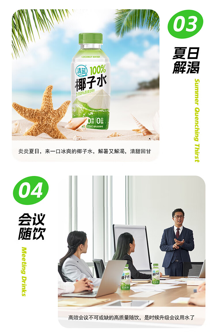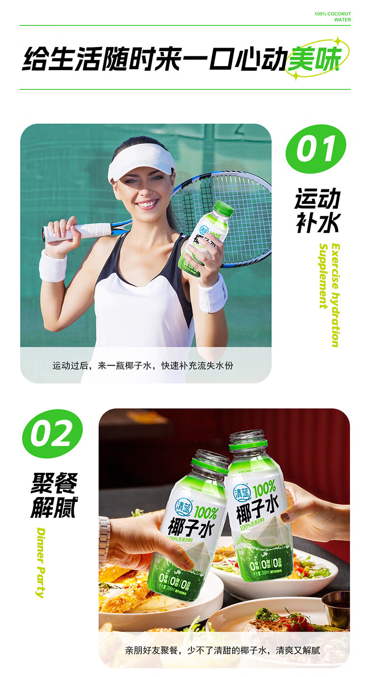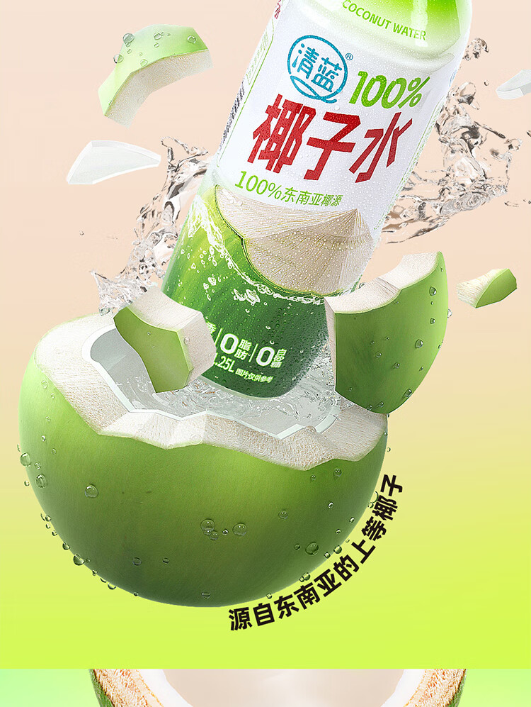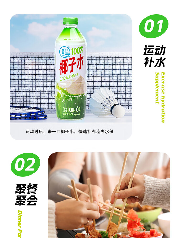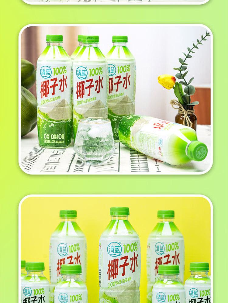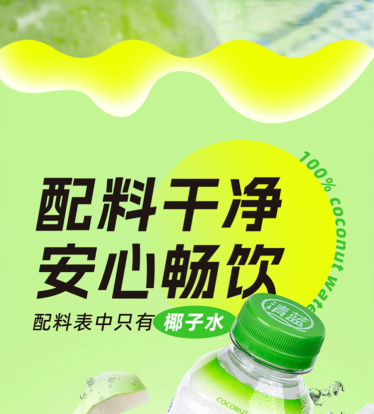 清蓝100%纯椰子水308ml天然东南亚椰青椰汁网红健身电解质0脂果汁饮品 308ml*8瓶装-1箱【共8瓶】