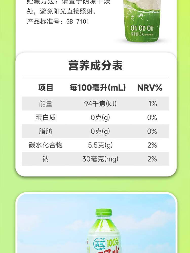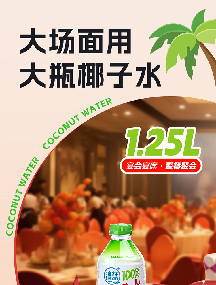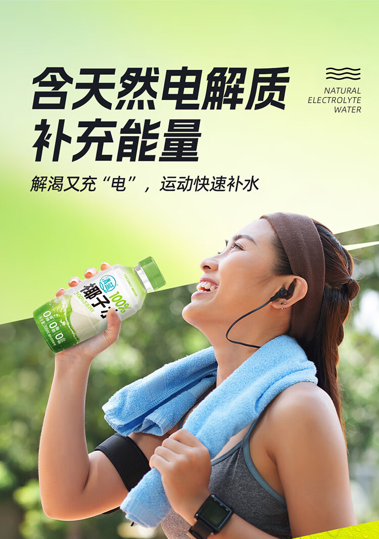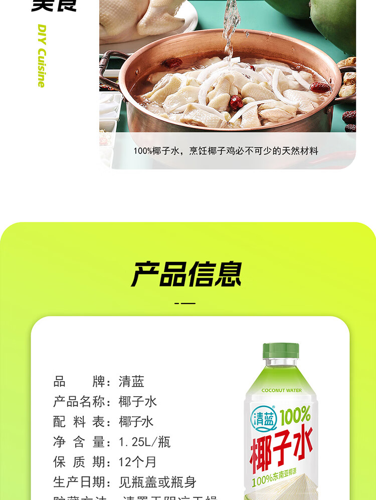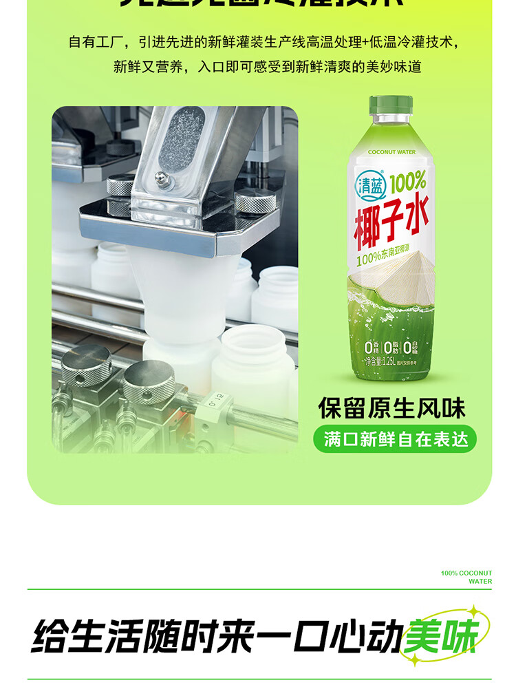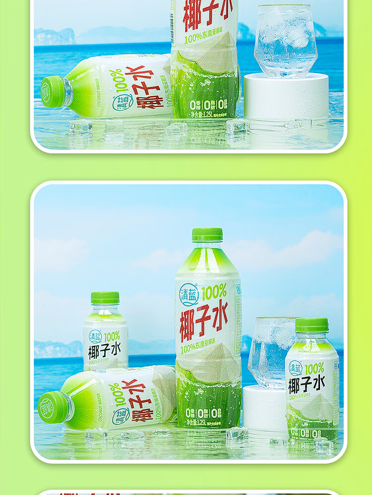 清蓝100%纯椰子水308ml天然东南亚椰青椰汁网红健身电解质0脂果汁饮品 308ml*8瓶装-1箱【共8瓶】