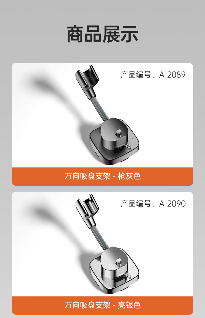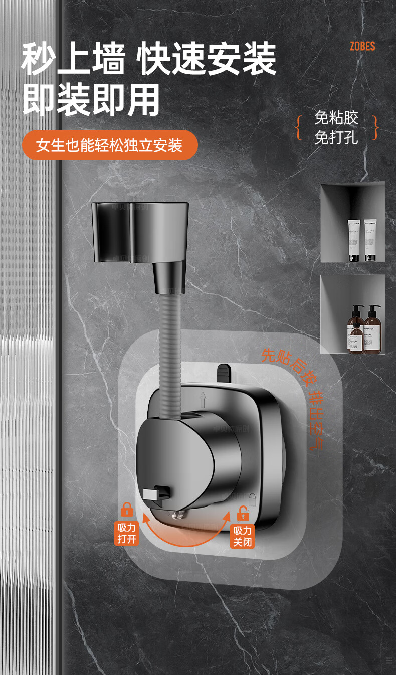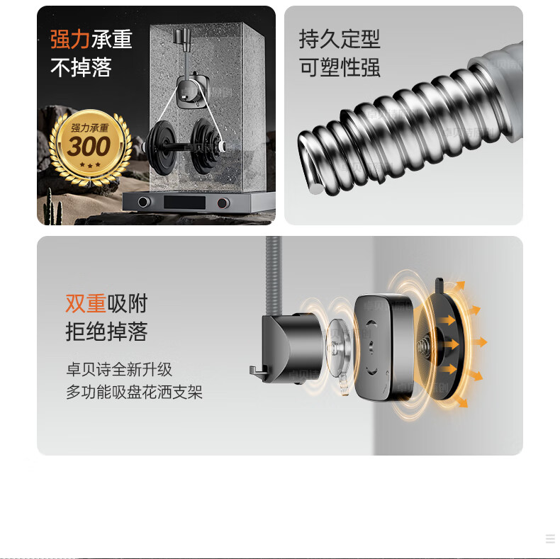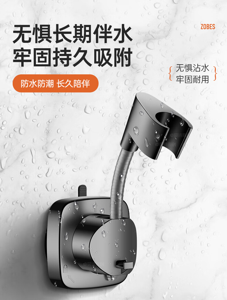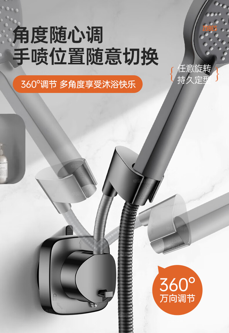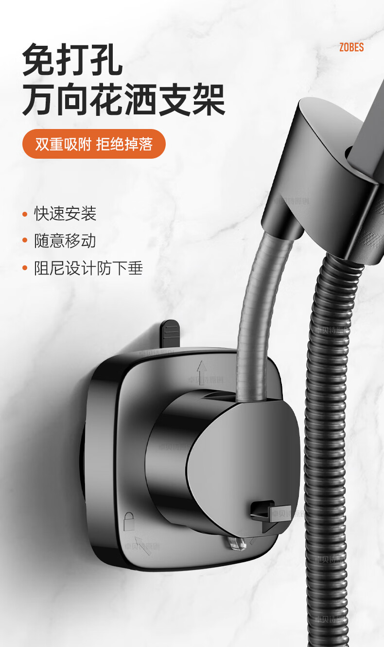 卓贝诗花洒支架免打孔淋浴头固定器浴室强力吸盘式可调节可旋转底座支架 可移动花洒支架【亮银】强力粘性 强力吸盘丨万向调节