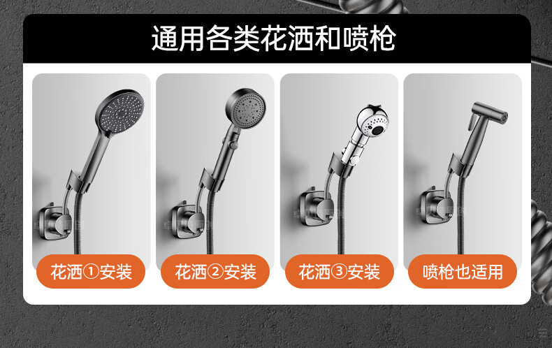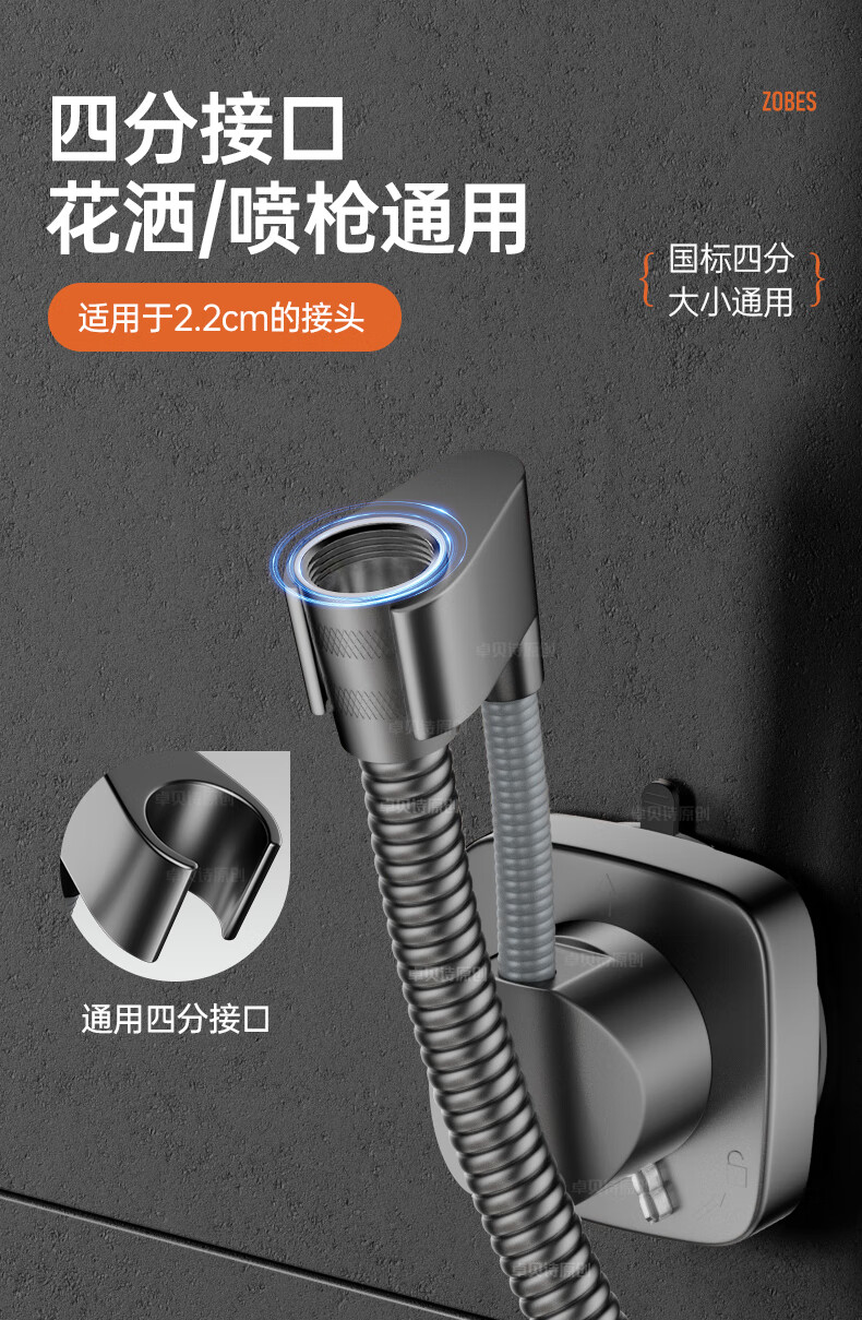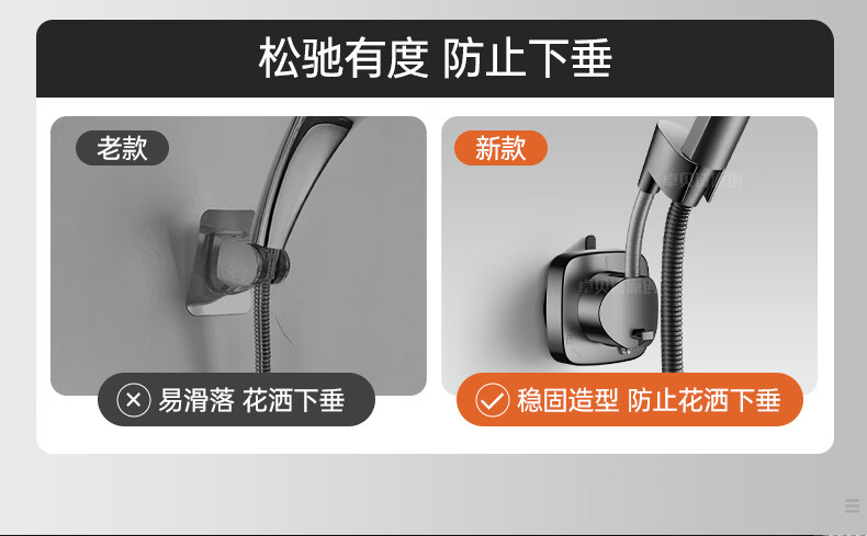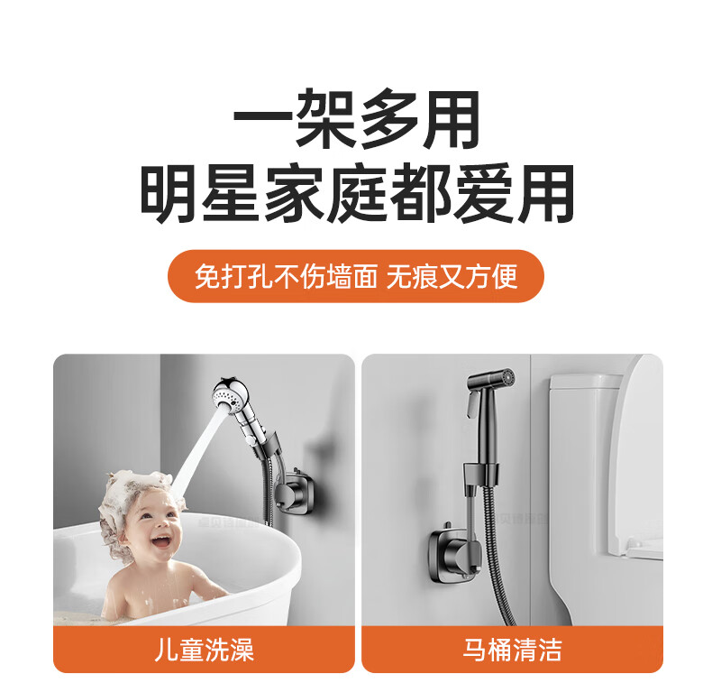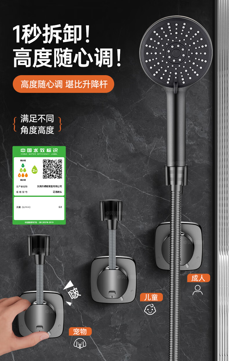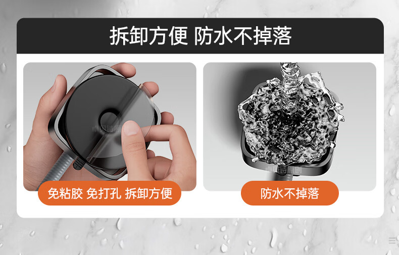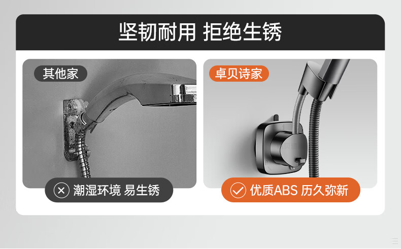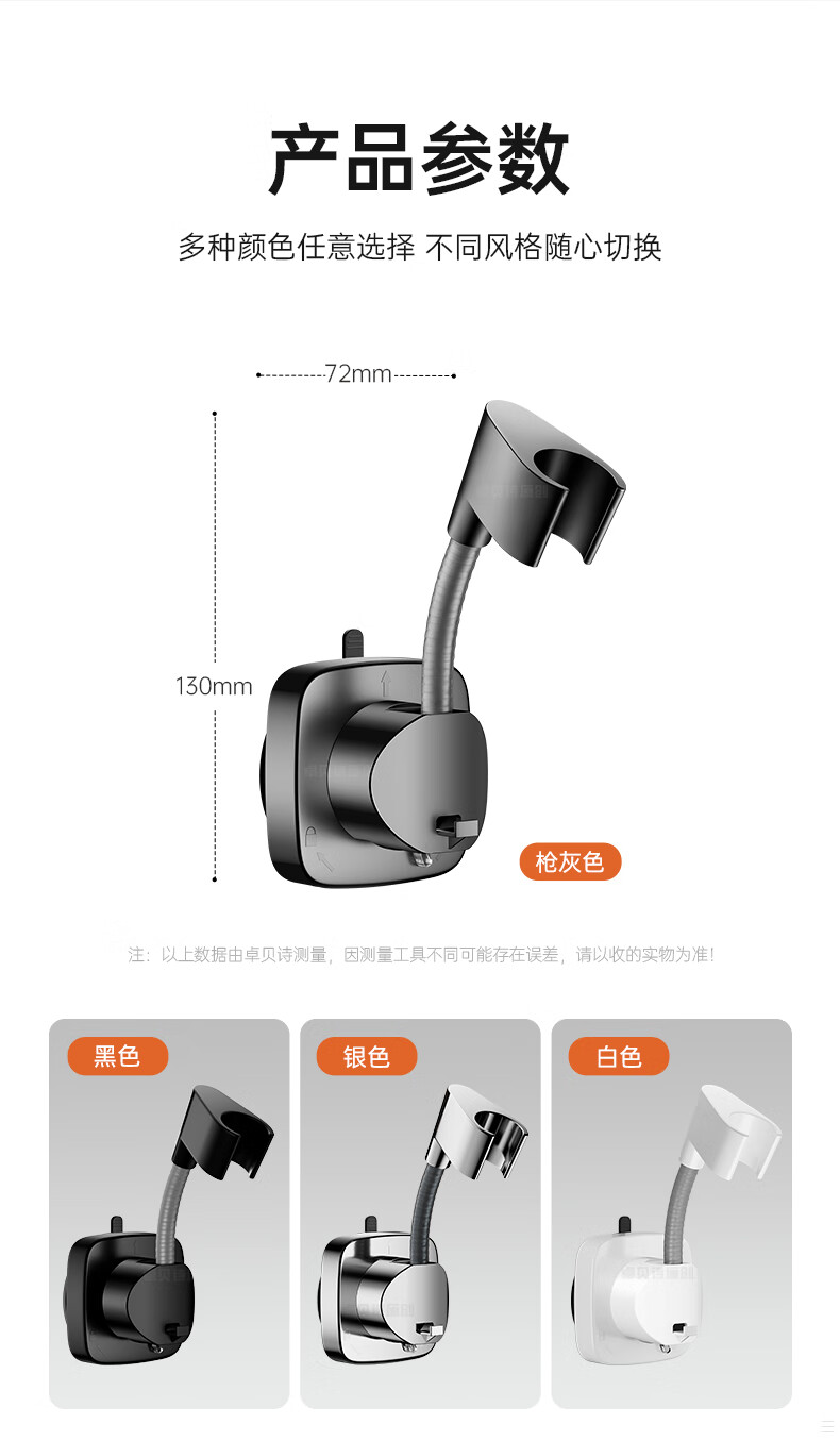 卓贝诗花洒支架免打孔淋浴头固定器浴室强力吸盘式可调节可旋转底座支架 可移动花洒支架【亮银】强力粘性 强力吸盘丨万向调节
