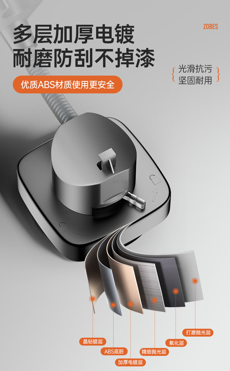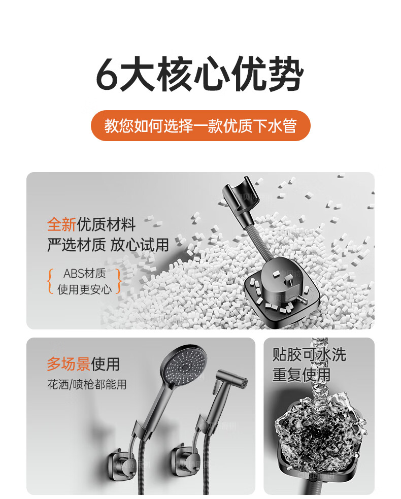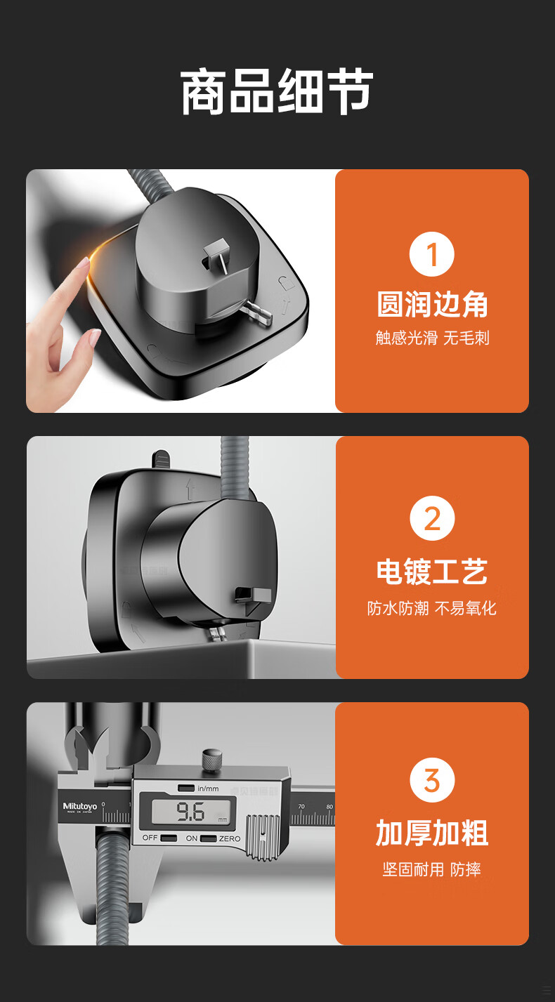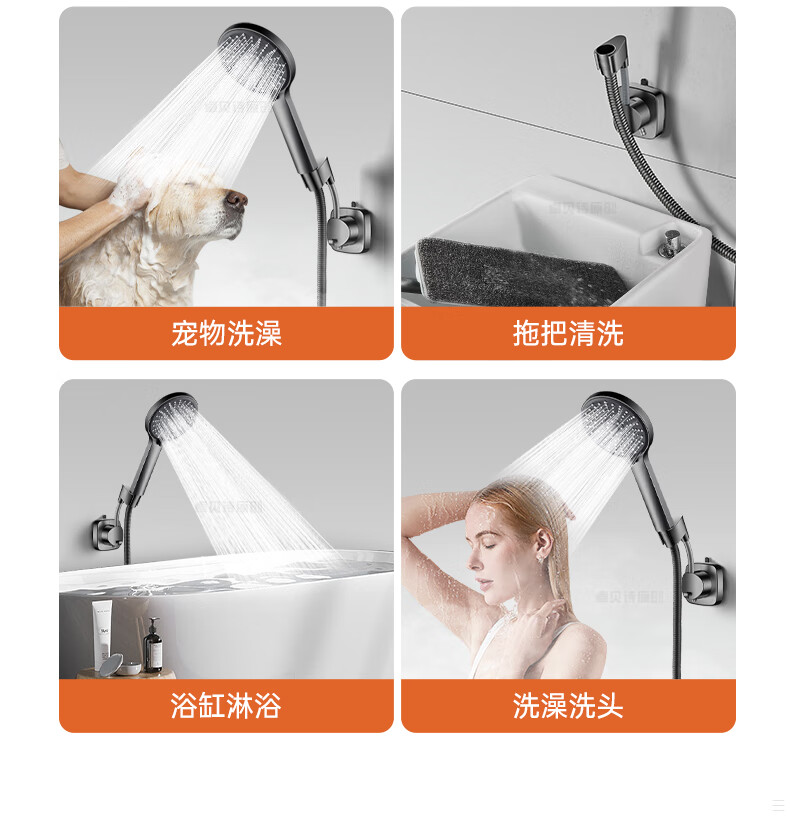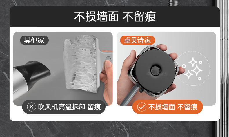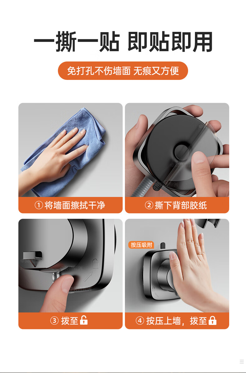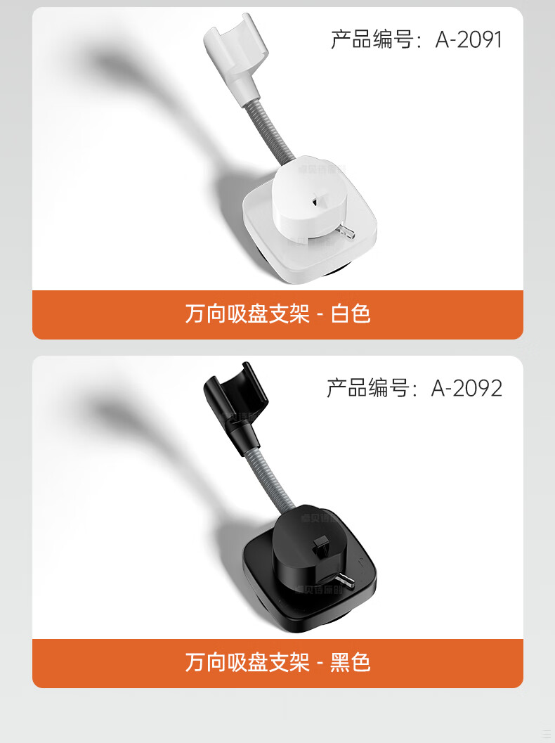 卓贝诗花洒支架免打孔淋浴头固定器浴室强力吸盘式可调节可旋转底座支架 可移动花洒支架【亮银】强力粘性 强力吸盘丨万向调节