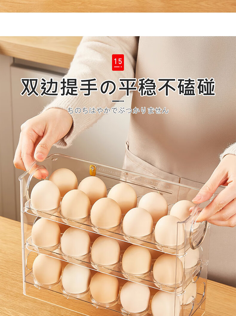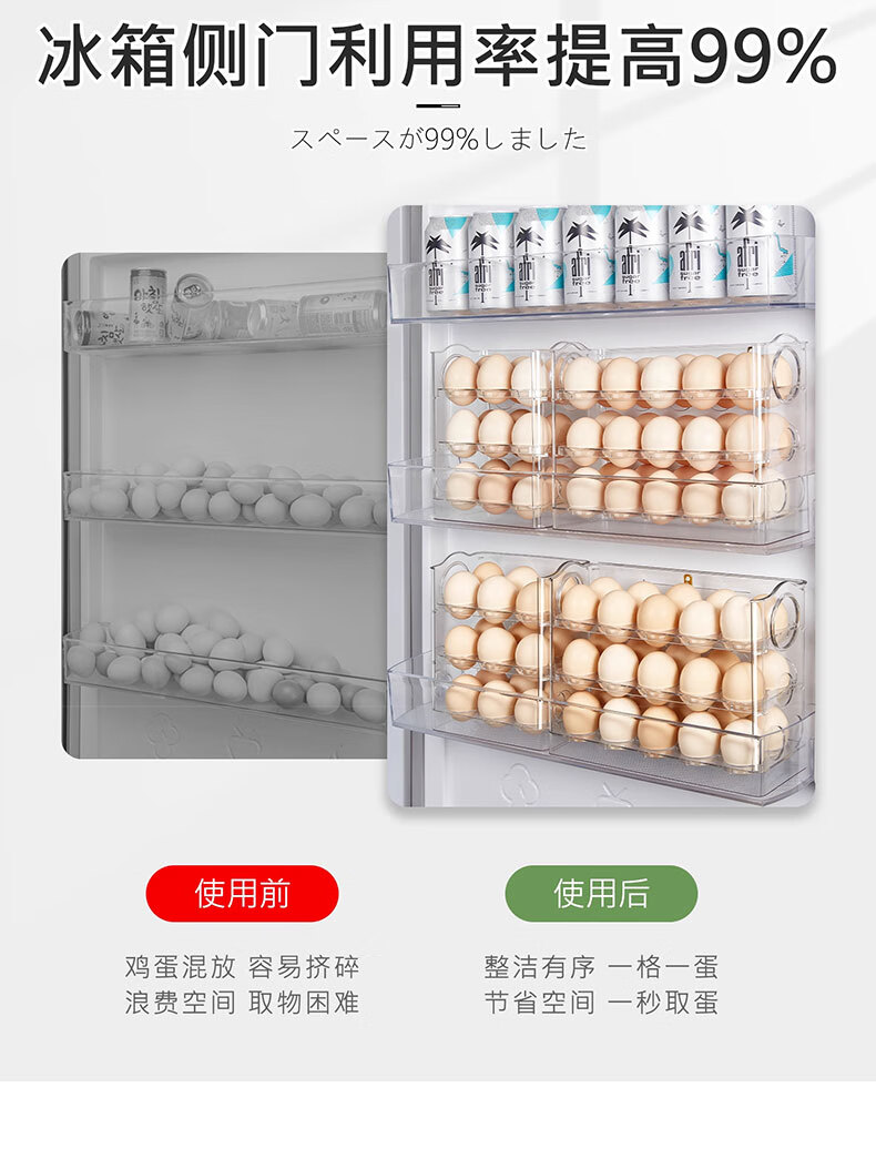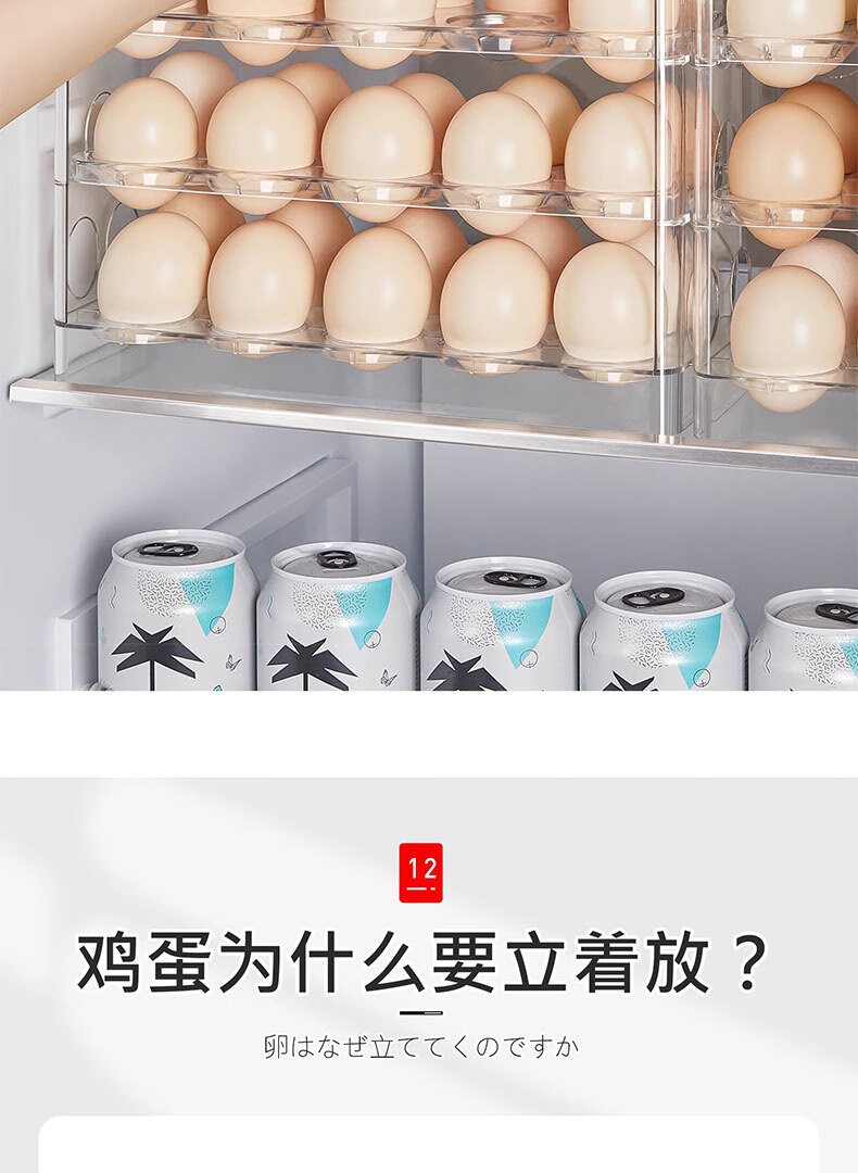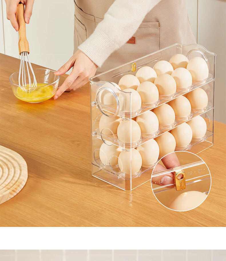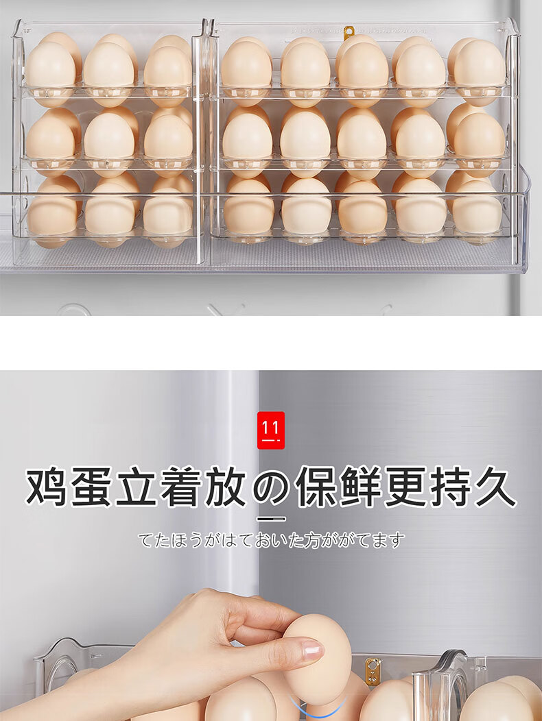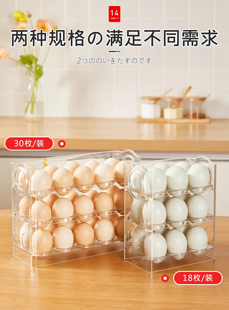 吱凡日本冰箱用鸡蛋收纳盒食品级保鲜盒厨房专用整理收纳自动翻转蛋托 【2个透明】18枚装+30枚装