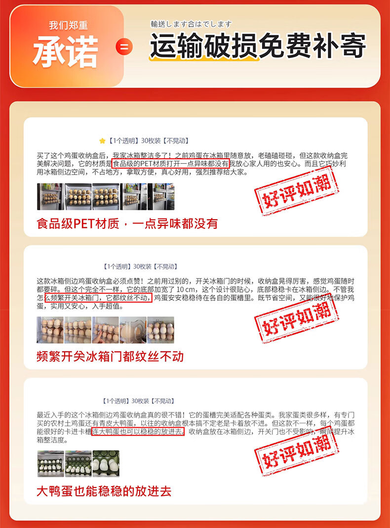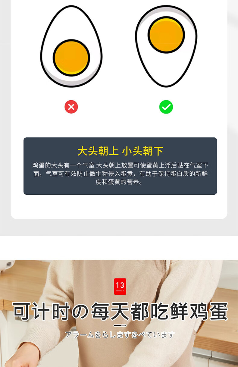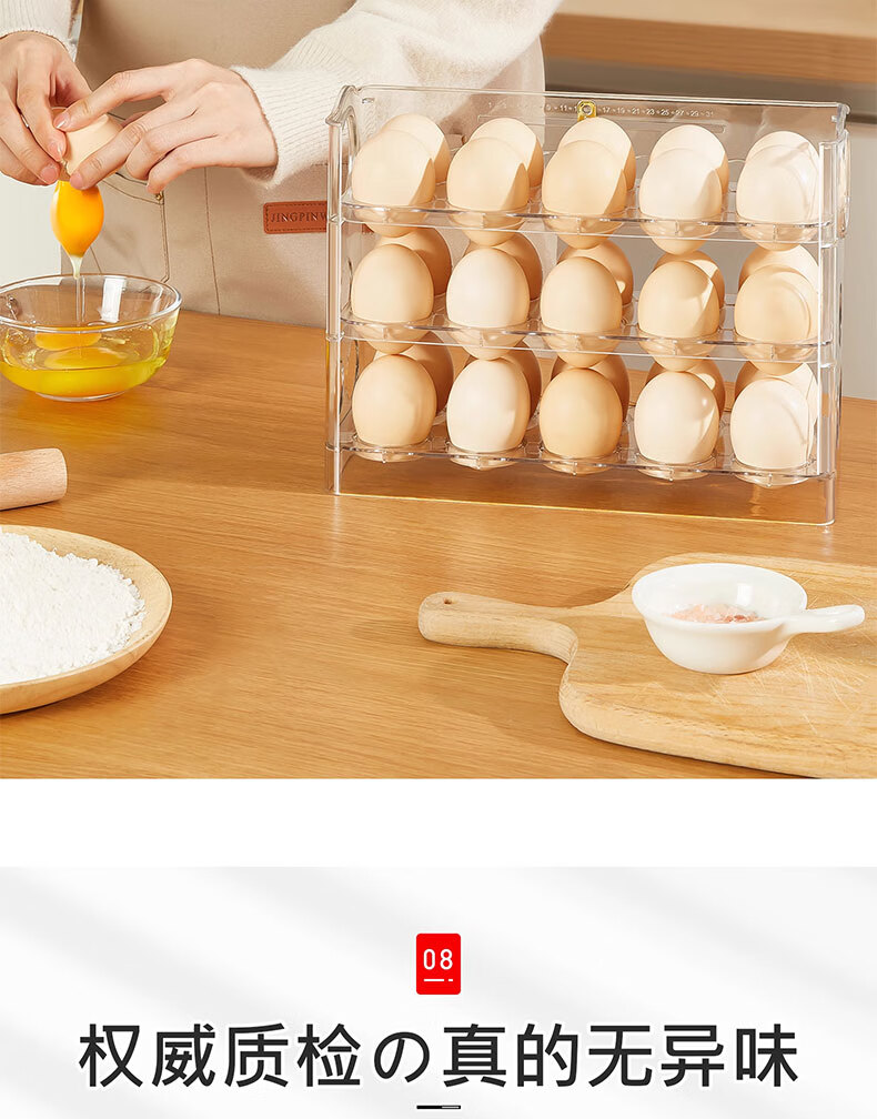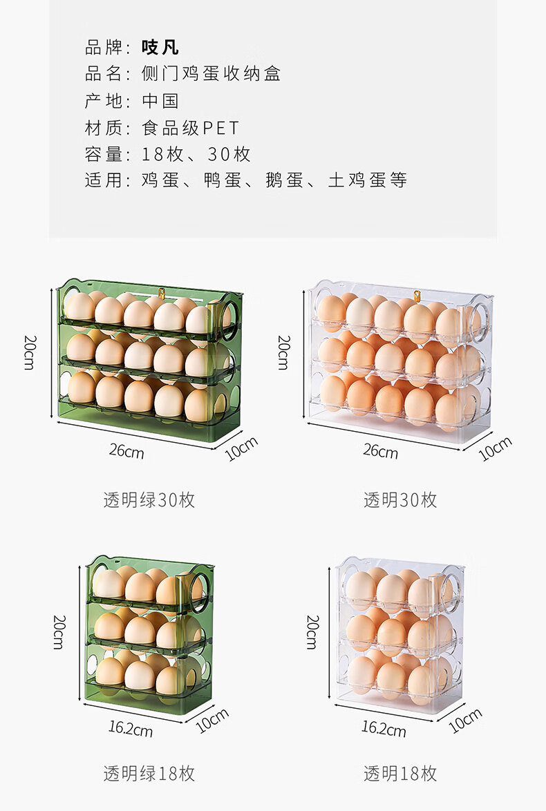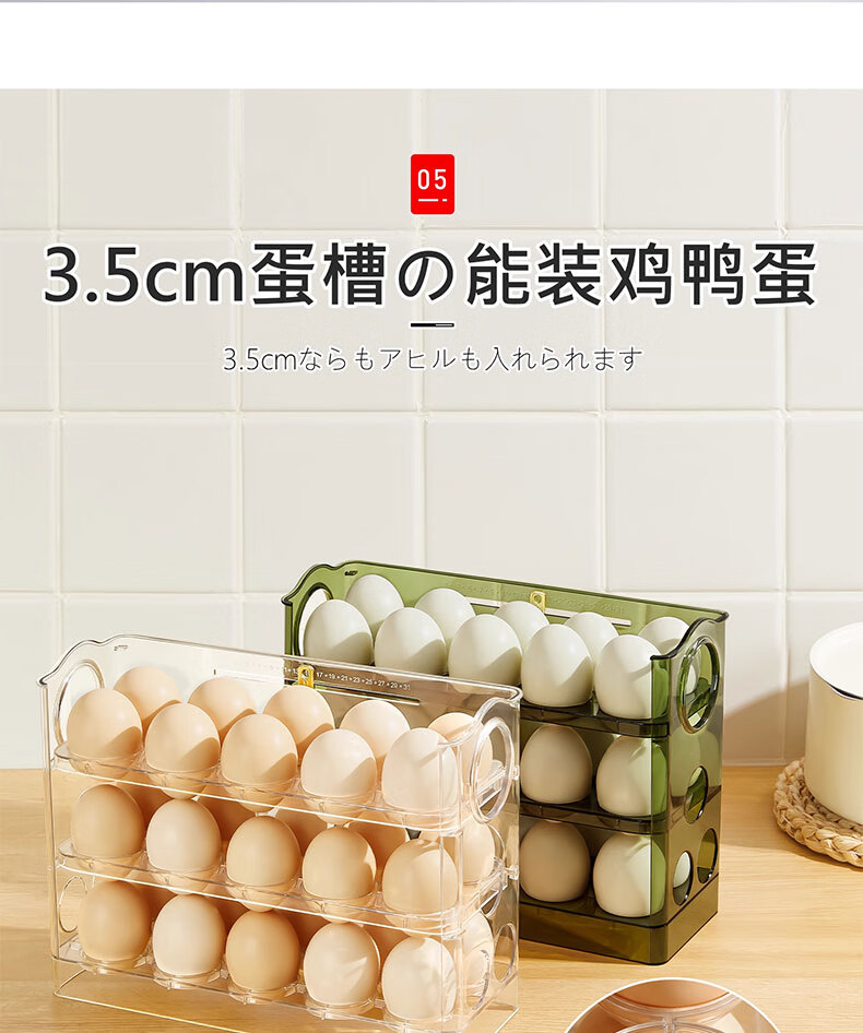 吱凡日本冰箱用鸡蛋收纳盒食品级保鲜盒厨房专用整理收纳自动翻转蛋托 【2个透明】18枚装+30枚装