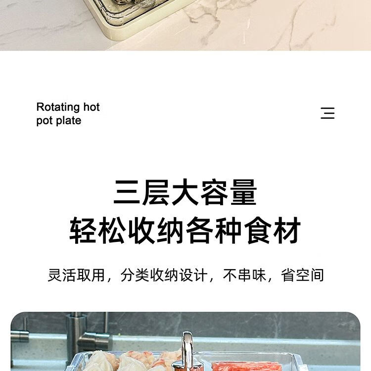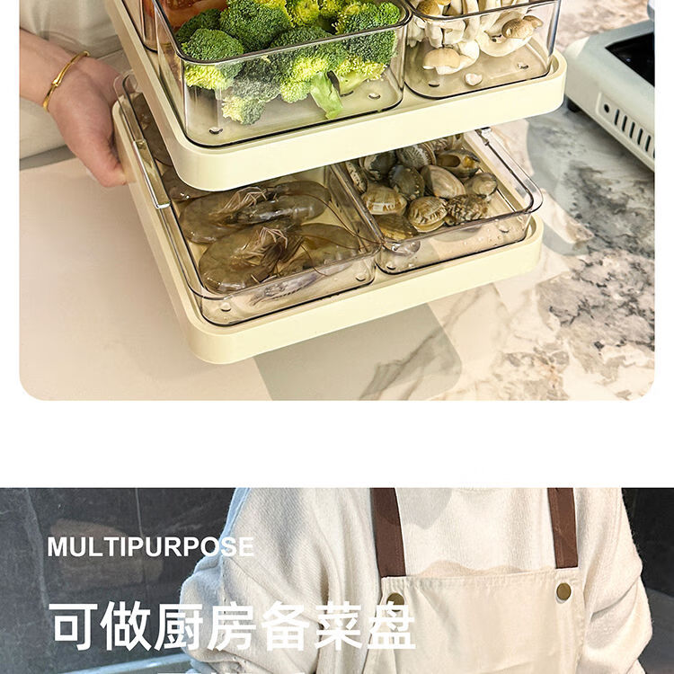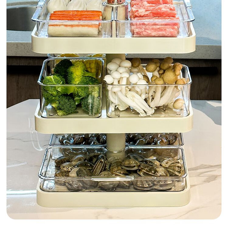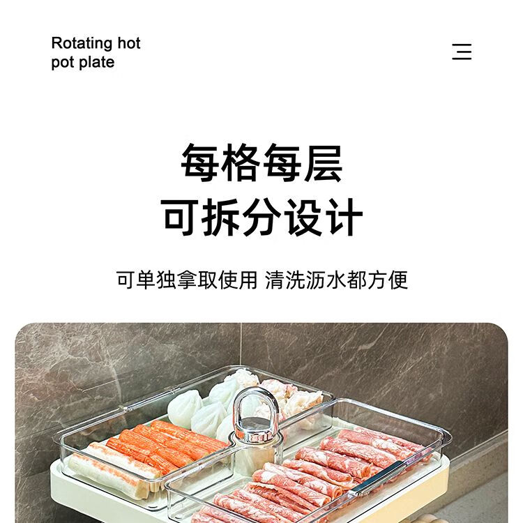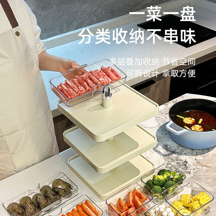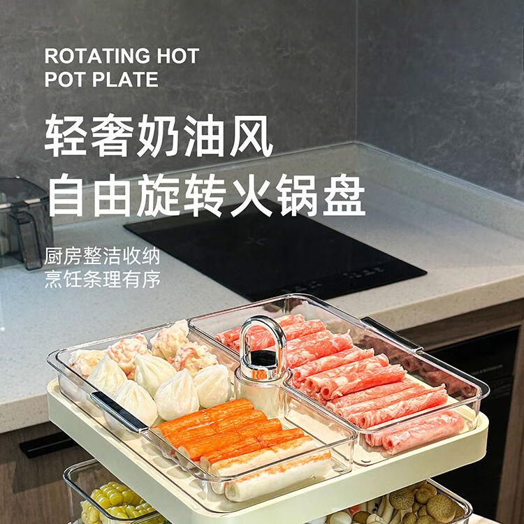 LZJV火锅分格盘置物收纳架家用多层备菜神器厨房多功能配菜盘子可旋转 旋转火锅配菜盘