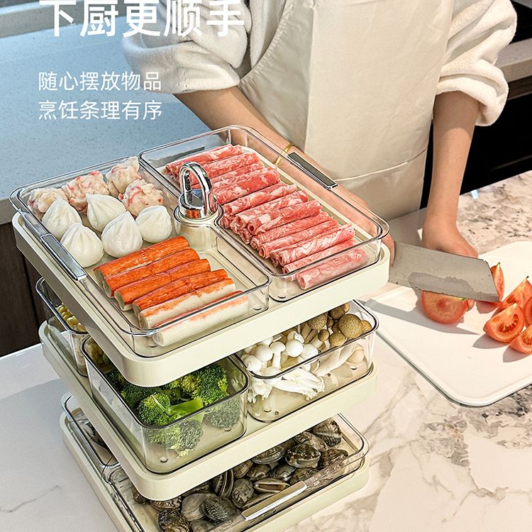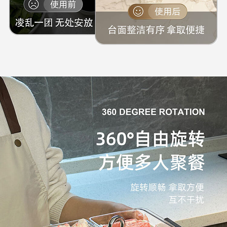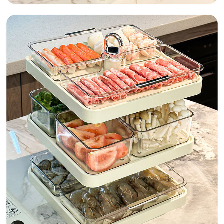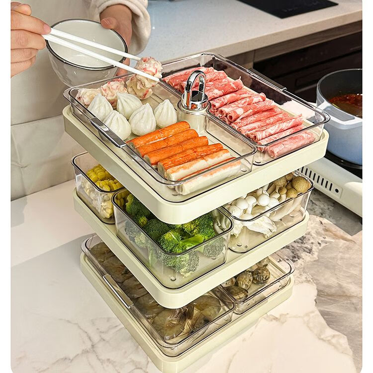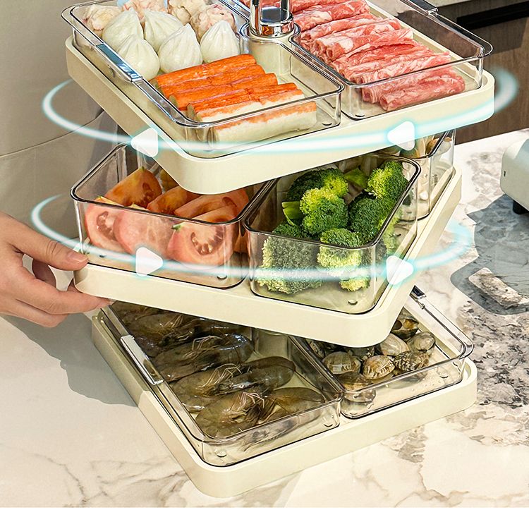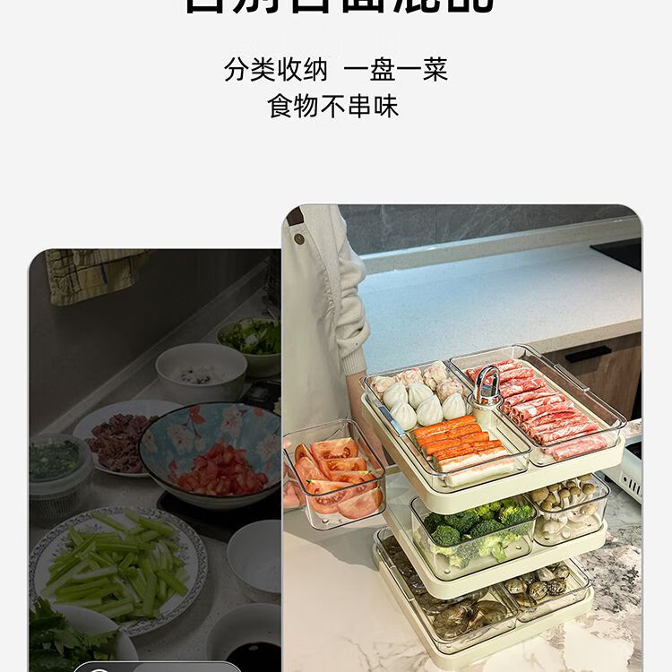 LZJV火锅分格盘置物收纳架家用多层备菜神器厨房多功能配菜盘子可旋转 旋转火锅配菜盘