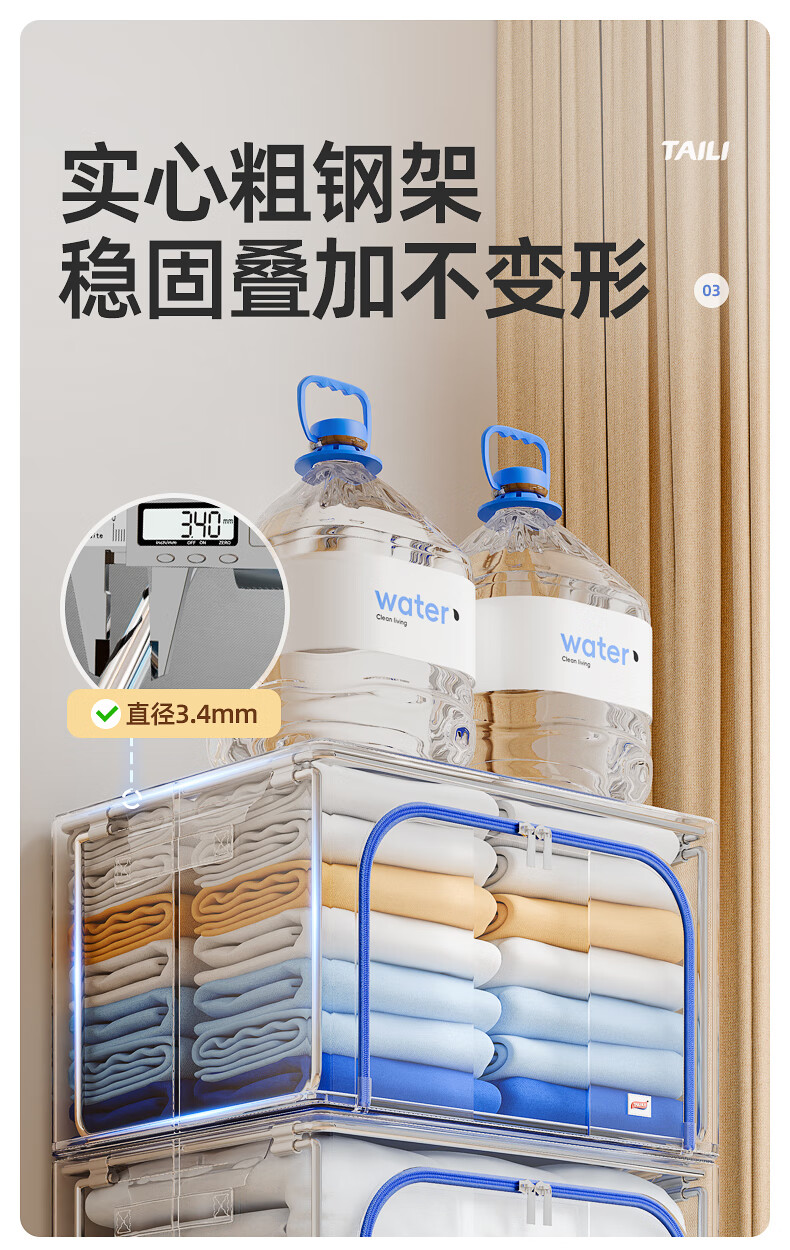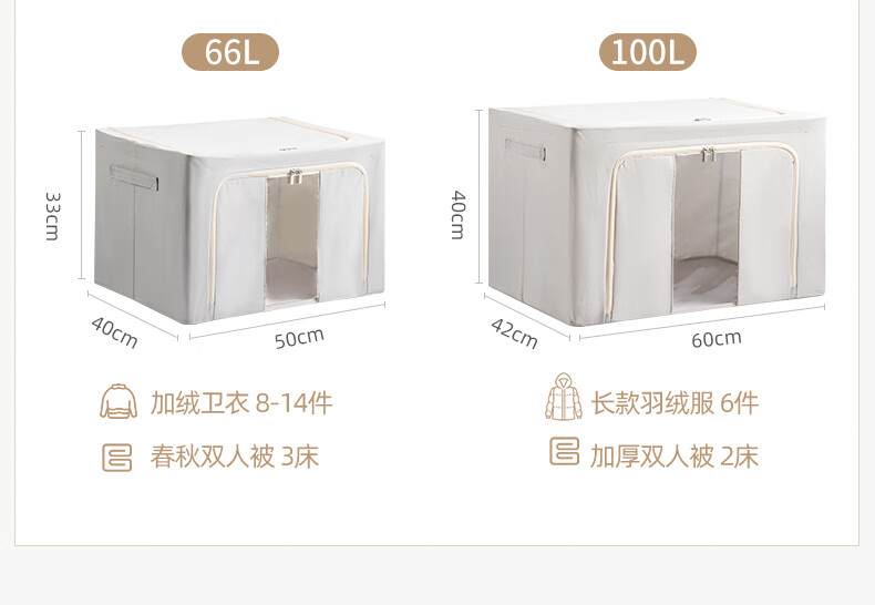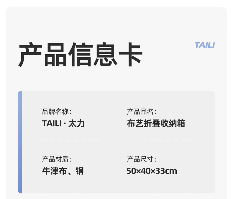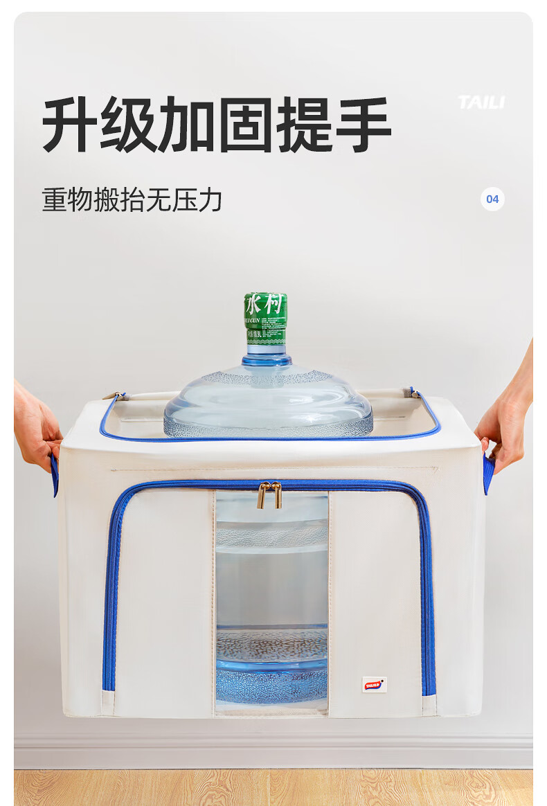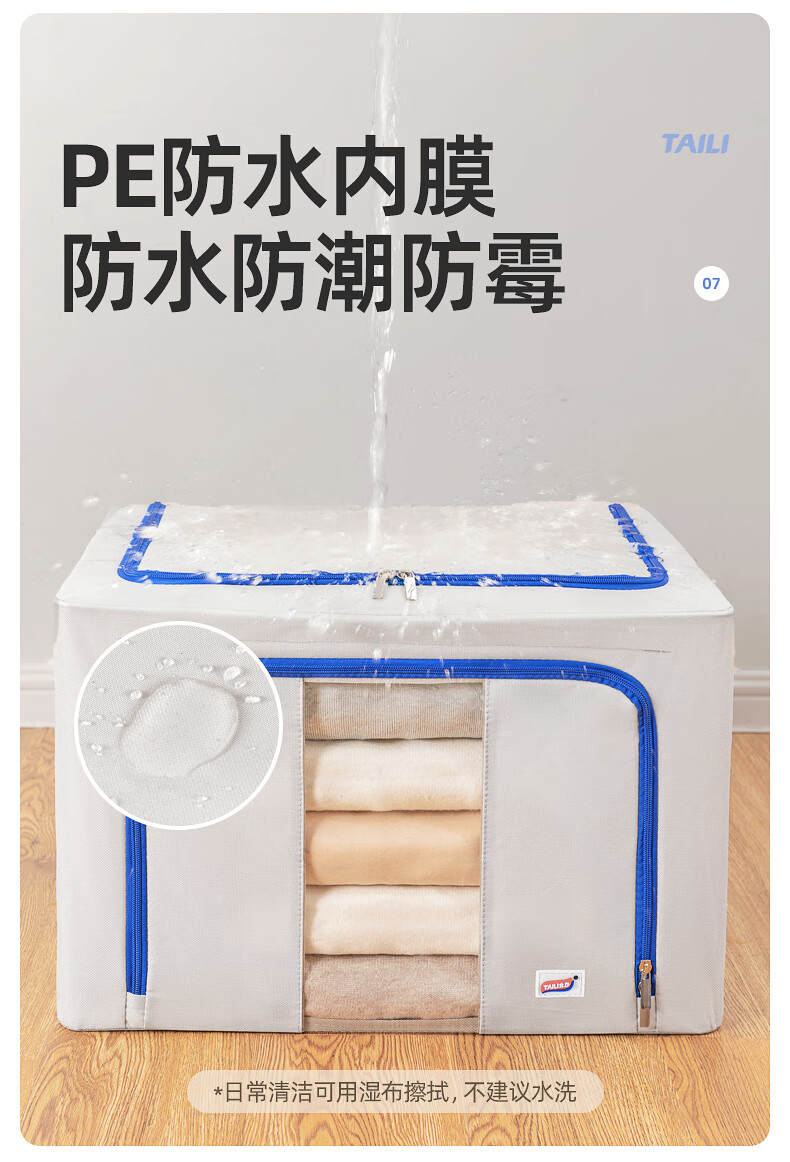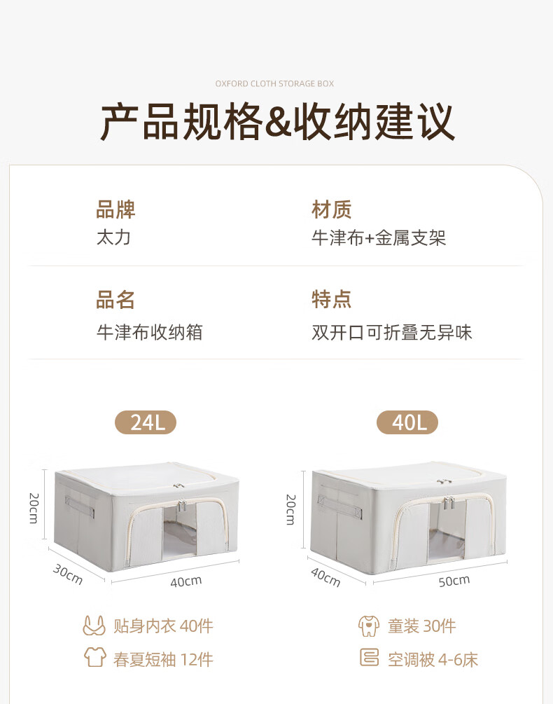 太力收纳箱衣服棉被布艺牛津布玩具储物箱搬家箱折叠百纳箱盒一个装 牛津布收纳箱24L【米灰色】