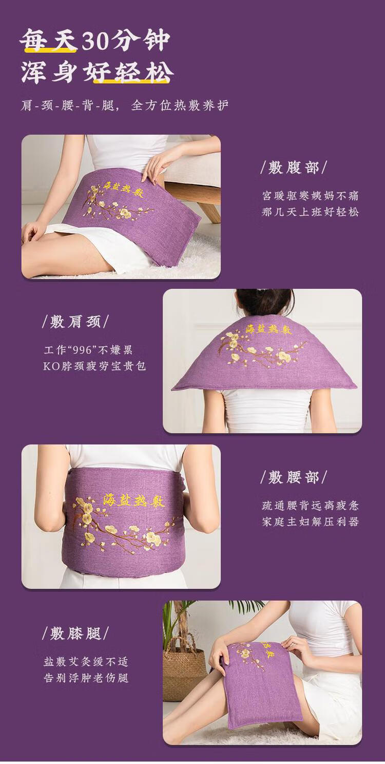 荣事达盐袋热敷包电加热海盐艾灸粗盐理疗全身肩颈电褥子去湿气垫礼盒装 经典款【无腰带】