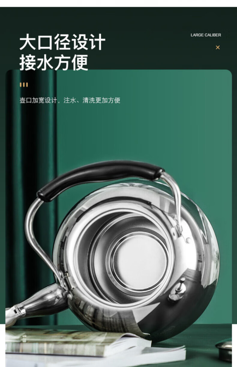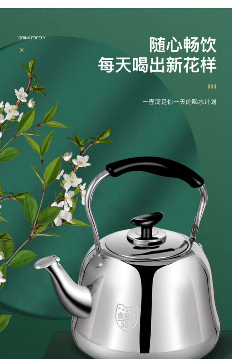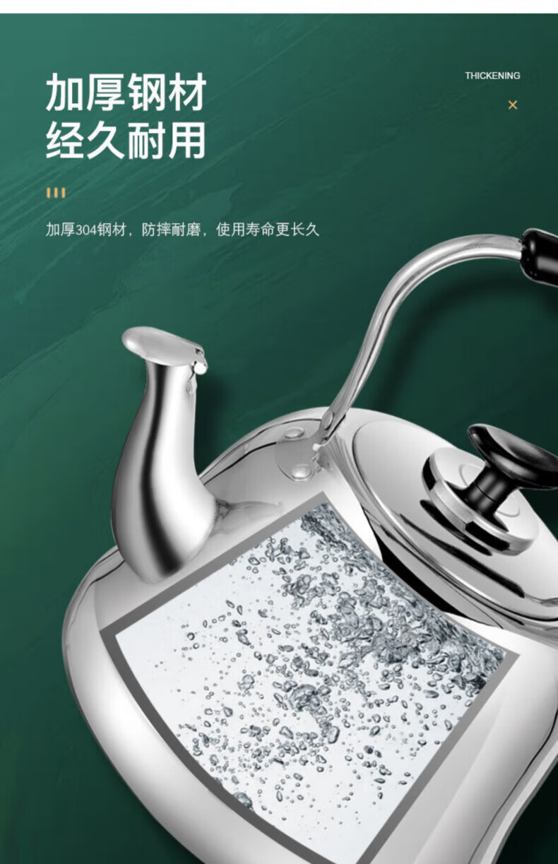 AILUKI日本304不锈钢烧水壶鸣笛开水壶大容量燃气家用电磁炉燃气加厚 304材质【不鸣音】加厚款 2L 4L(含)-6L(含)