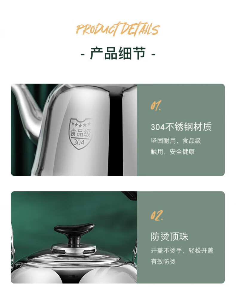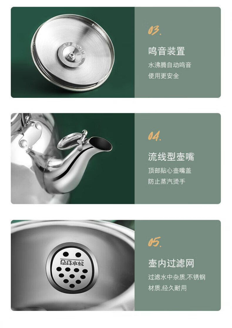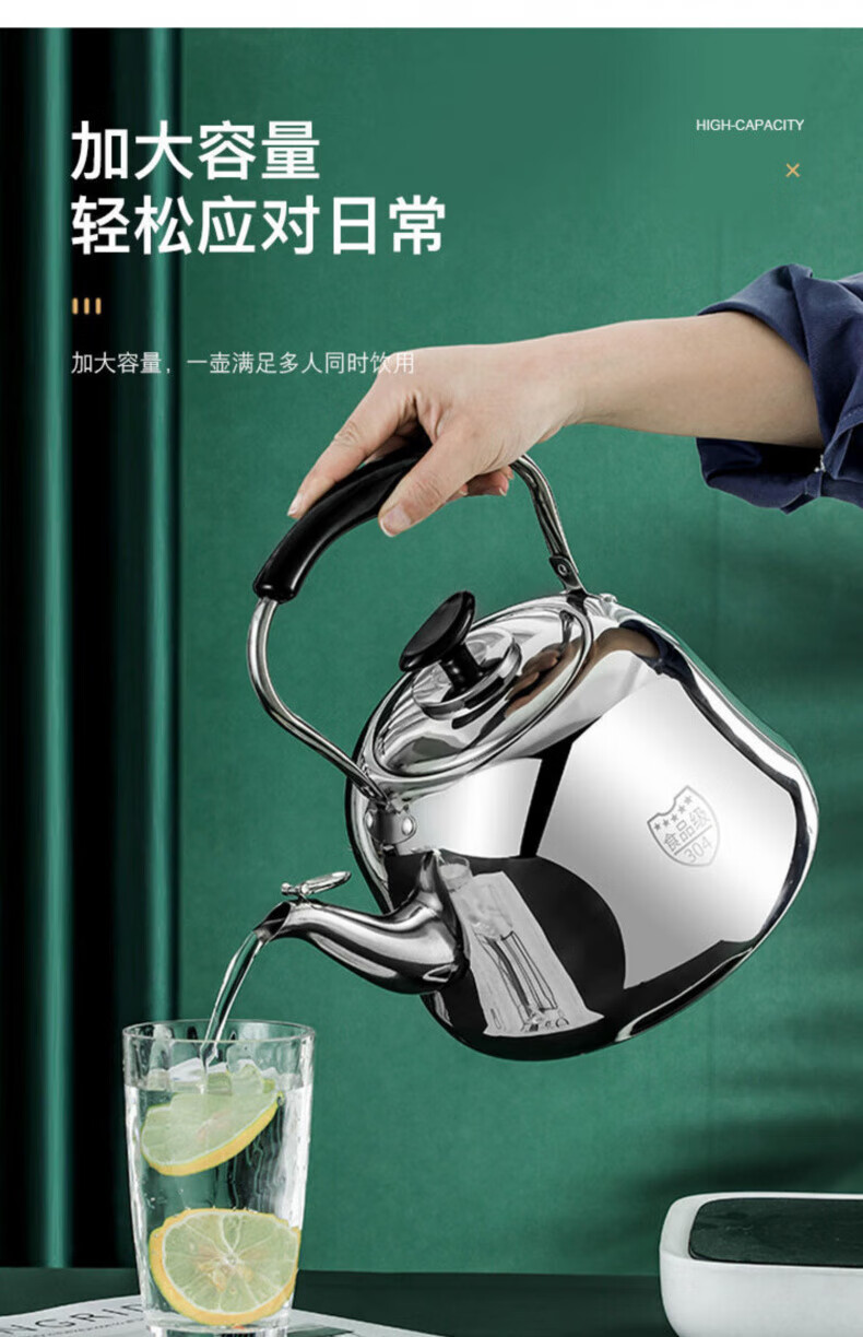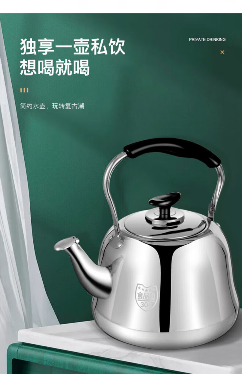 AILUKI日本304不锈钢烧水壶鸣笛开水壶大容量燃气家用电磁炉燃气加厚 304材质【不鸣音】加厚款 2L 4L(含)-6L(含)