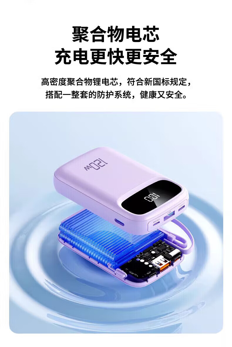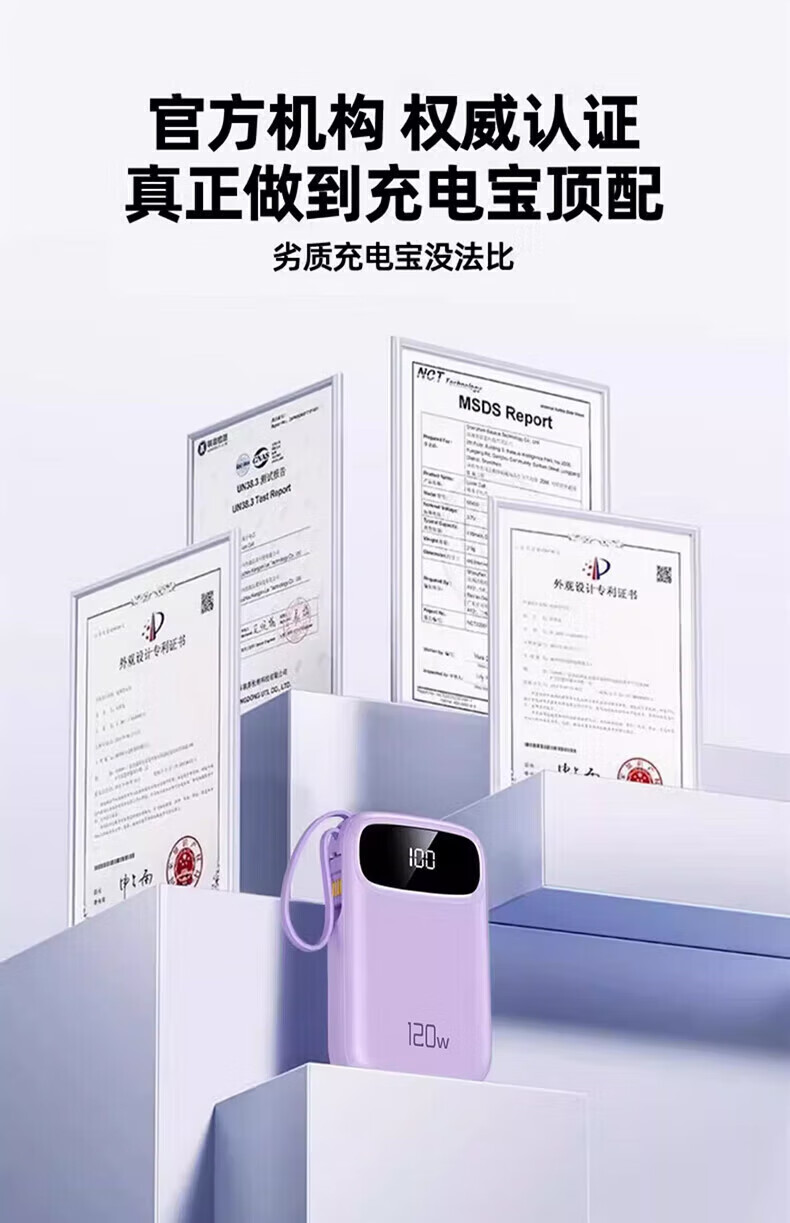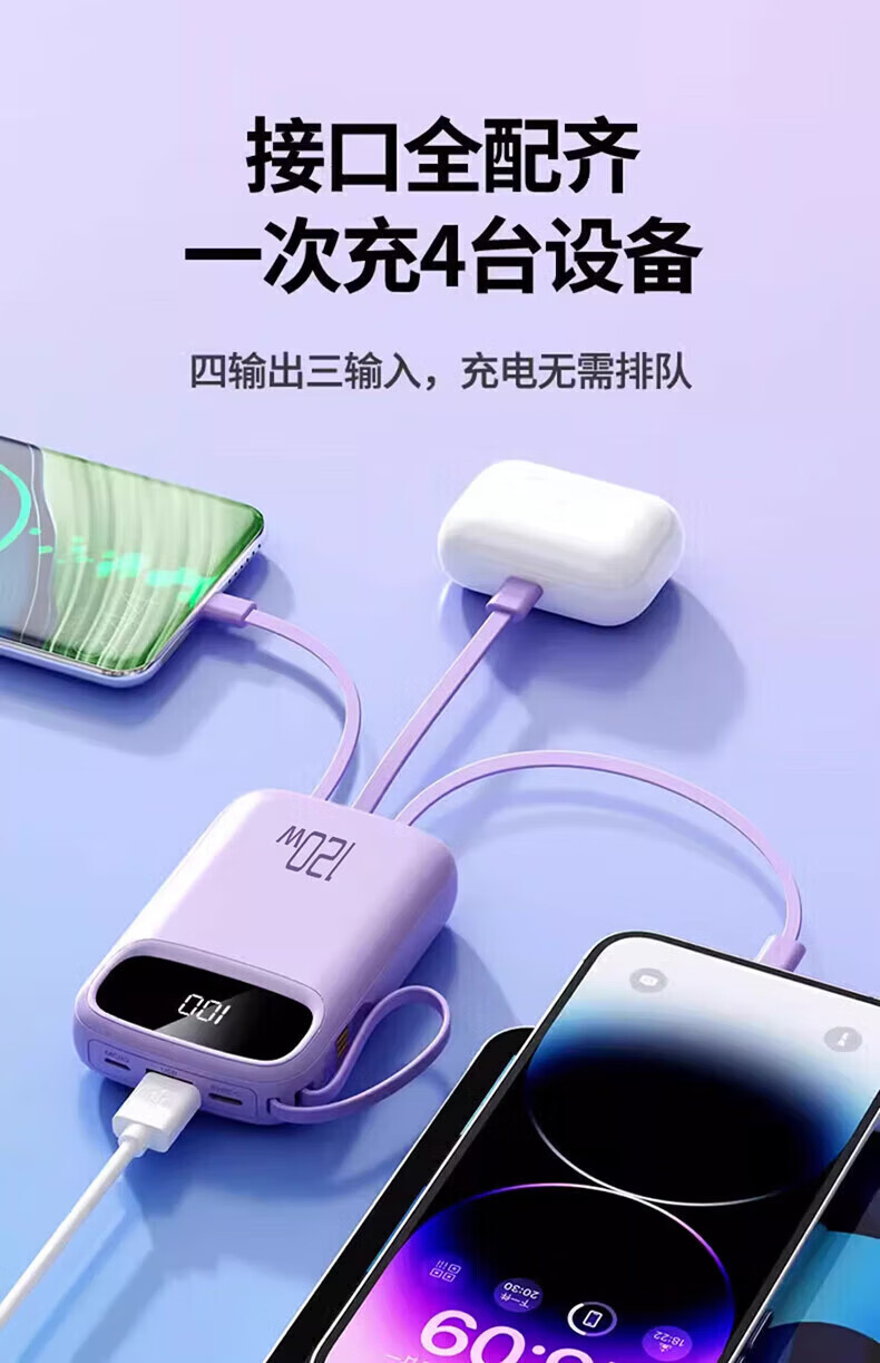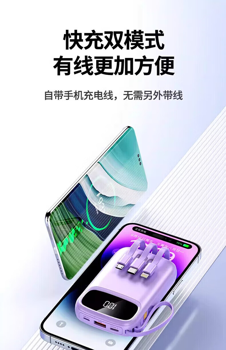 锟霖屹【3c认证】充电宝带线20000毫安超级快充大容量可上飞机适用小米 白色[旗舰版]3C认证丨自带四线丨 1万毫安真实标假一赔三