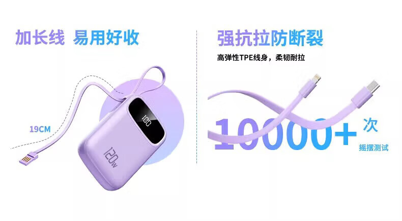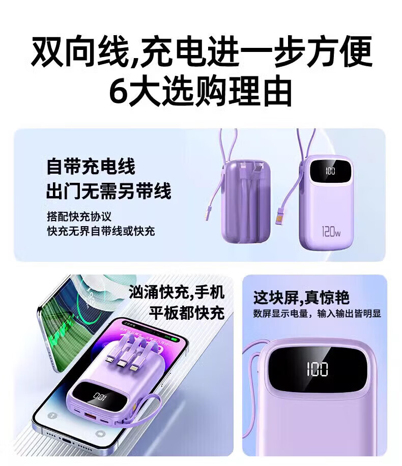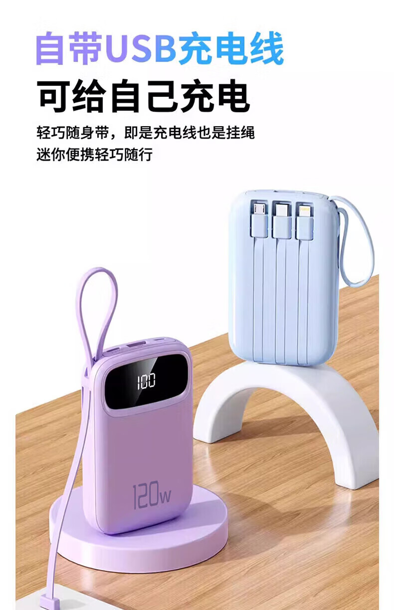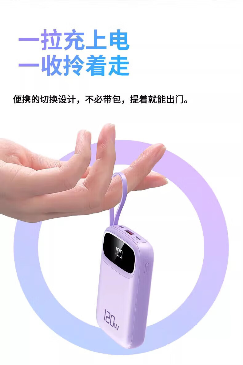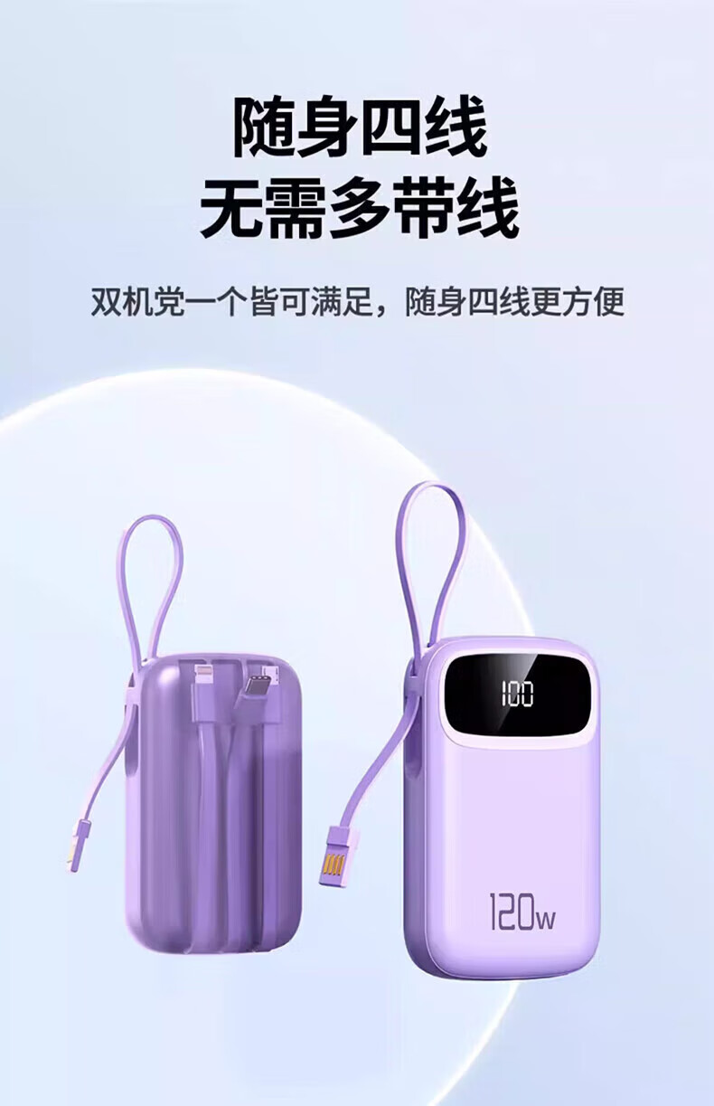 锟霖屹【3c认证】充电宝带线20000毫安超级快充大容量可上飞机适用小米 白色[旗舰版]3C认证丨自带四线丨 1万毫安真实标假一赔三