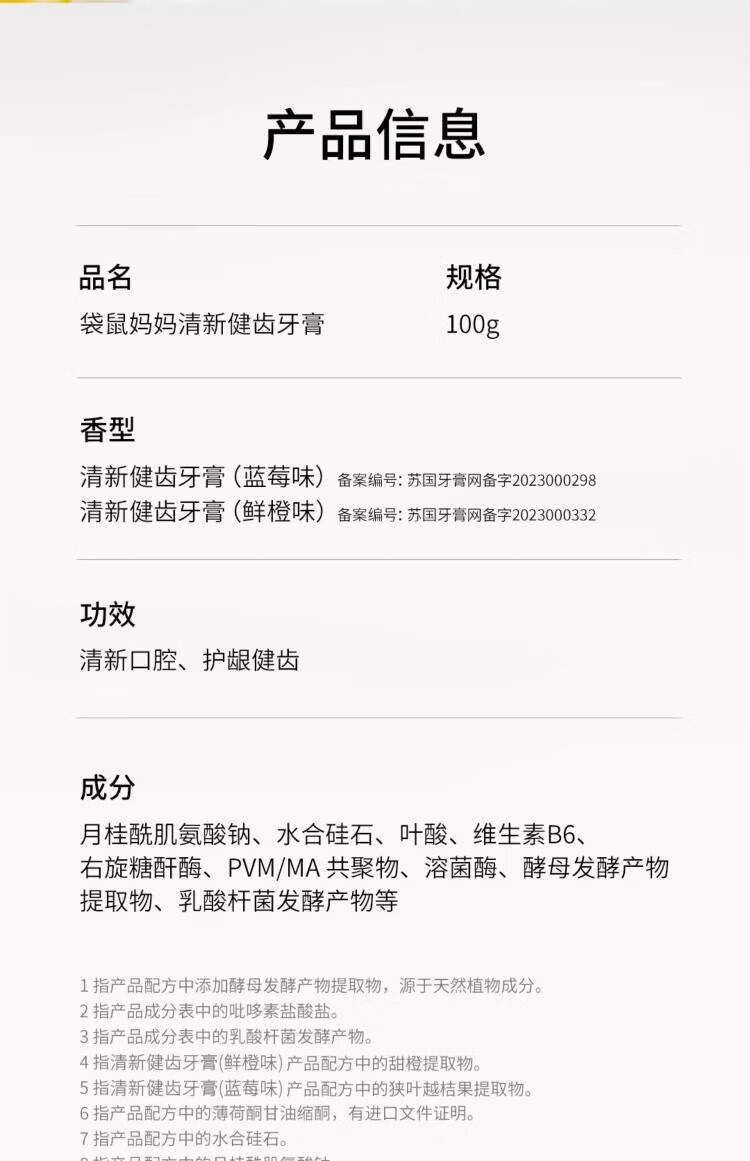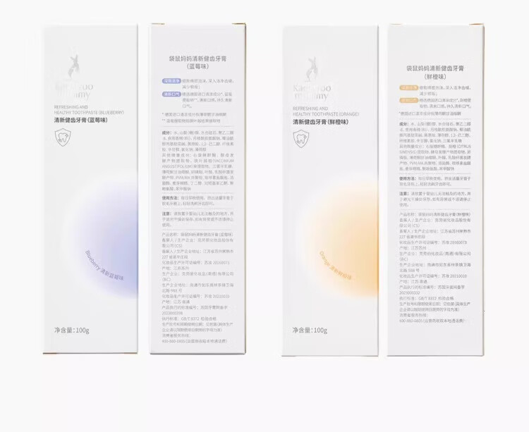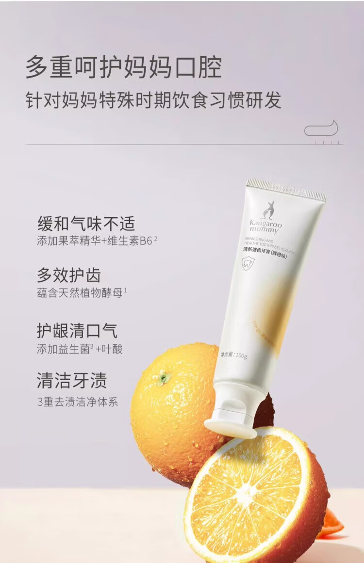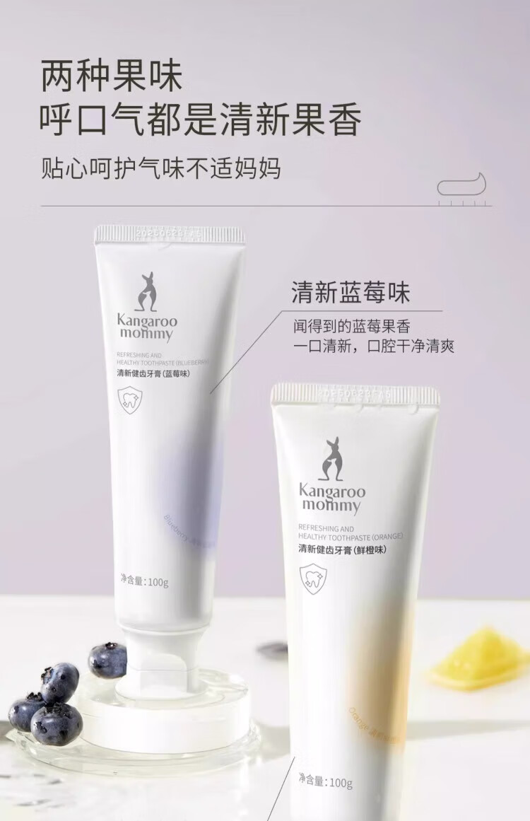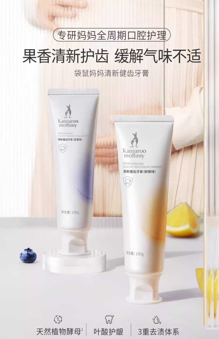 袋鼠妈妈牙膏准孕妇无氟呵护牙龈月子专用清新口气家庭准孕期口腔护理套装 鲜橙+蓝莓牙膏套装