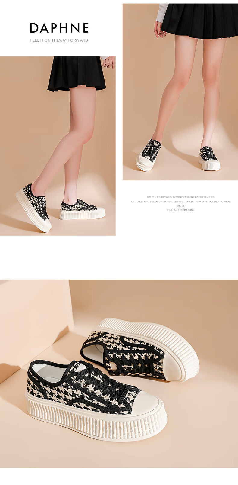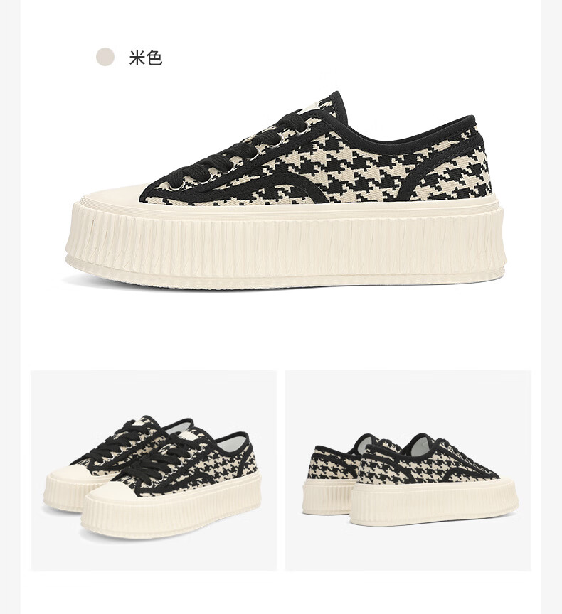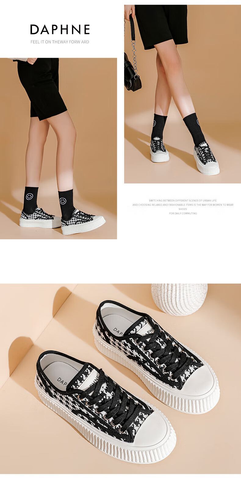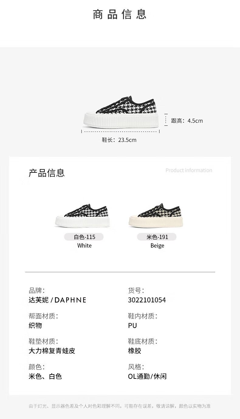 达芙妮(DAPHNE)厚底小白鞋女2022春季新款女鞋小香风松糕底饼干鞋休闲板鞋JL 米色【温柔米白】 37
