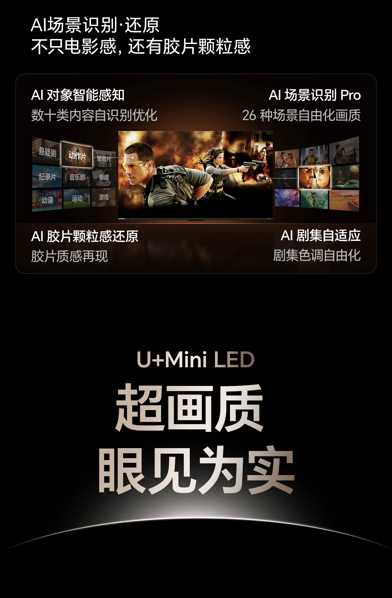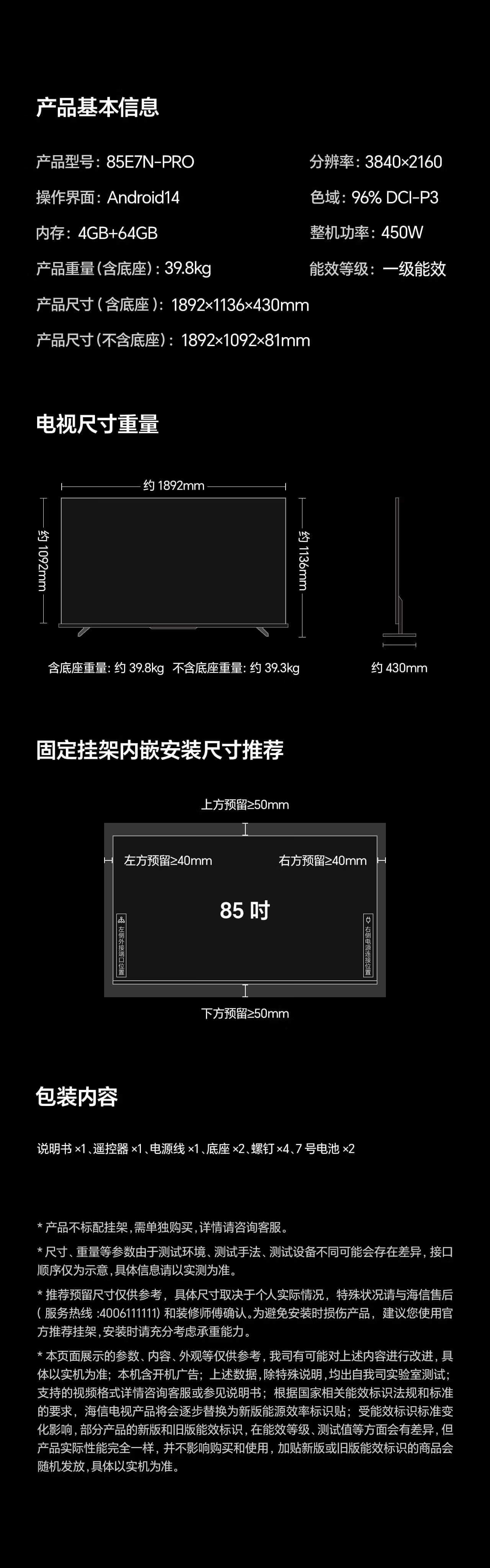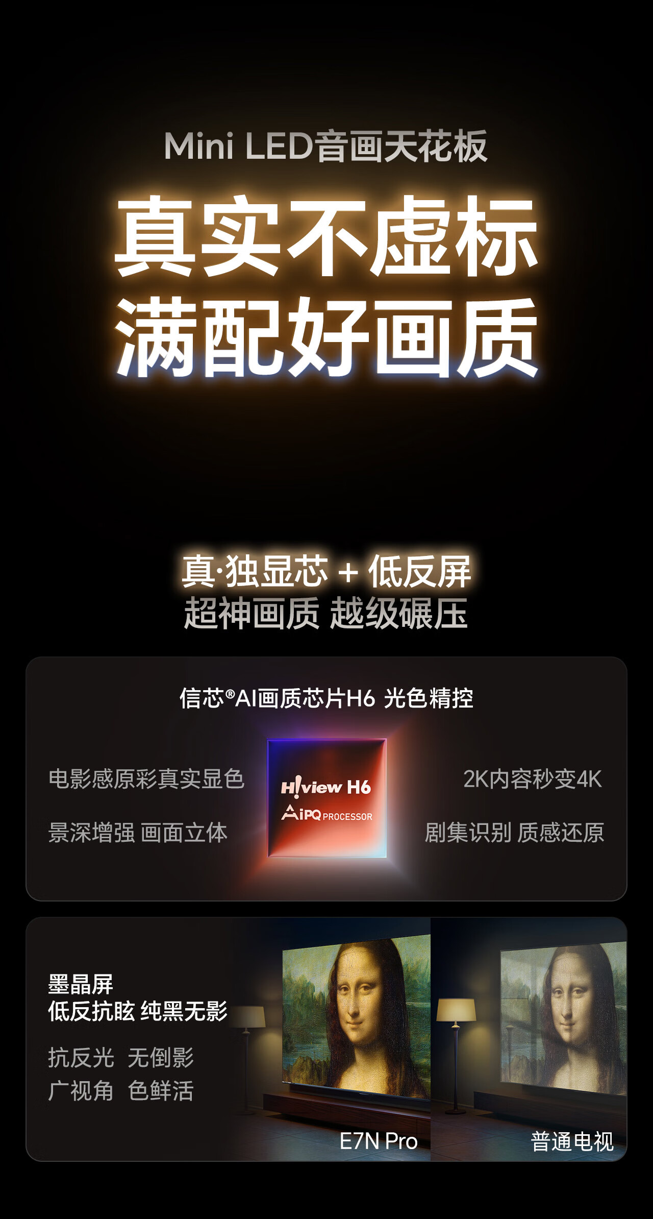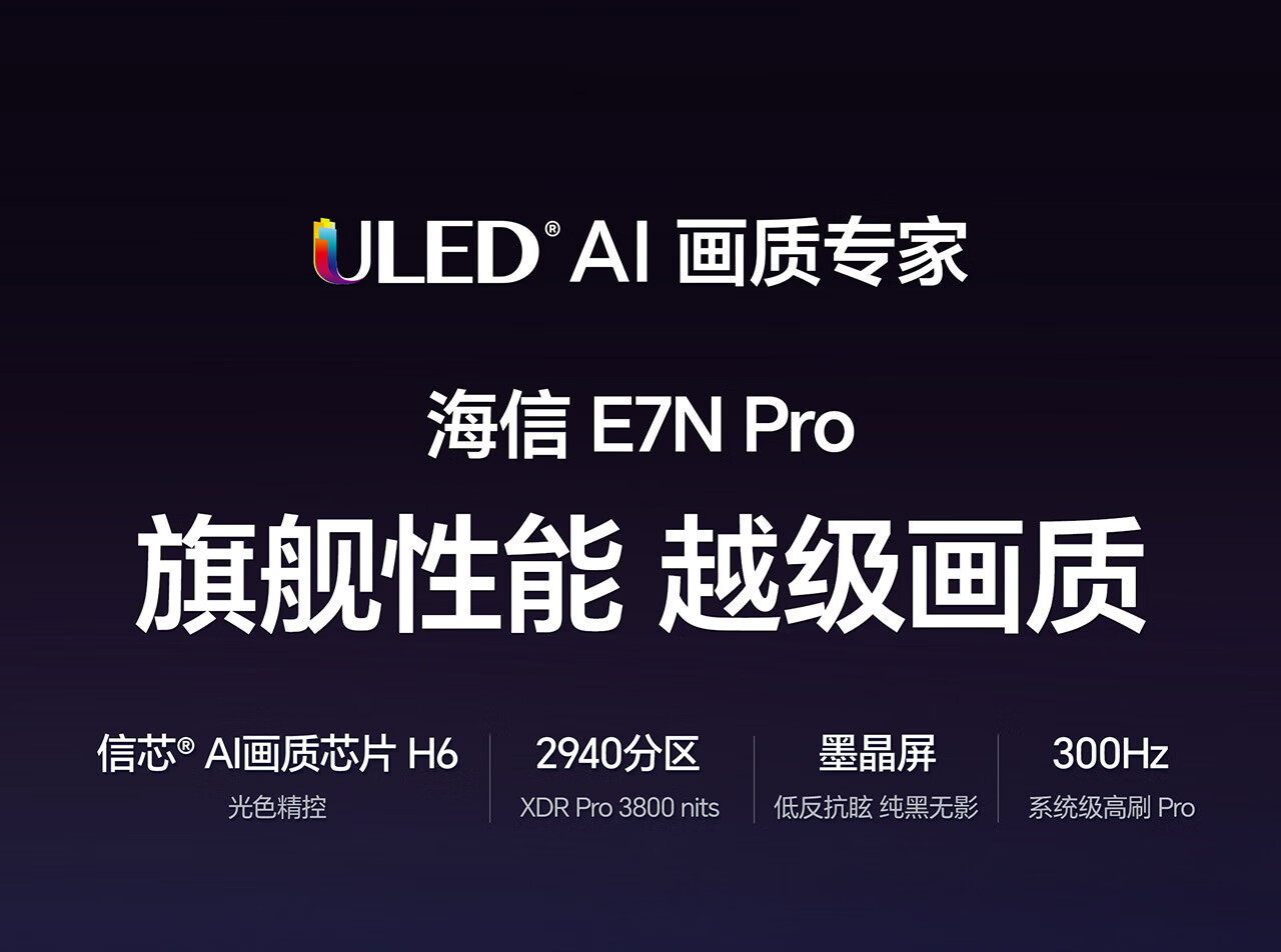 海信电视E7N Pro 85英寸【送装一体-固定挂架】U+Mini LED 抗反光放眩光墨晶屏 85E7N-PRO 国家补贴