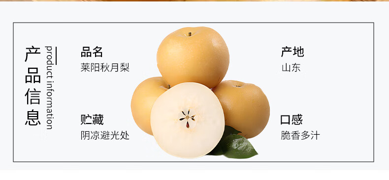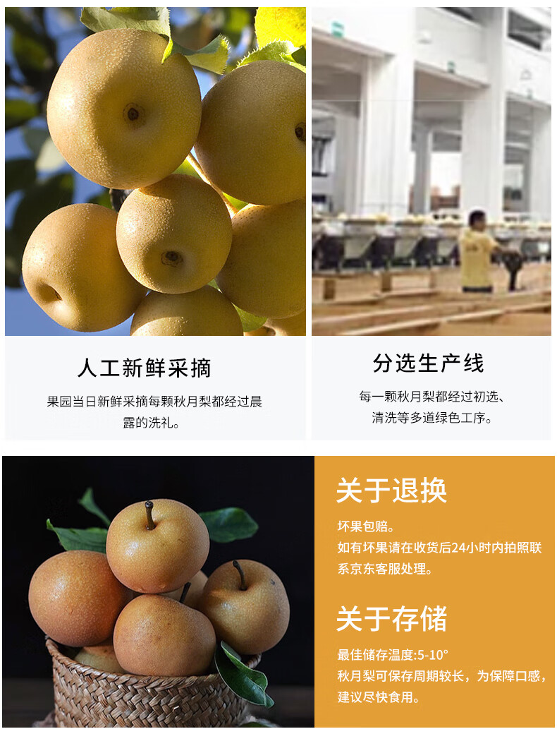 京鲜生山东烟台莱阳秋月梨净重8斤 单果300g+ 生鲜水果 源头直发包邮