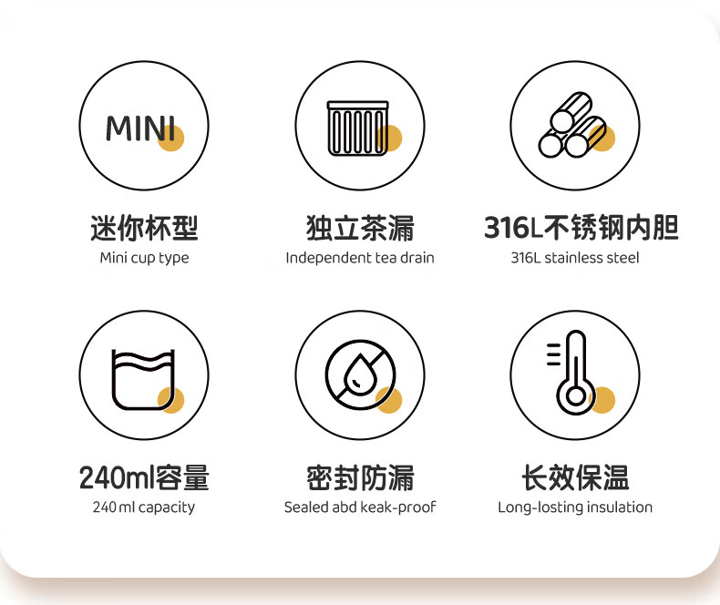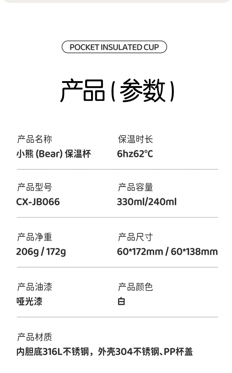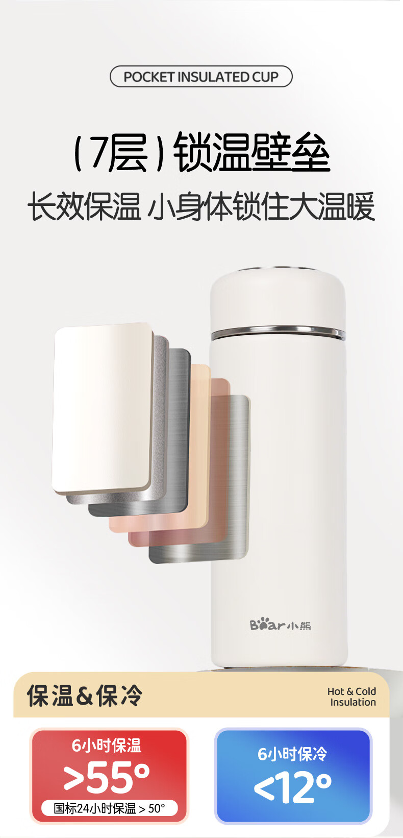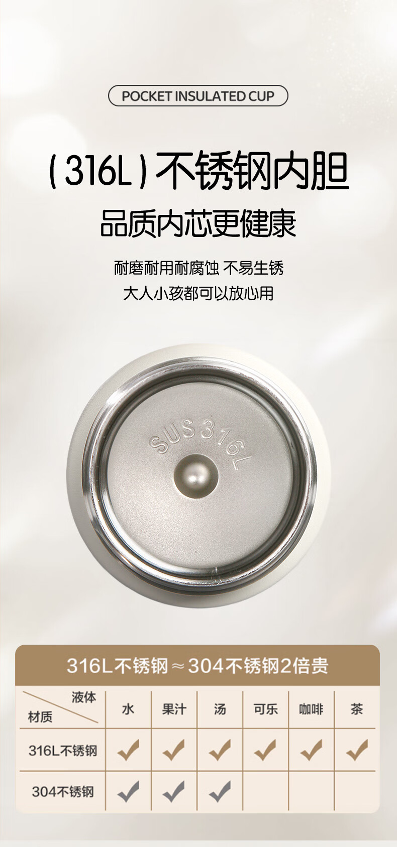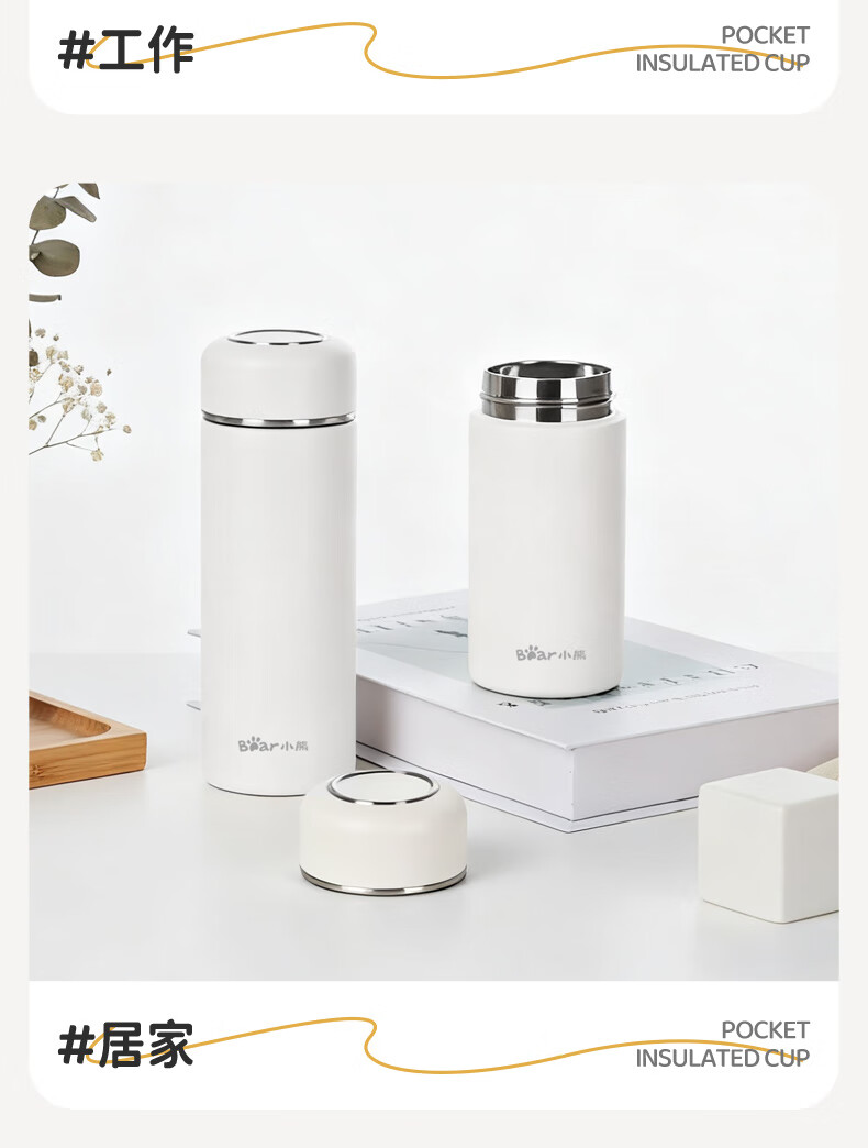 小熊(Bear)保温杯 口袋杯 316L不锈钢 便携水杯 学生杯子儿童240ml中秋礼物