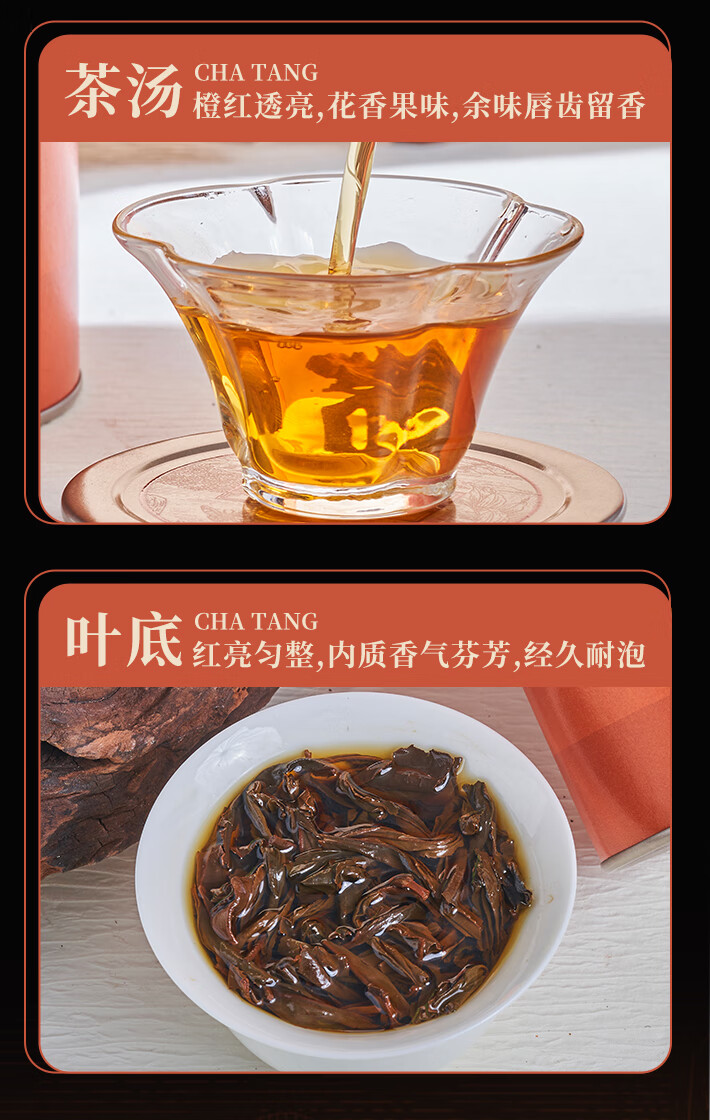 立香园茶叶正山花香小种红茶 新茶浓香型罐装 福建特产口粮茶礼盒装 125克×2罐 配礼袋