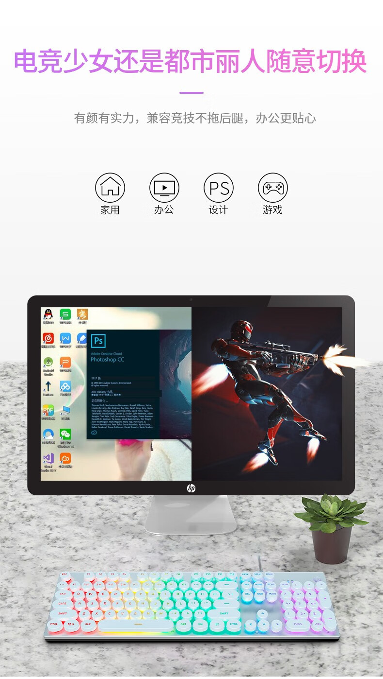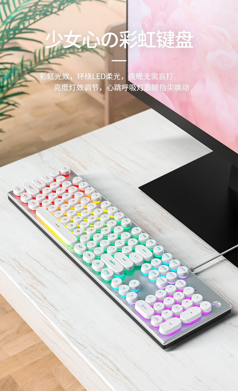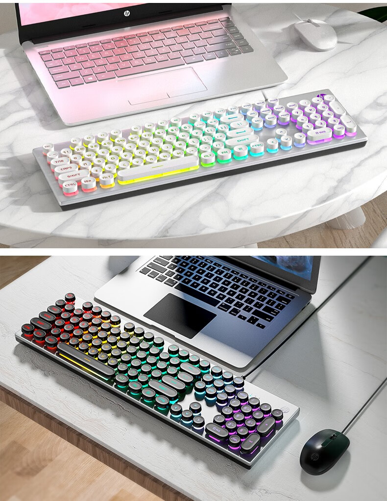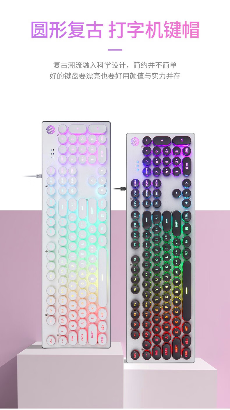 惠普(HP)K500Y真机械手感键盘 朋克蒸汽复古有线游戏专用吃鸡笔记本电脑电竞lol办公键盘 白色彩光圆帽