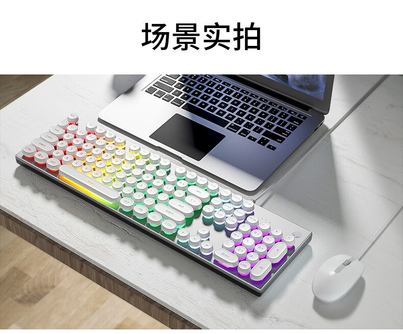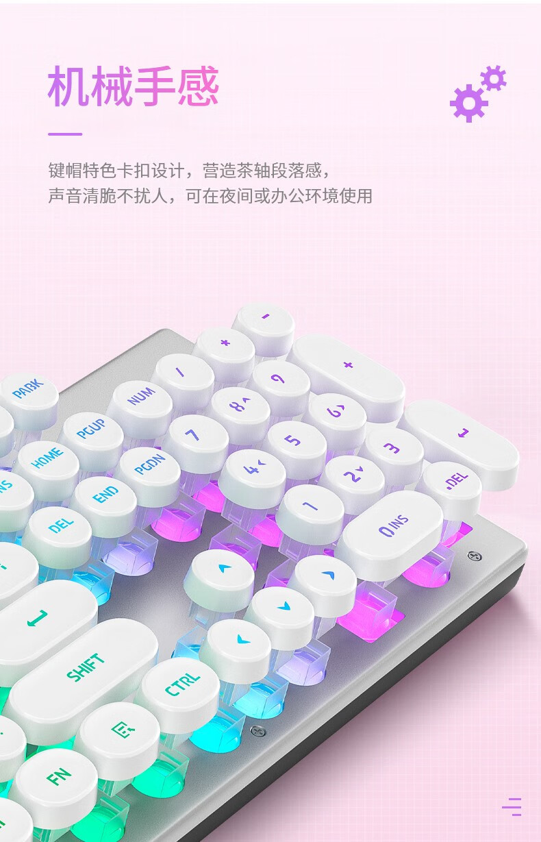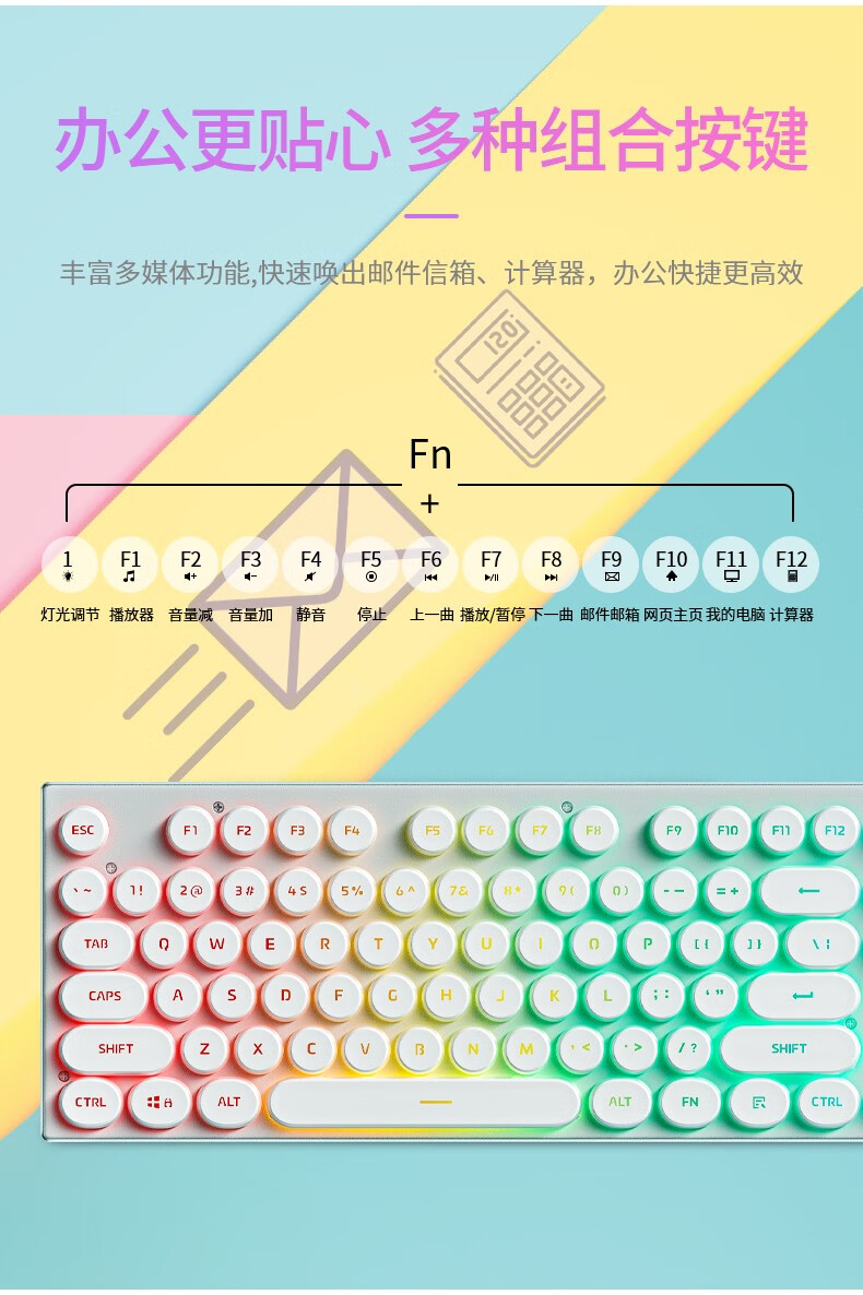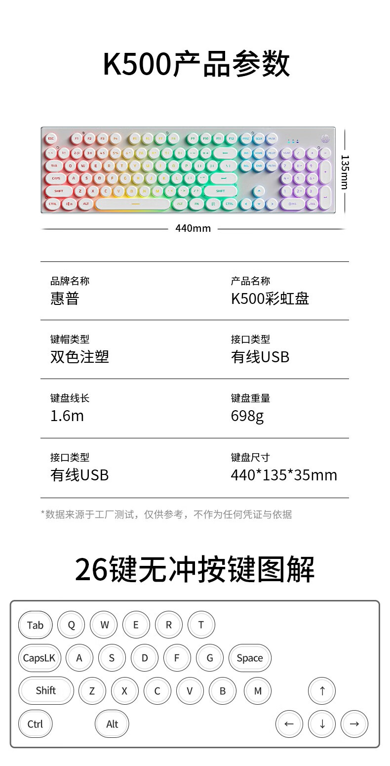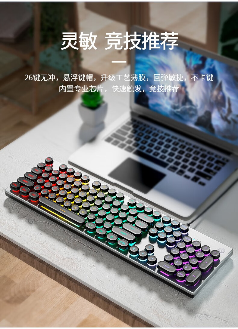 惠普(HP)K500Y真机械手感键盘 朋克蒸汽复古有线游戏专用吃鸡笔记本电脑电竞lol办公键盘 白色彩光圆帽