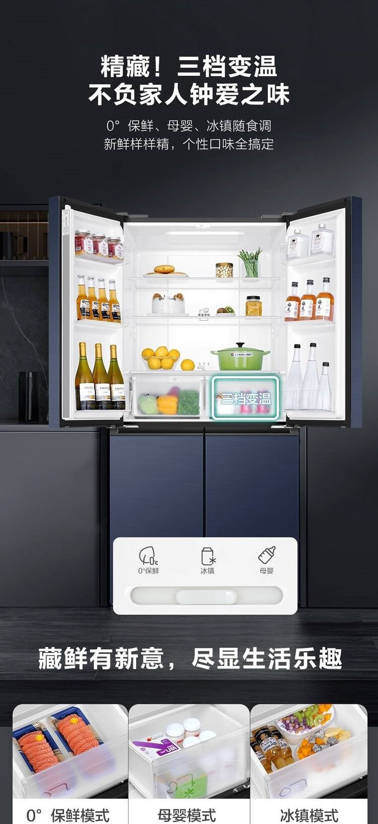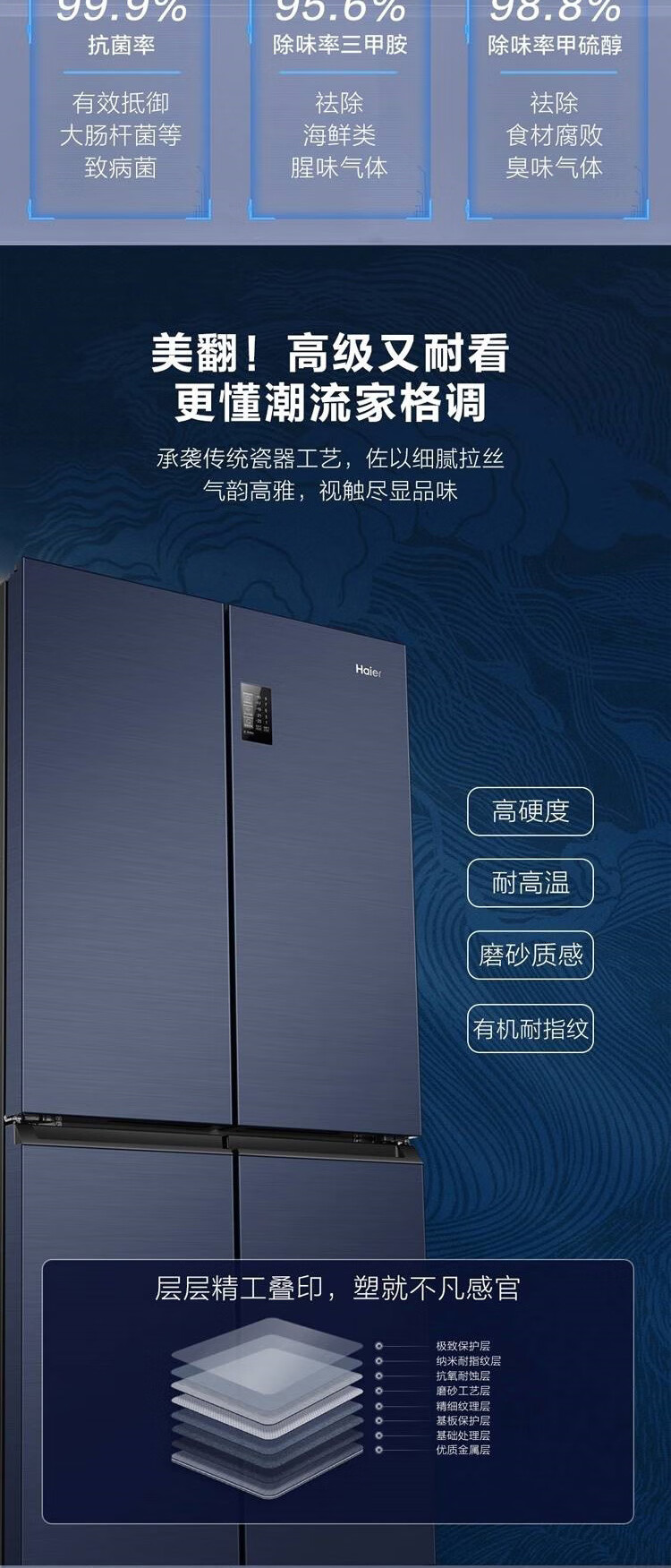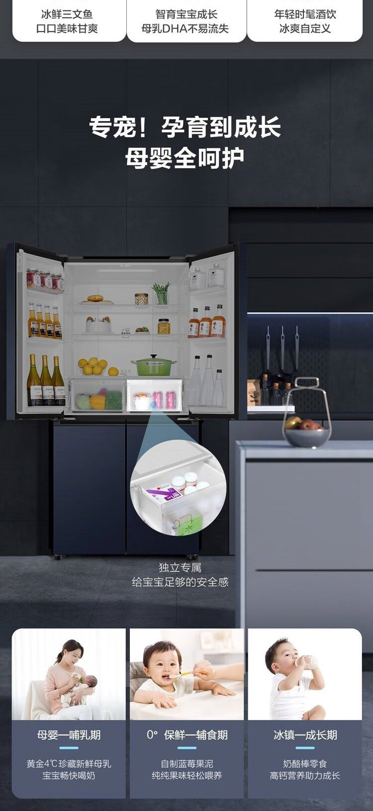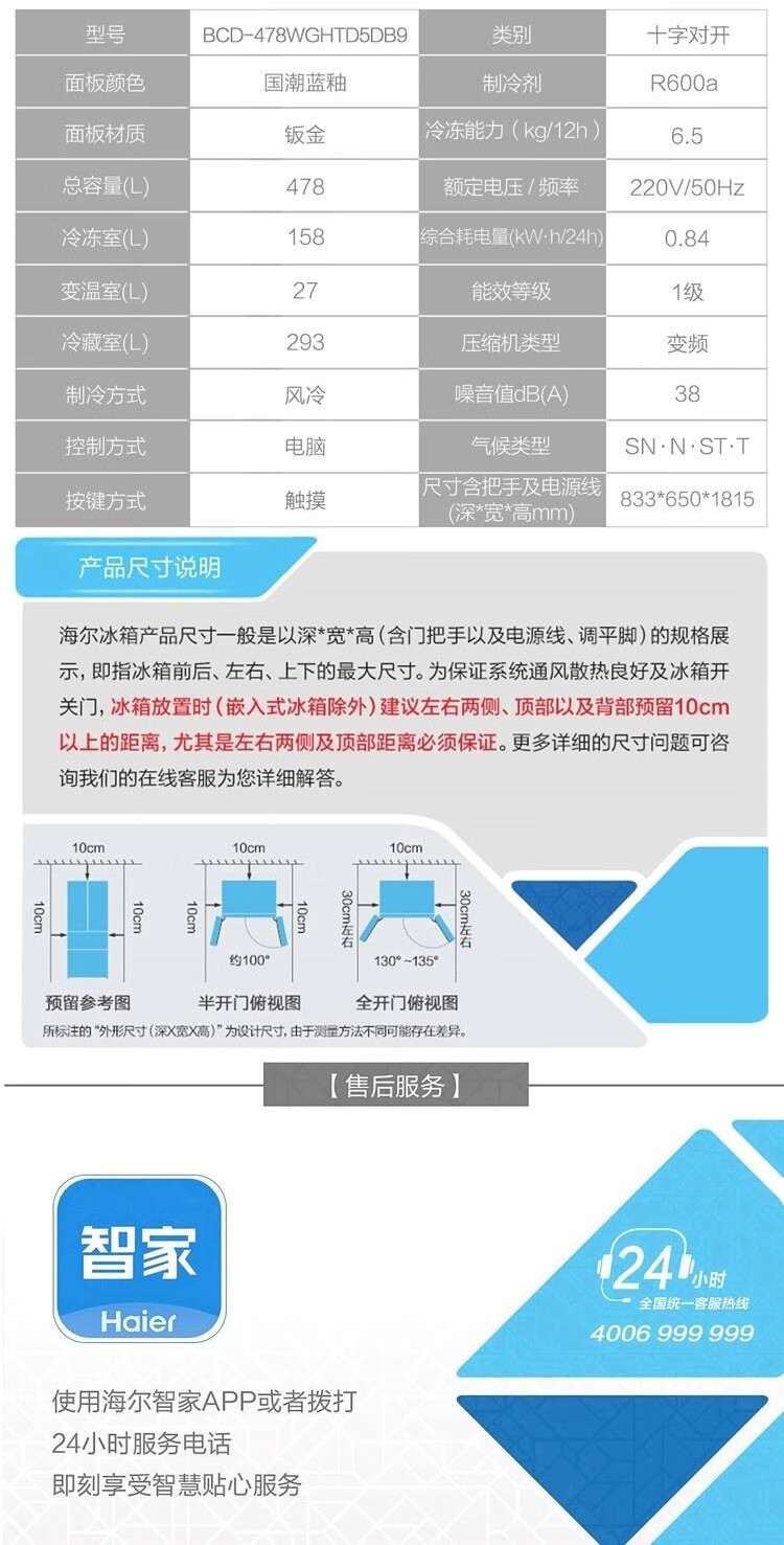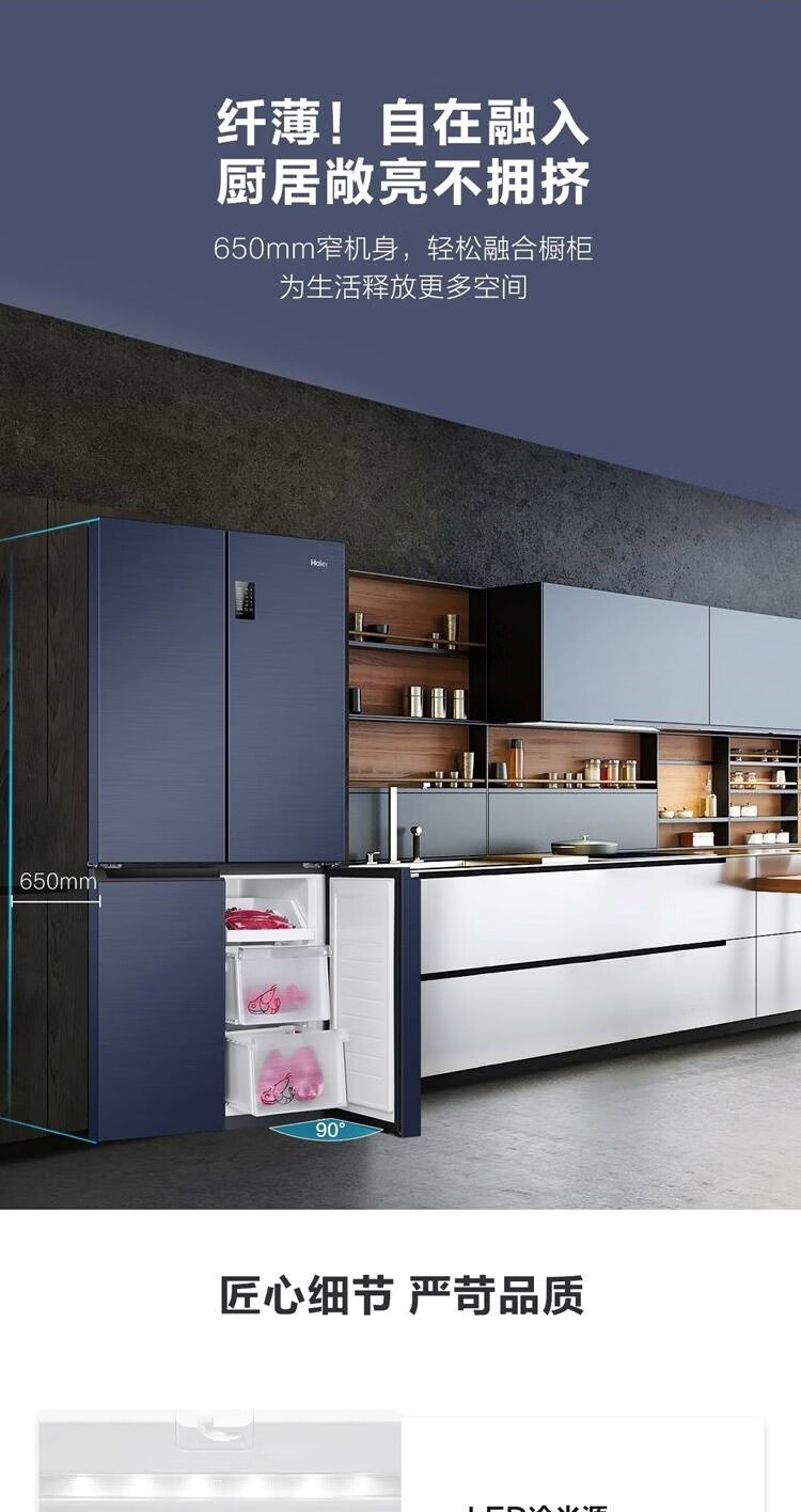 海尔冰箱478升十字对开门四门一级能效双变频双循环风冷无霜大容量家用可嵌入黑金净化节能电冰箱 【478升】一级能效双变频+黑金净化+三挡变温空间